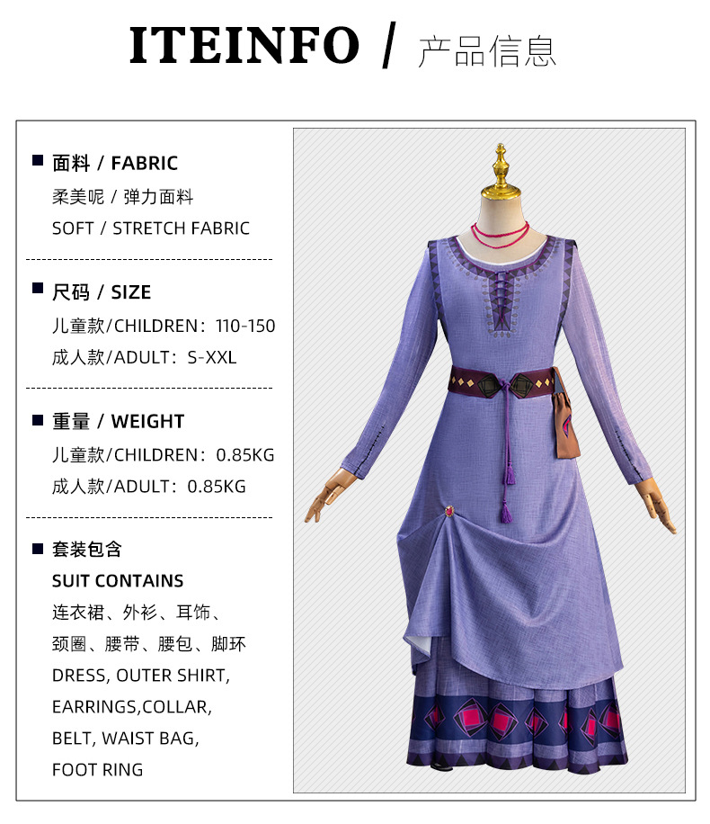 스타 위시 아샤 아샤 cos 공주 원피스 무대 영화 같은 스타일 성인 어린이 원피스 코스프레 의상
