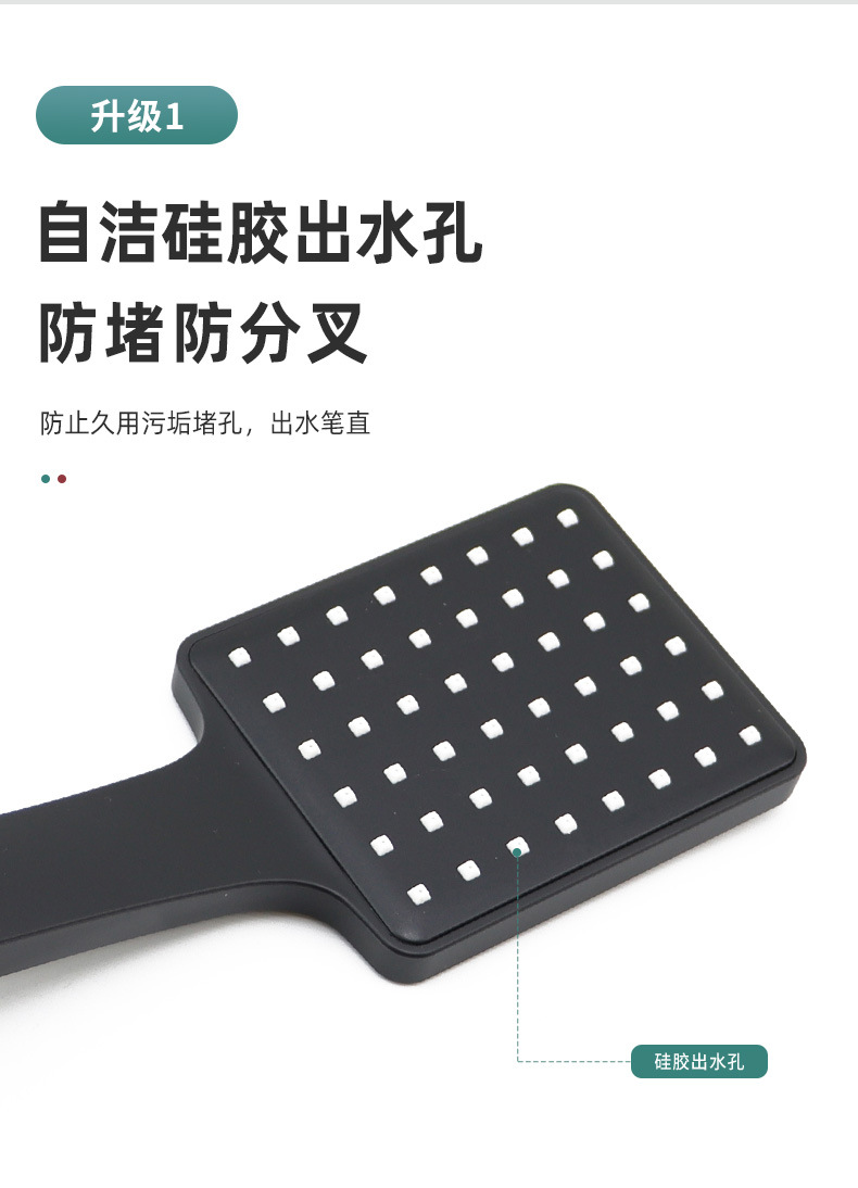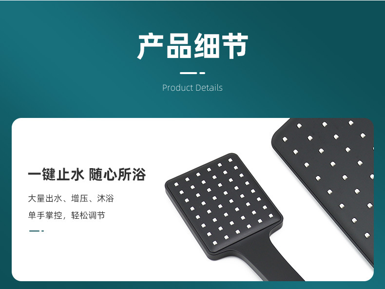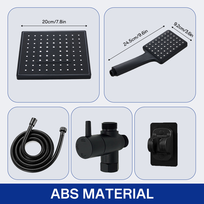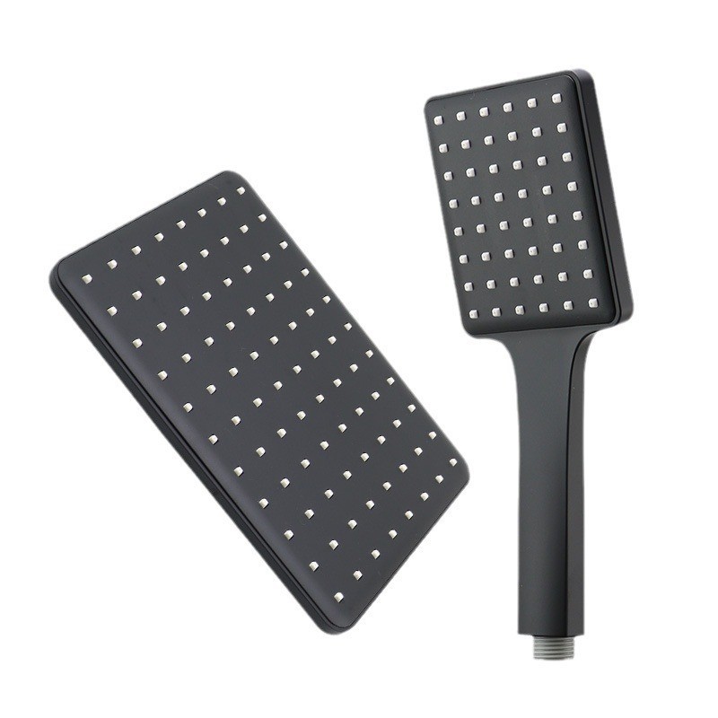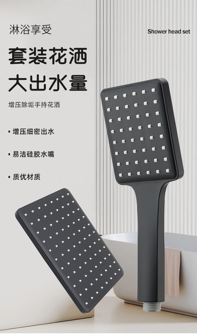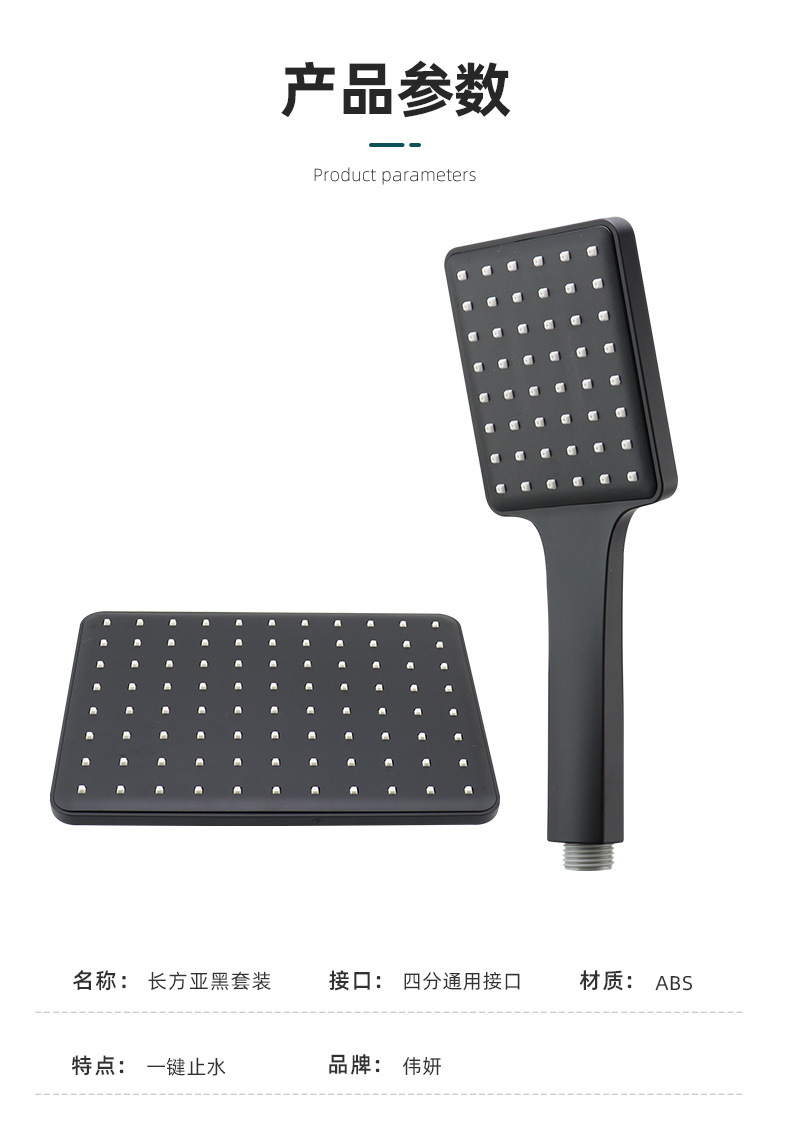검정색 직사각형 샤워 헤드 욕실 가정용 가압 샤워기 화장실 샤워기 단일 헤드 샤워기 호스 세트