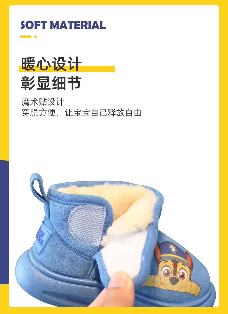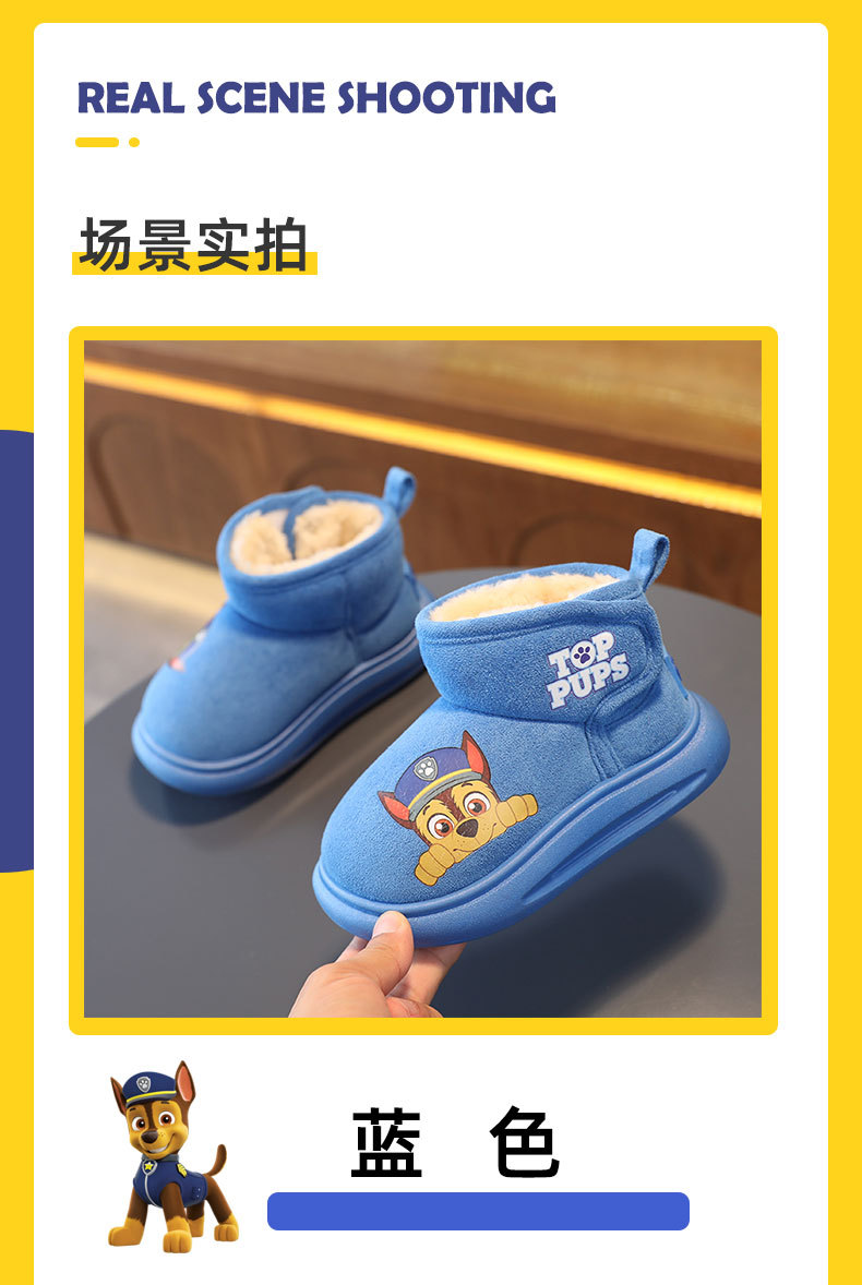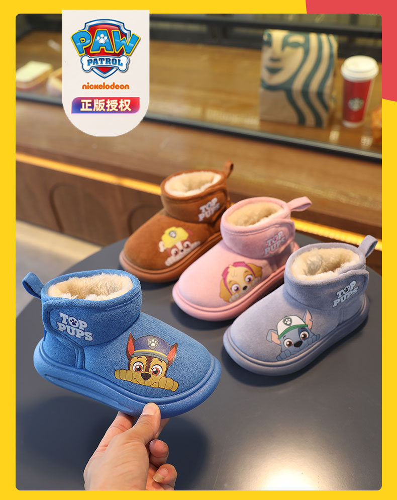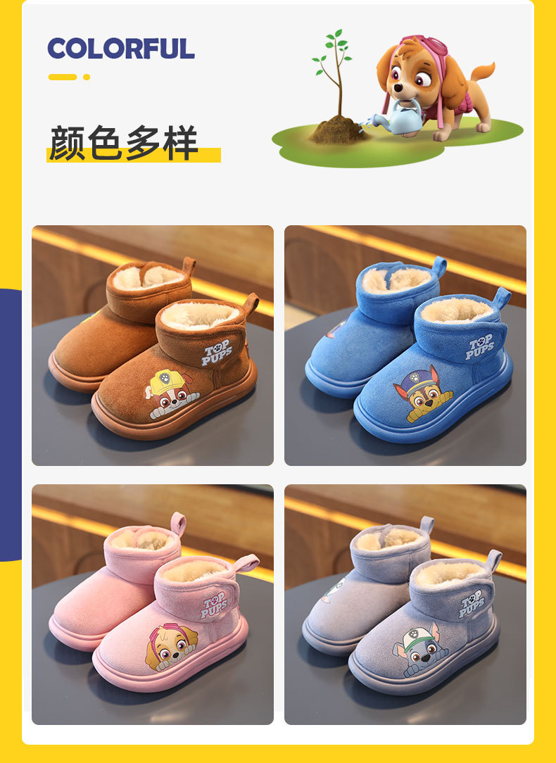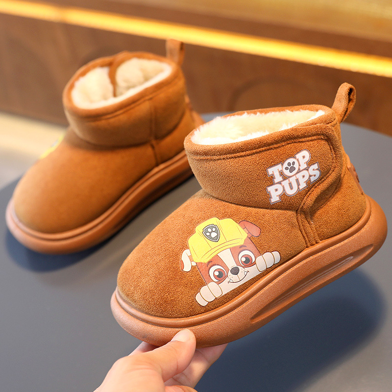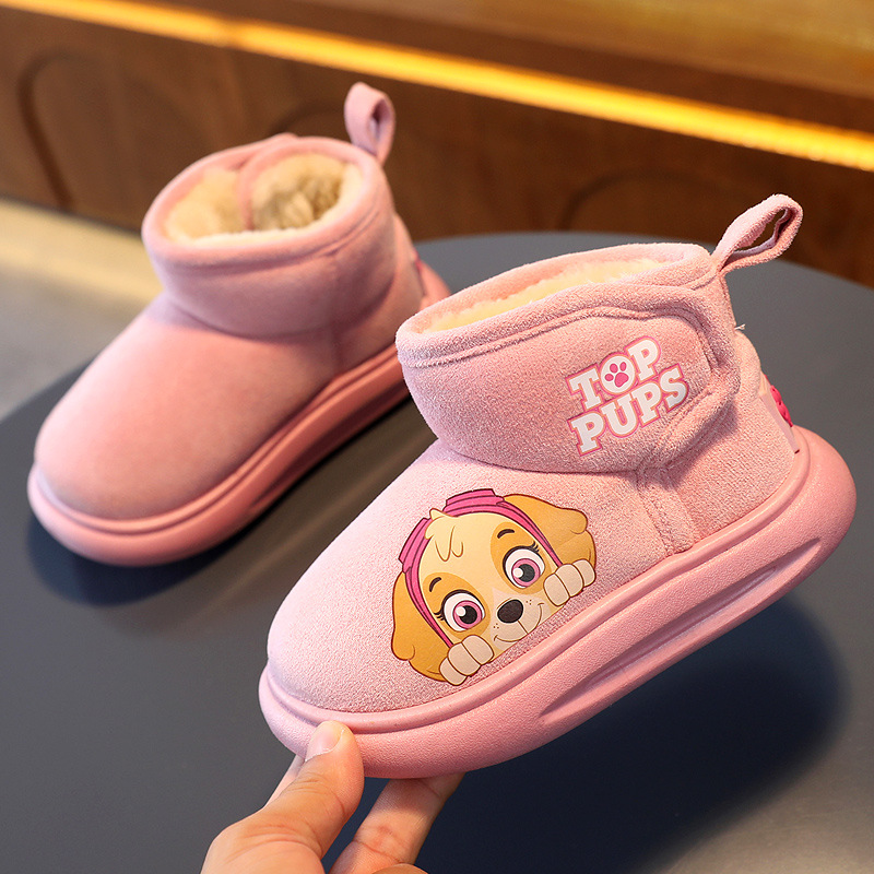 강아지 팀 어린이 면 부츠, 남아용 두꺼운 보온 겨울 신상품, 여아용 짧은 부츠, 플러시 안감 홈 면화 신발스토어 가기