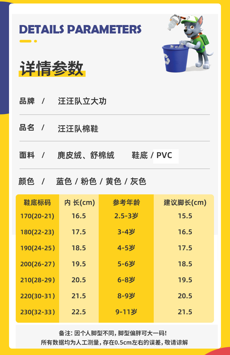 강아지 팀 어린이 면 부츠, 남아용 두꺼운 보온 겨울 신상품, 여아용 짧은 부츠, 플러시 안감 홈 면화 신발