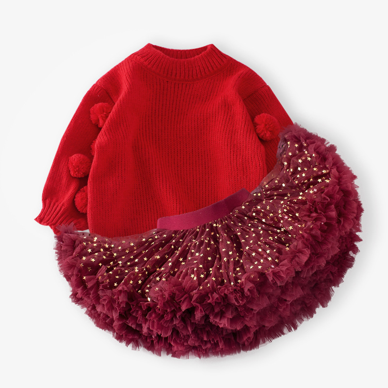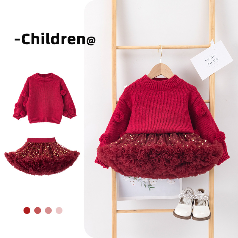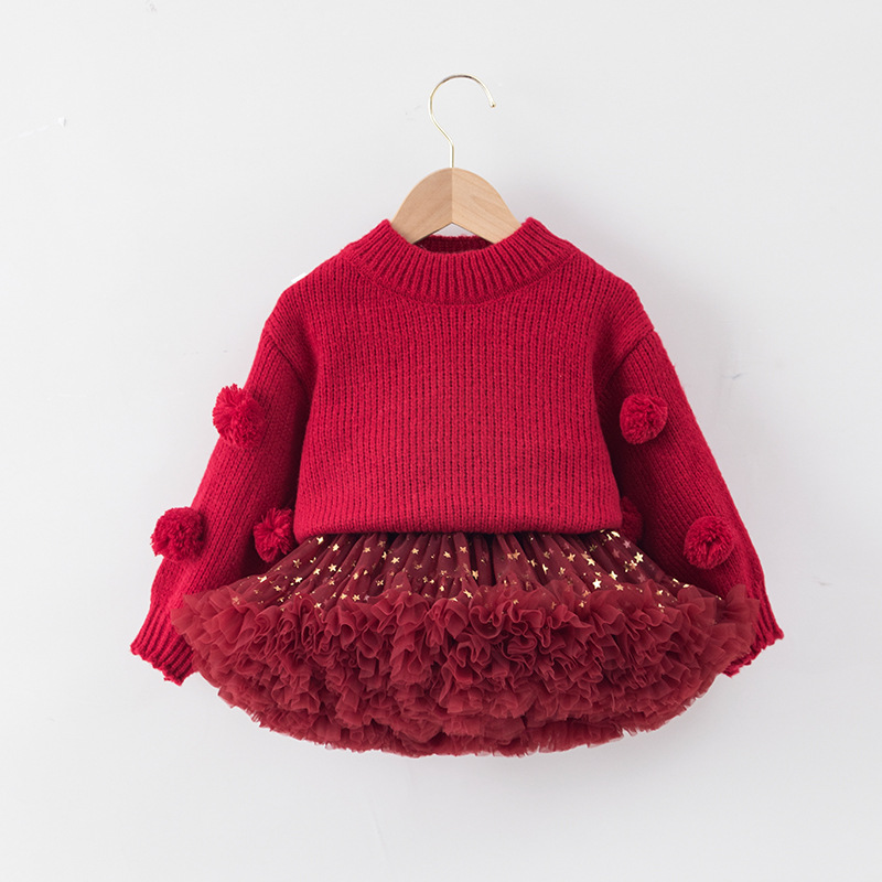 가을과 겨울 크리스마스 정리 소녀 한국 수제 공 터틀넥 스웨터 귀여운 소녀 투투 원피스 세트스토어 가기