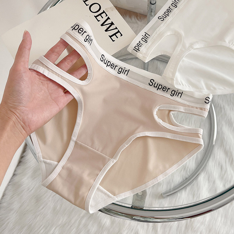 흔적이없는 속옷 여성용 로우 웨이스트 얇은 순수면 항균 가랑이 새로운 중공 얇은 벨트 섹시한 스포츠 스타일 삼각형 반바지