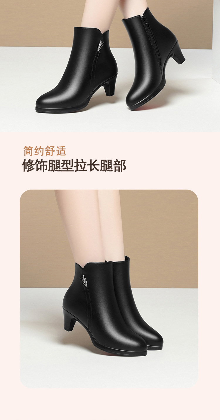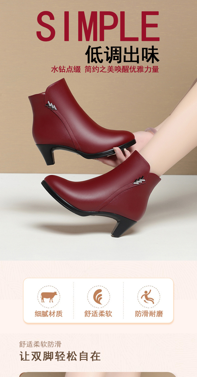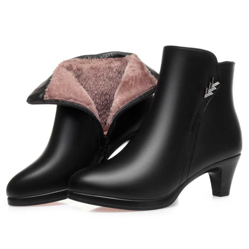 여성을위한 국경 간 짧은 부츠 가을, 겨울 새로운 스타일 편안한 면화 중간 굽 플러스 벨벳 부츠 중년 여성 가죽 신발 어머니 부츠