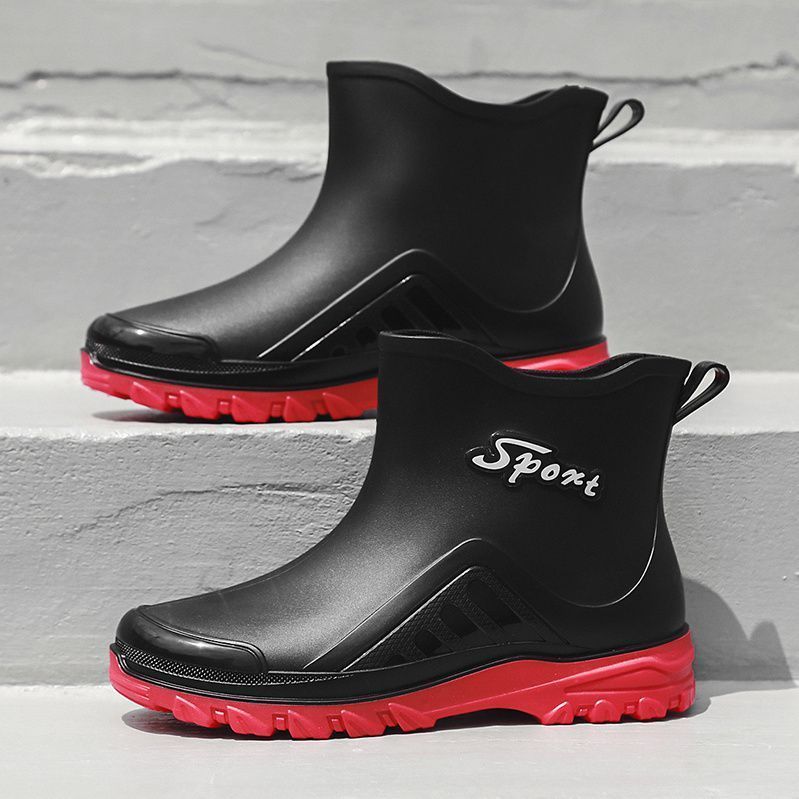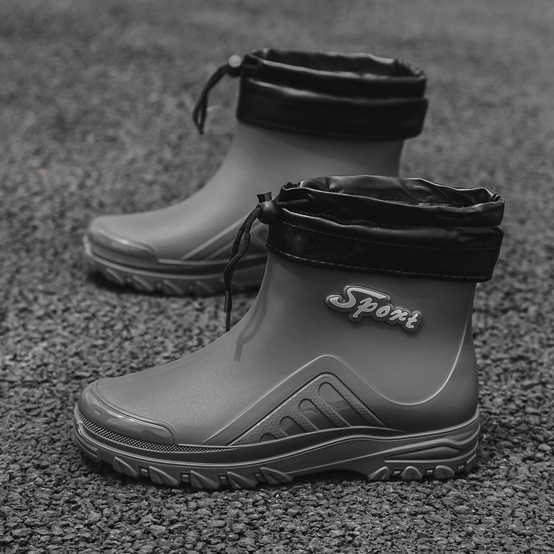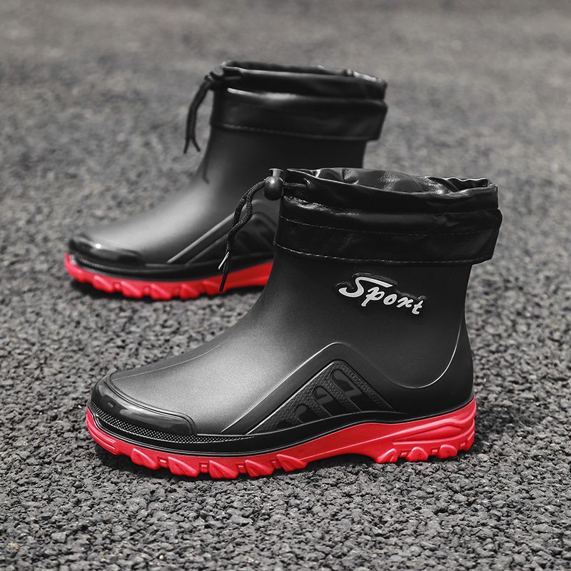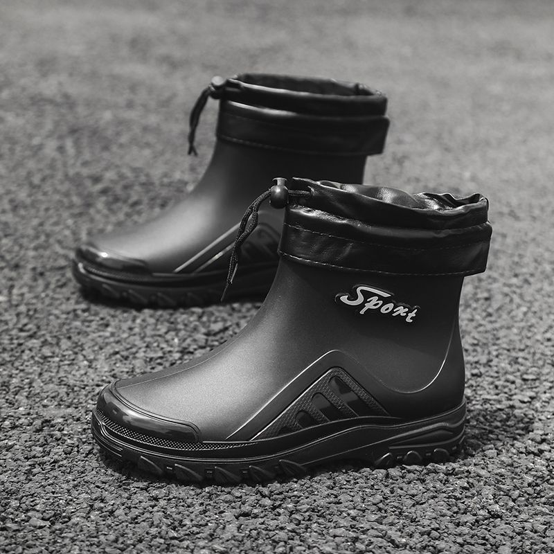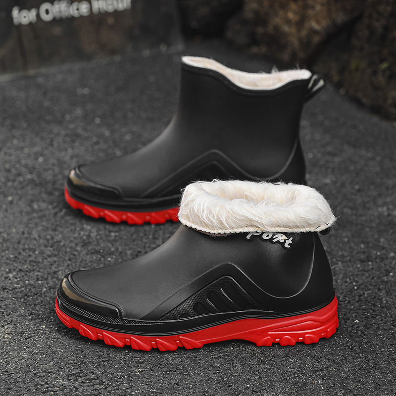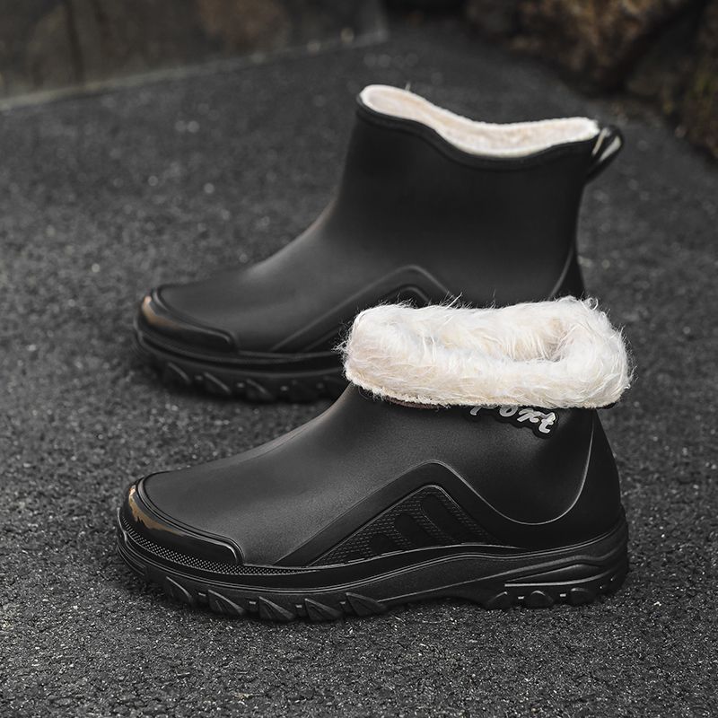 장화 남자 고정 벨벳 짧은 튜브 미끄럼 방지 방수 신발 주방 고무 신발 세차 사이트 내마모성 워터 부츠 기모 따뜻한스토어 가기