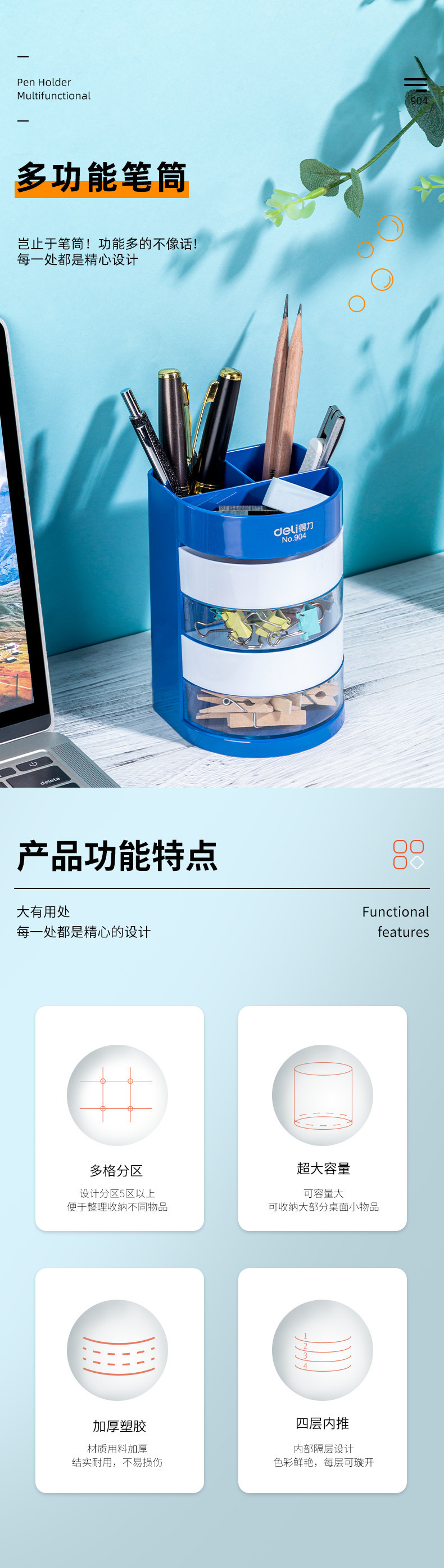 델리 904 다기능 펜 홀더 비즈니스 사무실 펜 홀더 학생 성격 창조적 인 데스크탑 보관 상자 펜 홀더 도매