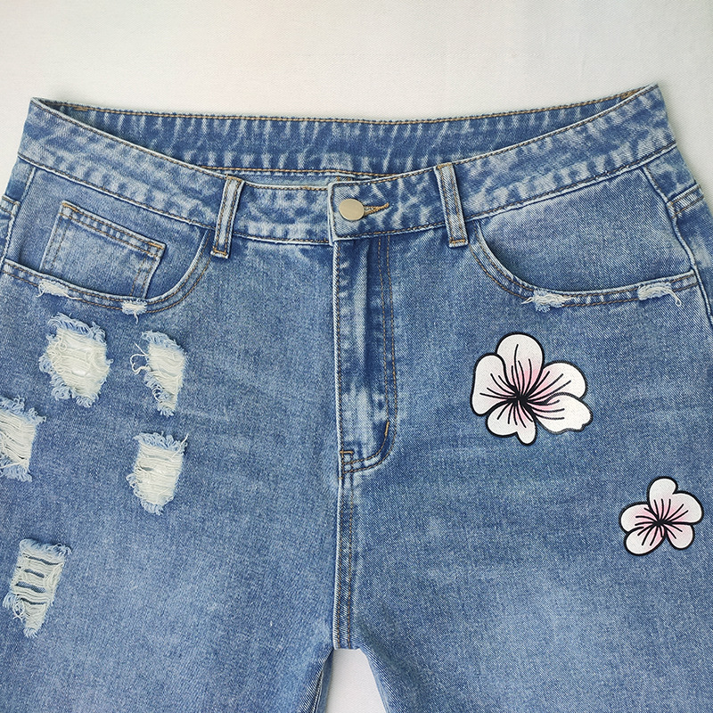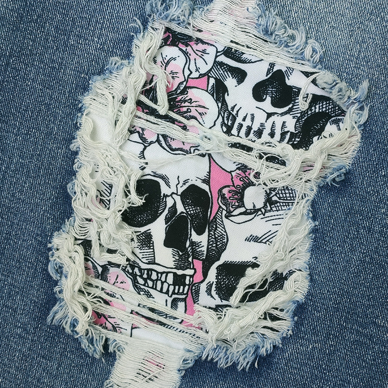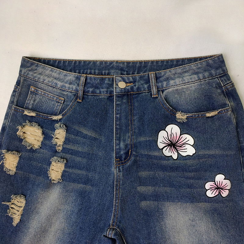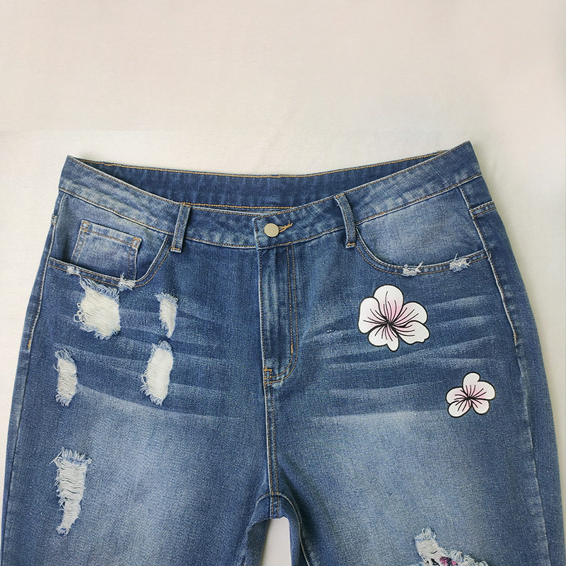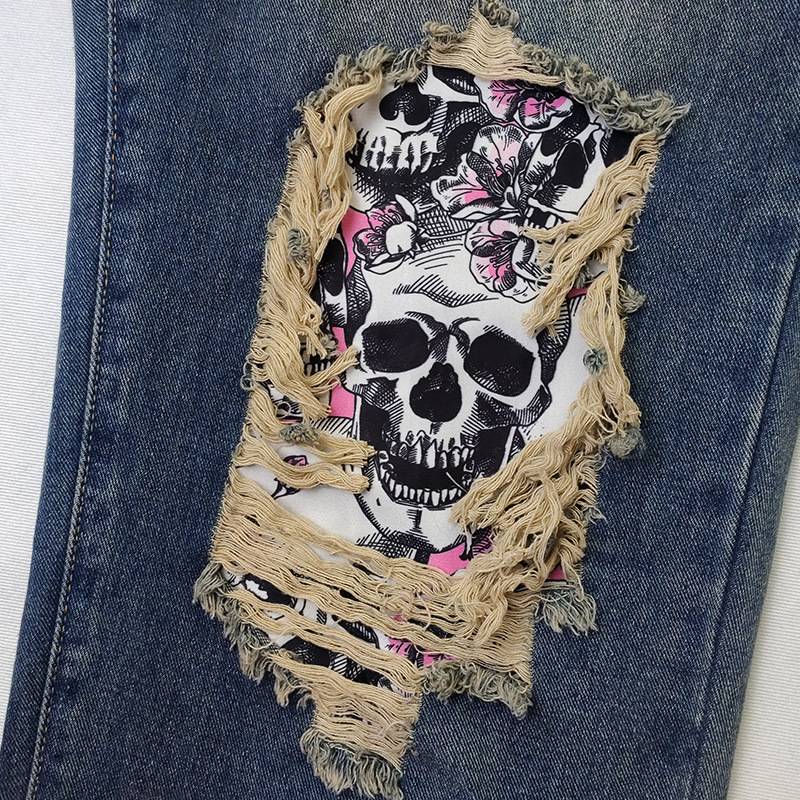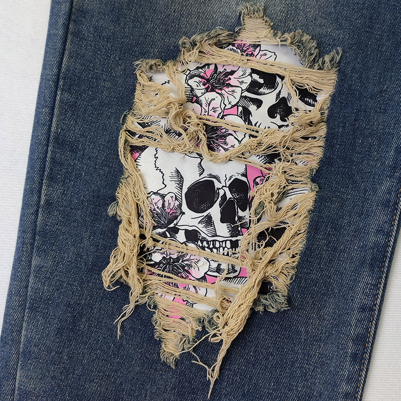 외국 무역 여자의 청바지 찢어진 유행 해골 아마존 새로운 유럽과 미국 스트레이트 컬 플러스 사이즈 바지스토어 가기