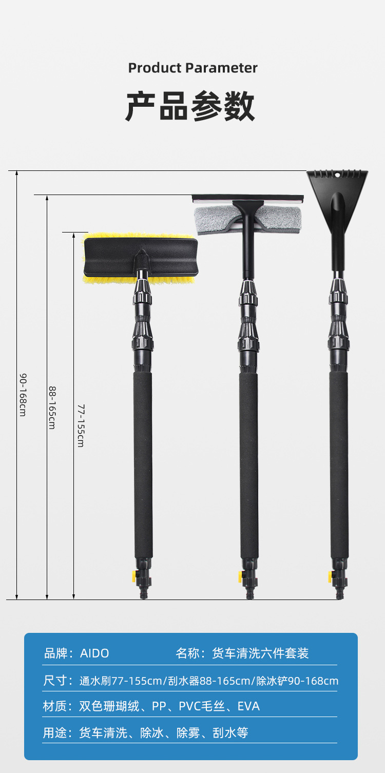 Aido의 새로운 소스 제조업체 트럭 청소 세트 세 가지 유형의 교체 브러시 헤드 청소, 얼음 제거, 김서림 제거 및 와이퍼스토어 가기