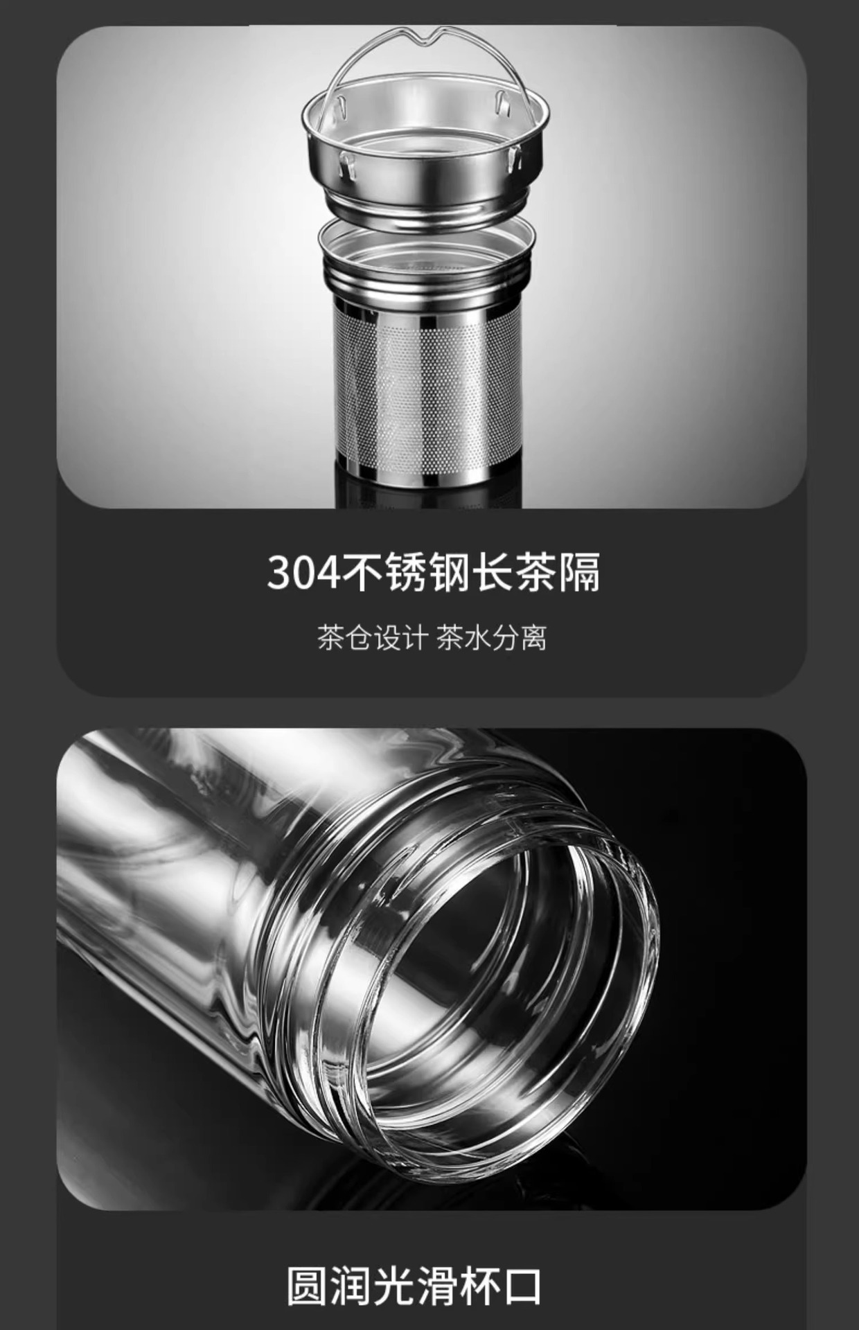 두꺼운 이중 유리컵, 방폭 및 고온 저항 유리 차컵, 남녀 공용 대용량 가정용 스마트 온도 표시 컵