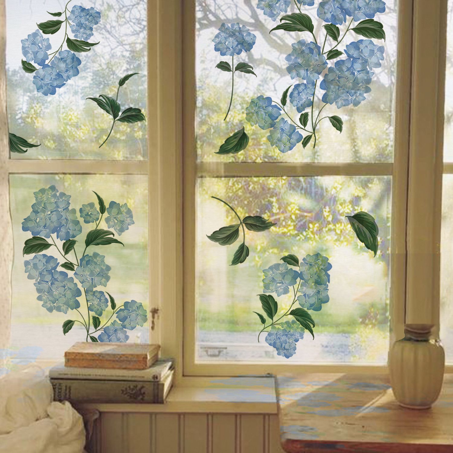 Funlife 꽃 바다 빛과 그림자 접착제 무료 정전기 유리 스티커 아마존 양면 높은 투명 꽃 스티커 SE160