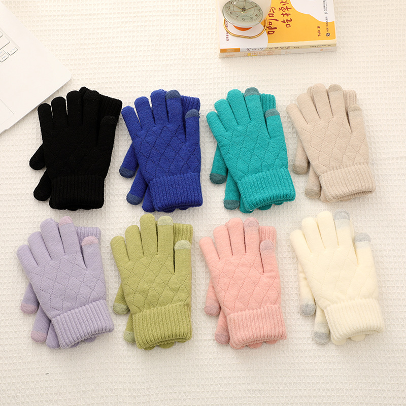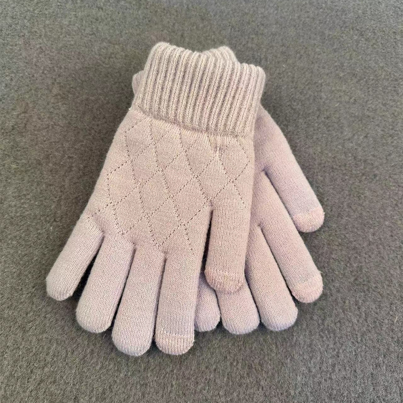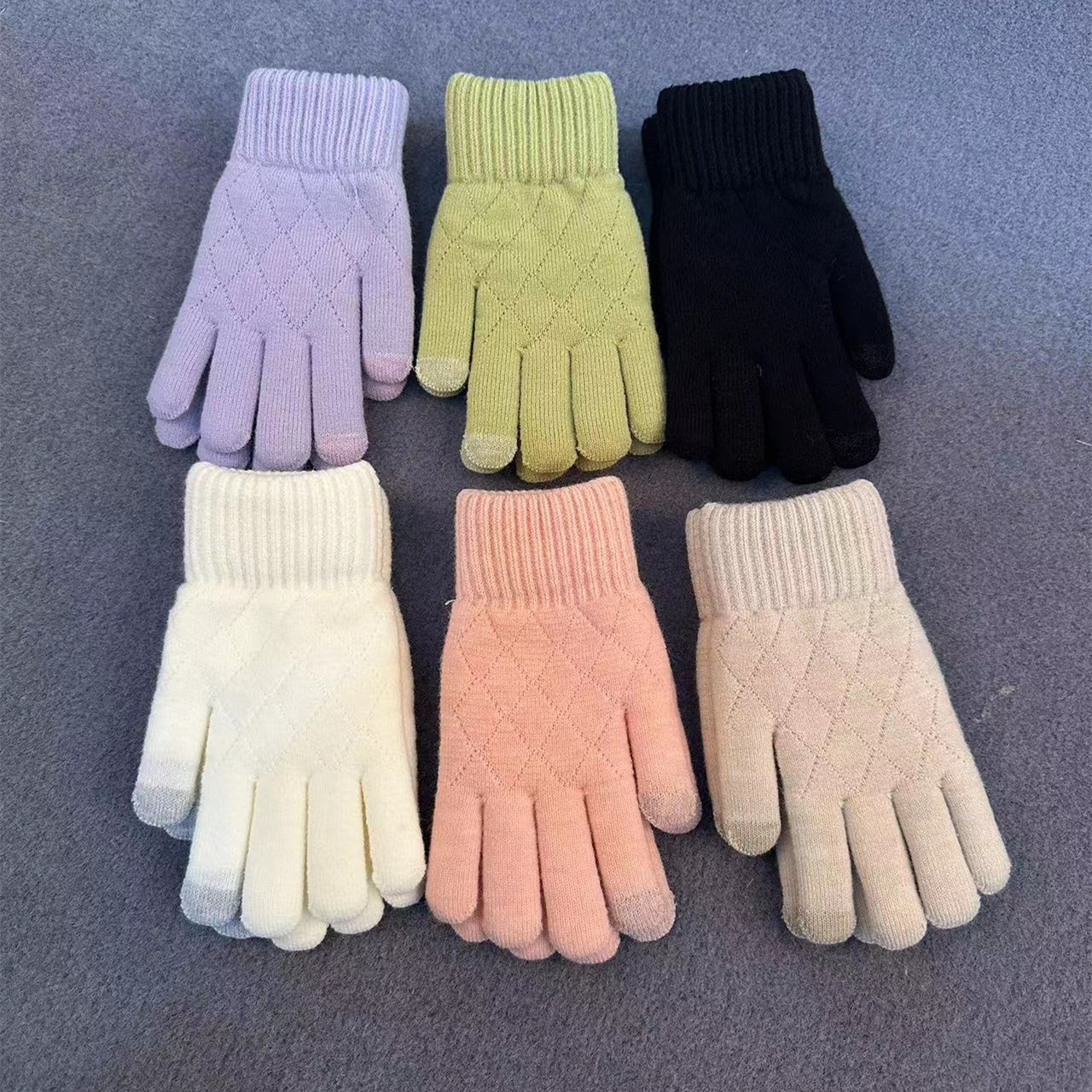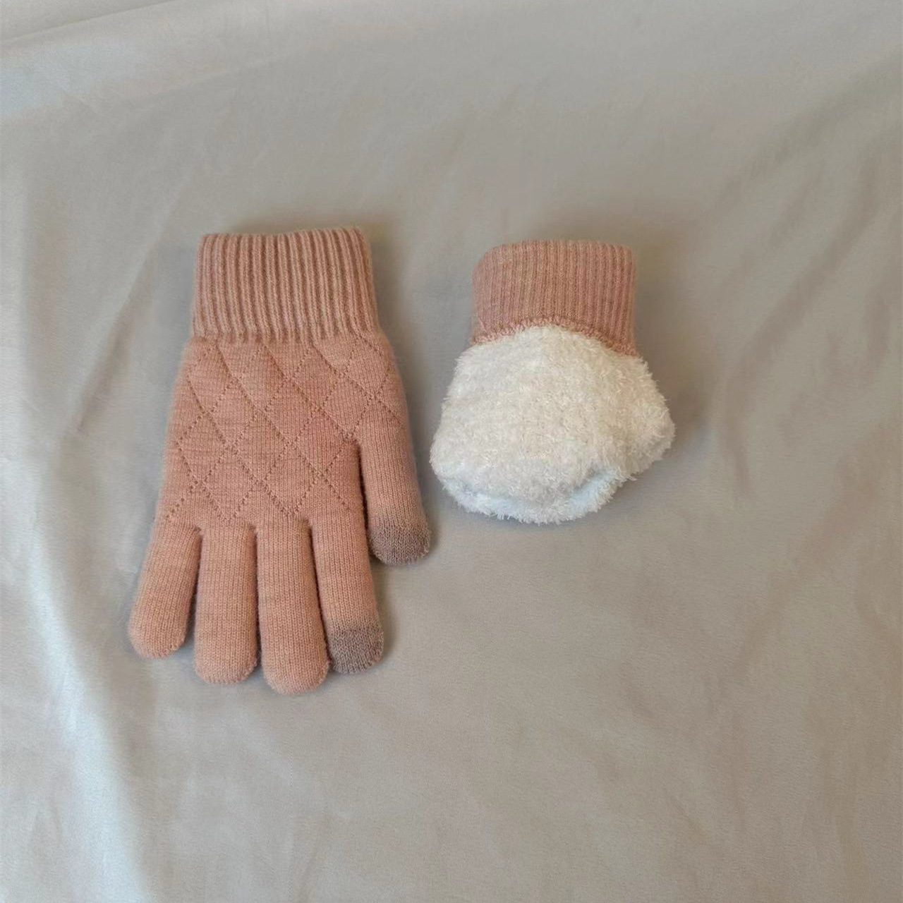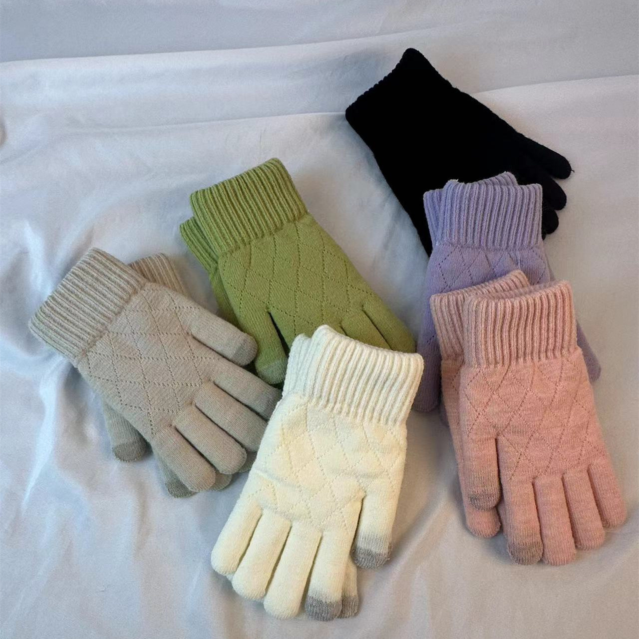 겨울 따뜻한 플러스 벨벳 두꺼운 더블 레이어 자카드 중공 다이아몬드 격자 무늬 솔리드 컬러 유행 여성을위한 한국 스타일 니트 양모 장갑