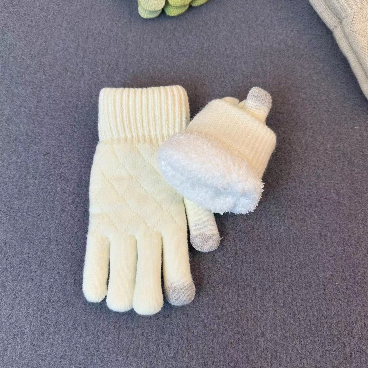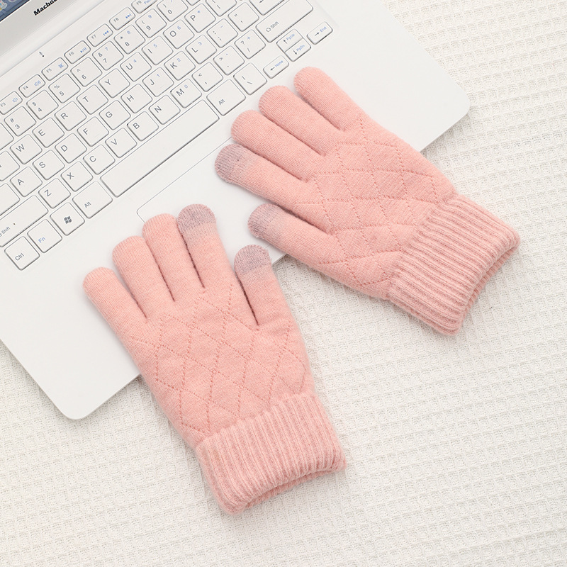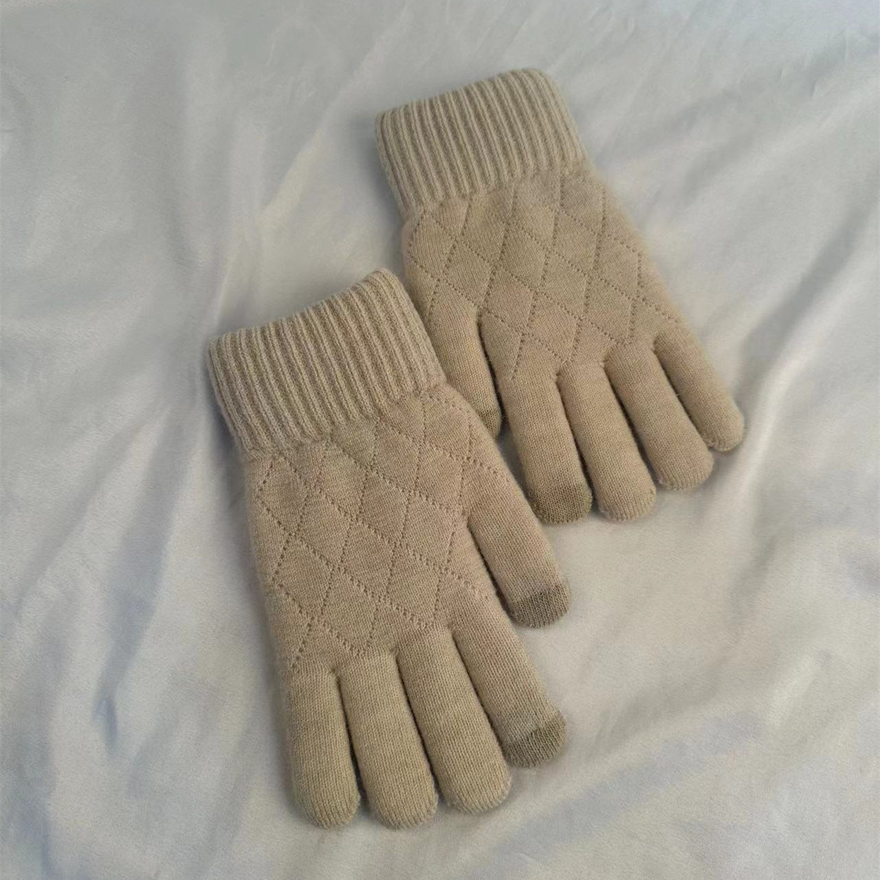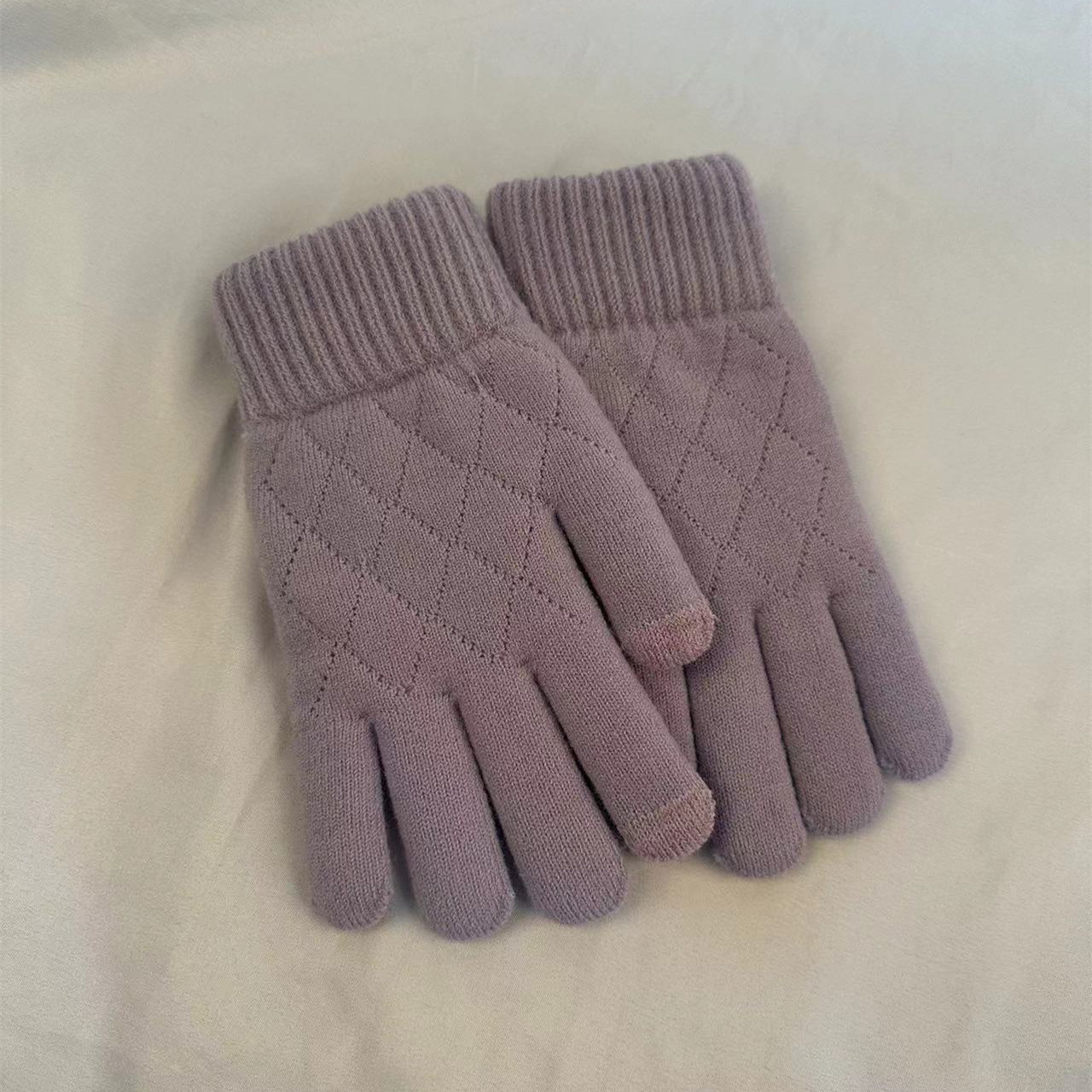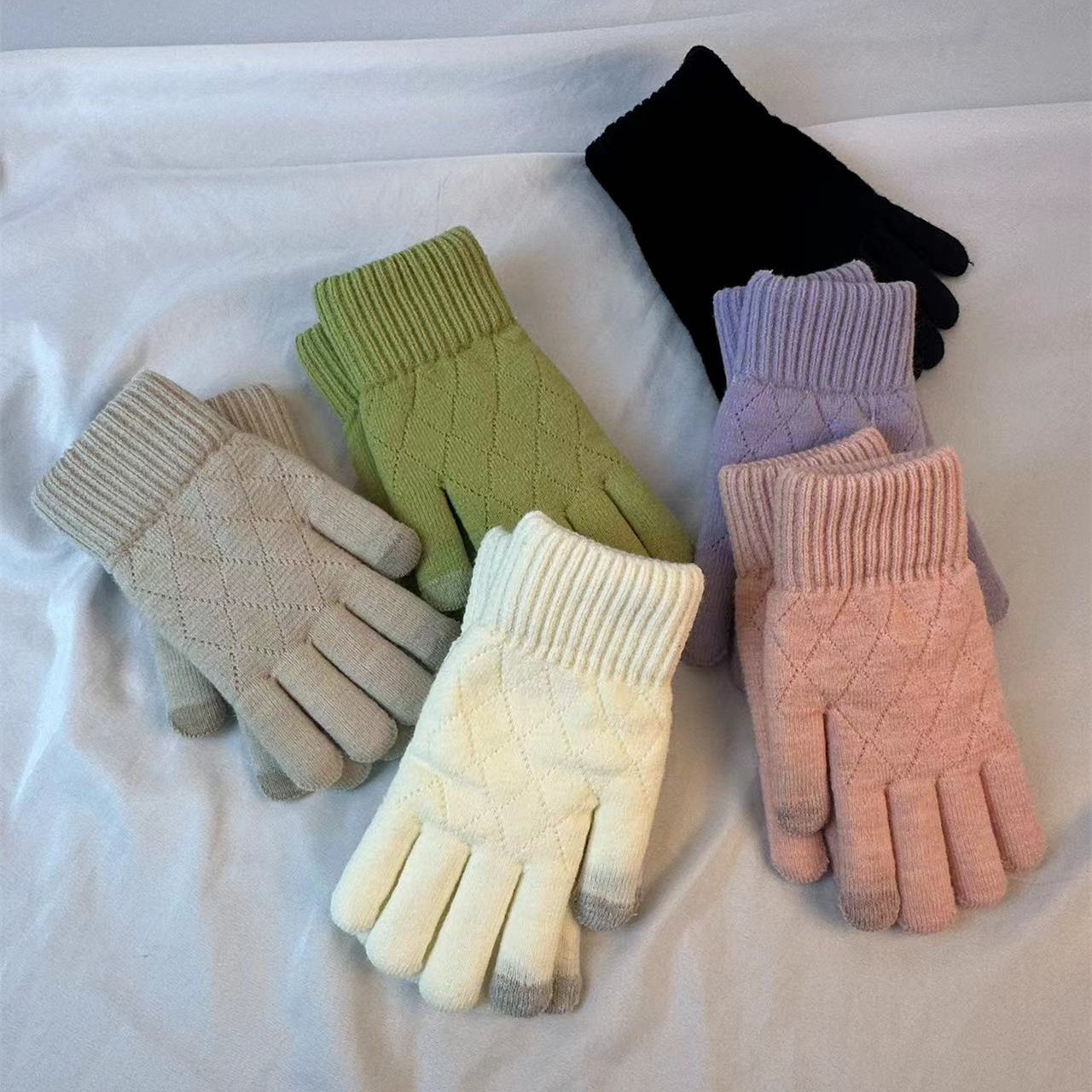 겨울 따뜻한 플러스 벨벳 두꺼운 더블 레이어 자카드 중공 다이아몬드 격자 무늬 솔리드 컬러 유행 여성을위한 한국 스타일 니트 양모 장갑