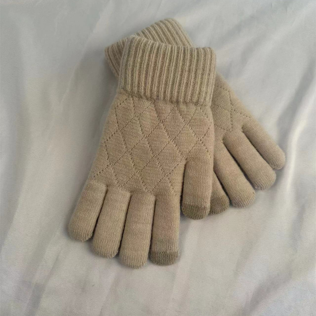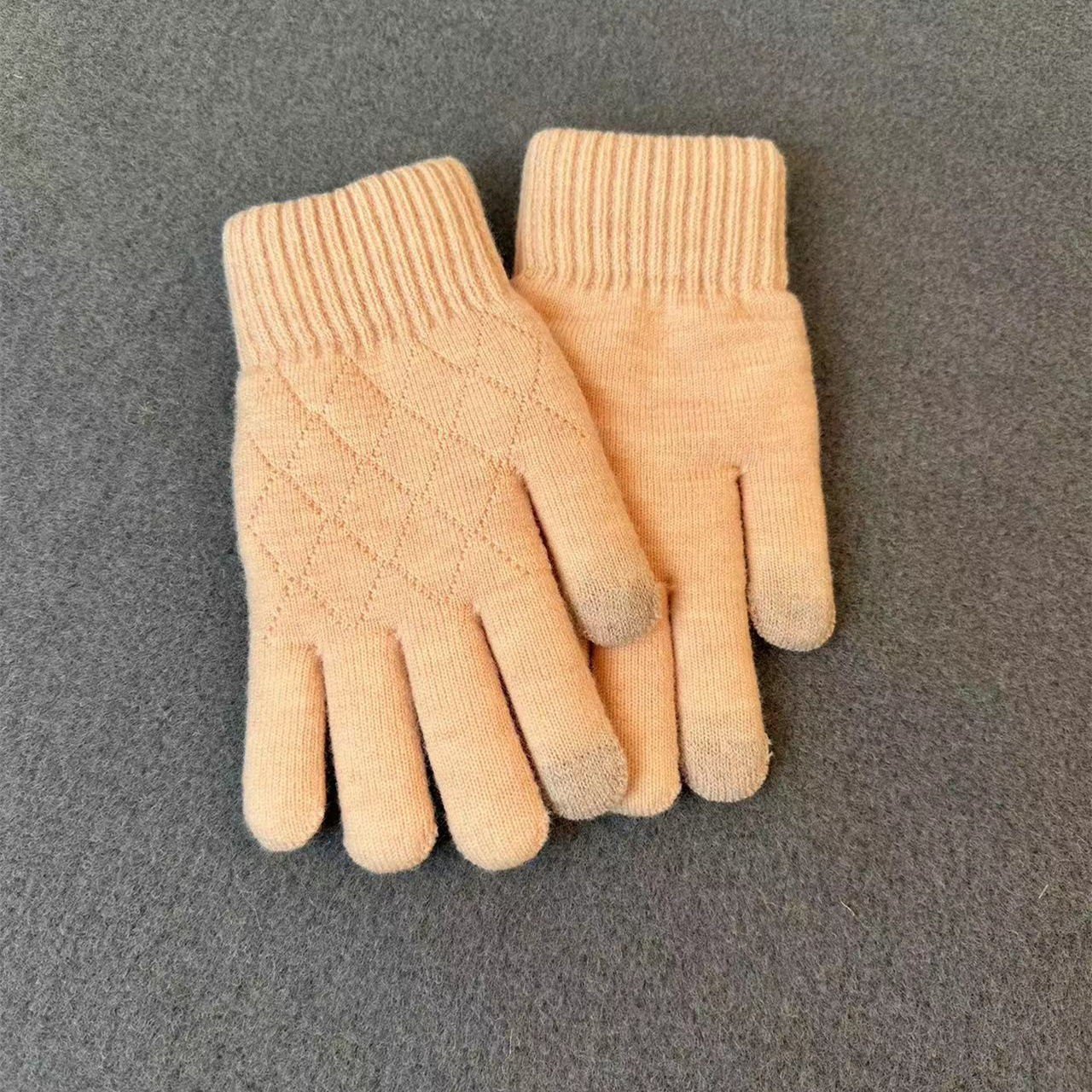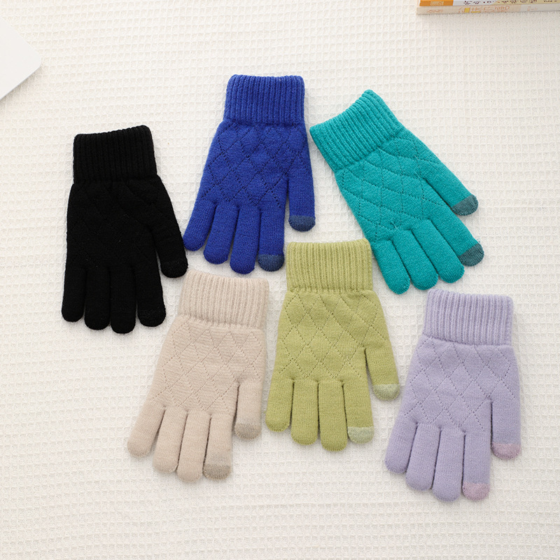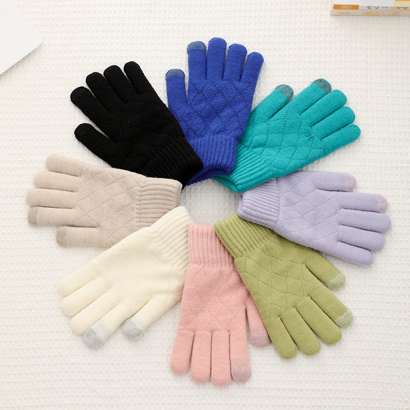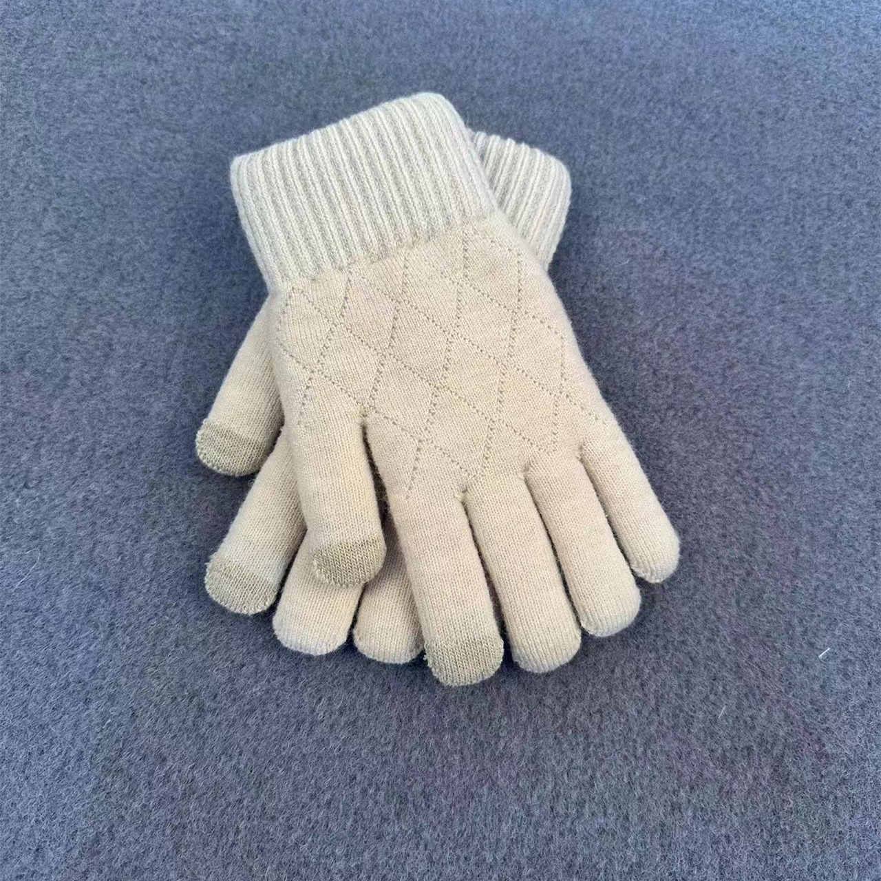 겨울 따뜻한 플러스 벨벳 두꺼운 더블 레이어 자카드 중공 다이아몬드 격자 무늬 솔리드 컬러 유행 여성을위한 한국 스타일 니트 양모 장갑