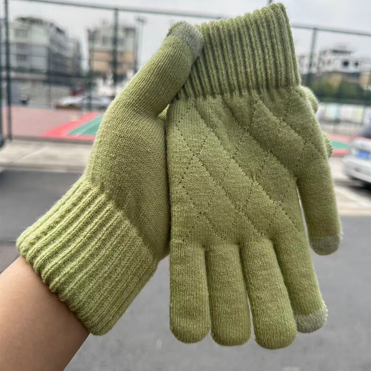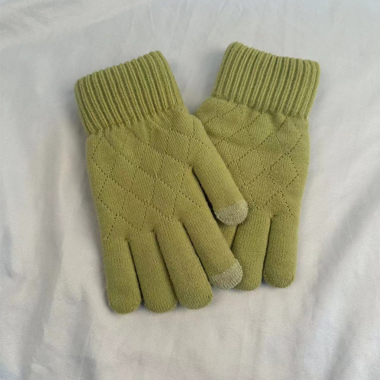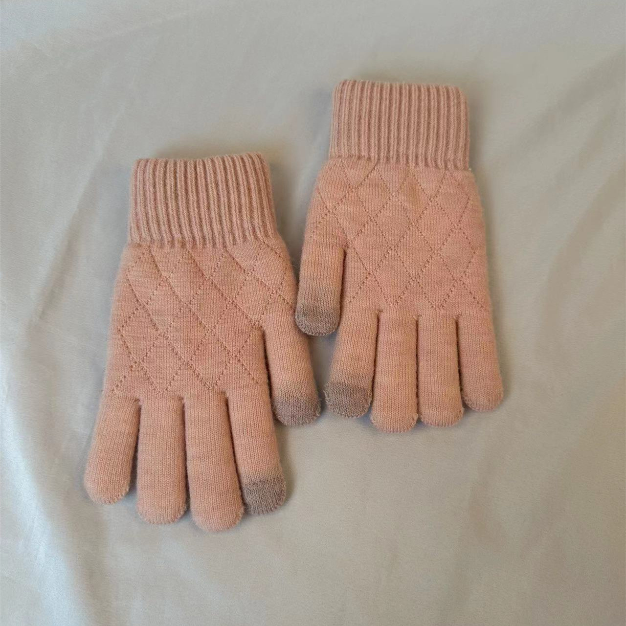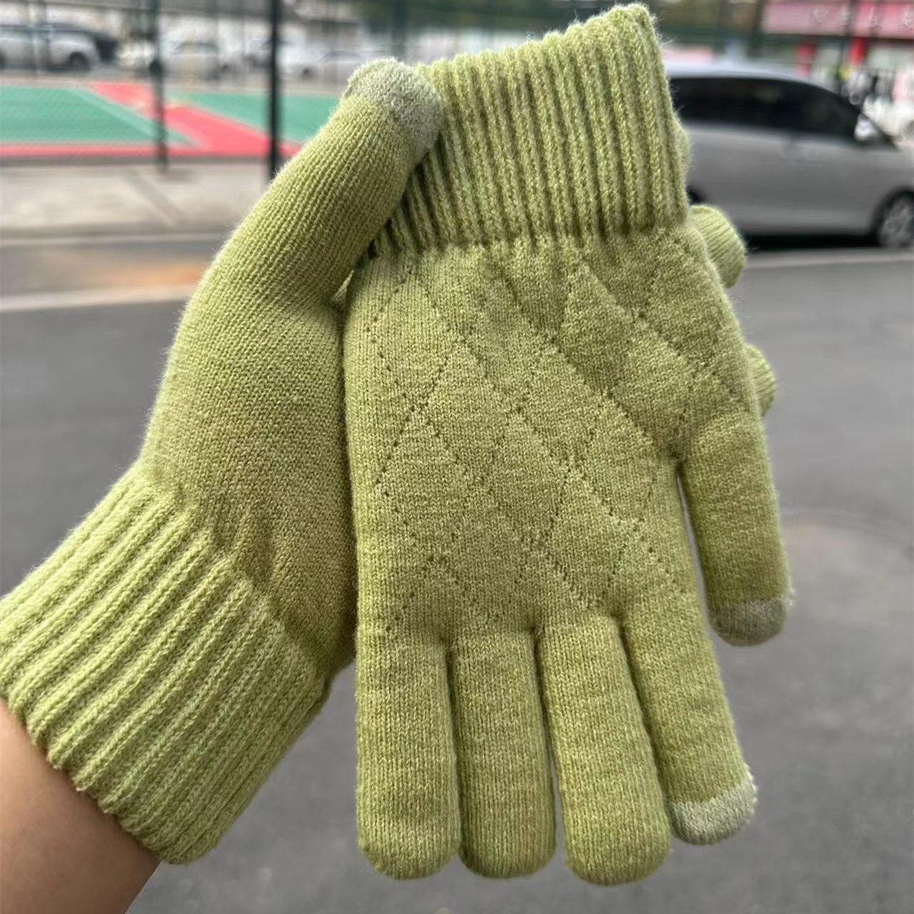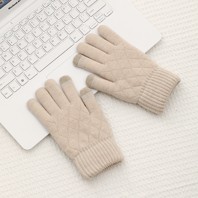 겨울 따뜻한 플러스 벨벳 두꺼운 더블 레이어 자카드 중공 다이아몬드 격자 무늬 솔리드 컬러 유행 여성을위한 한국 스타일 니트 양모 장갑