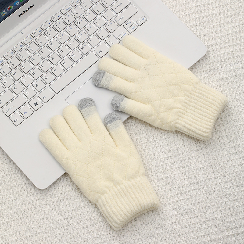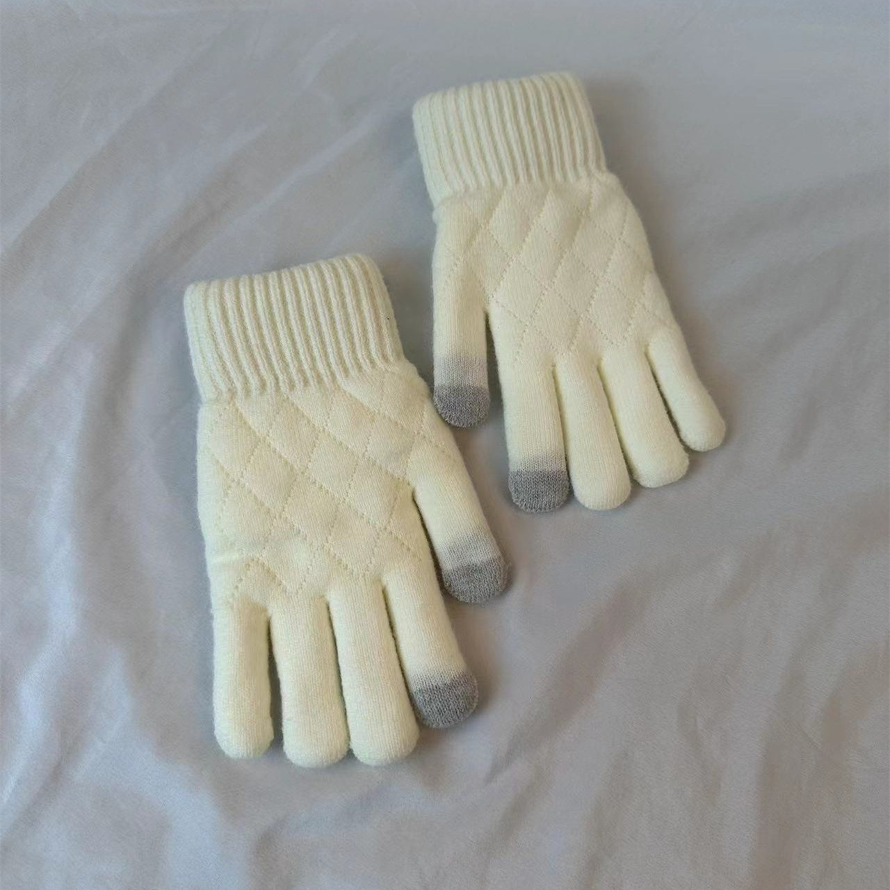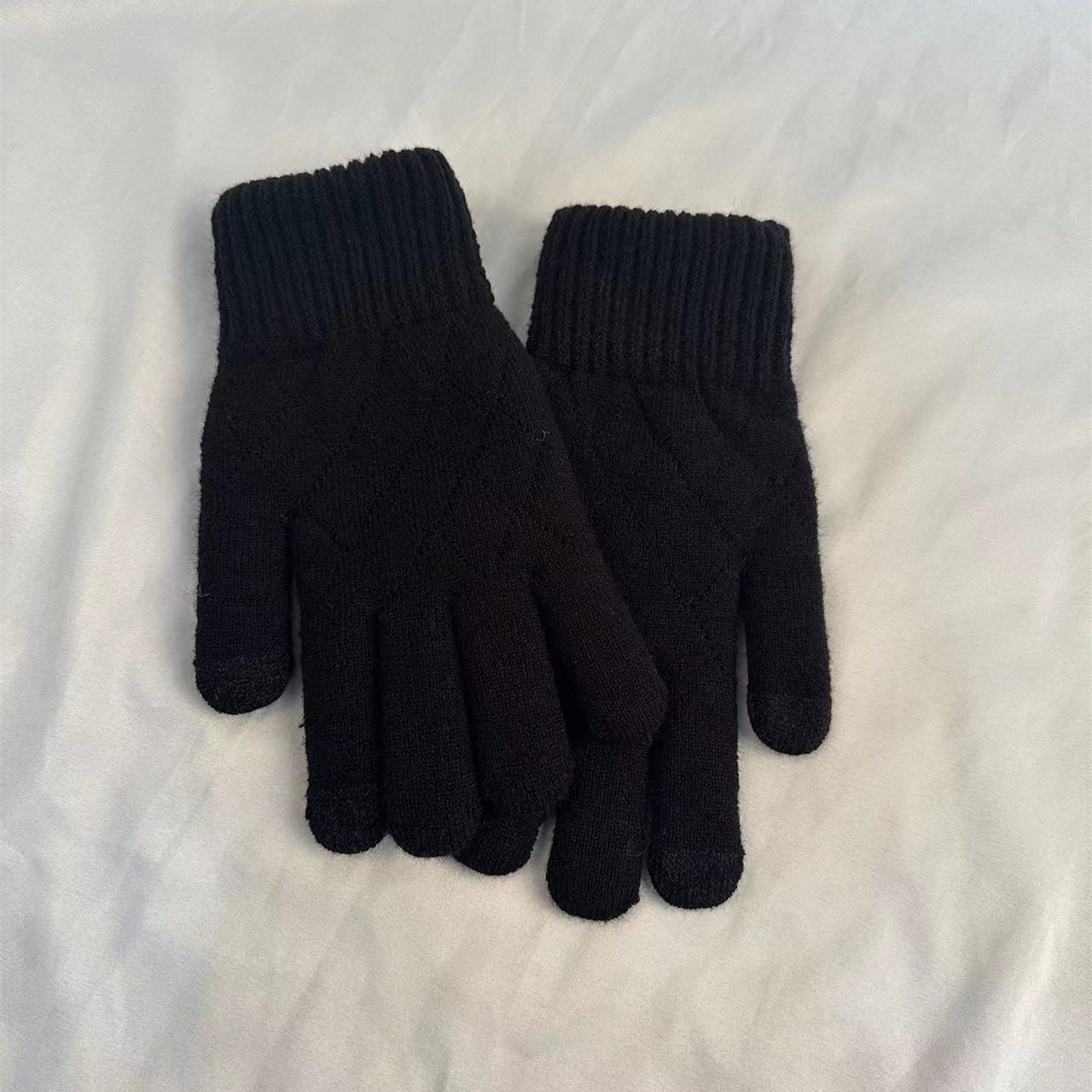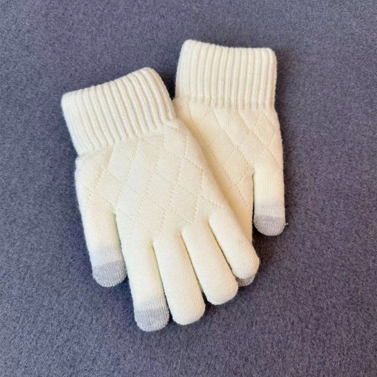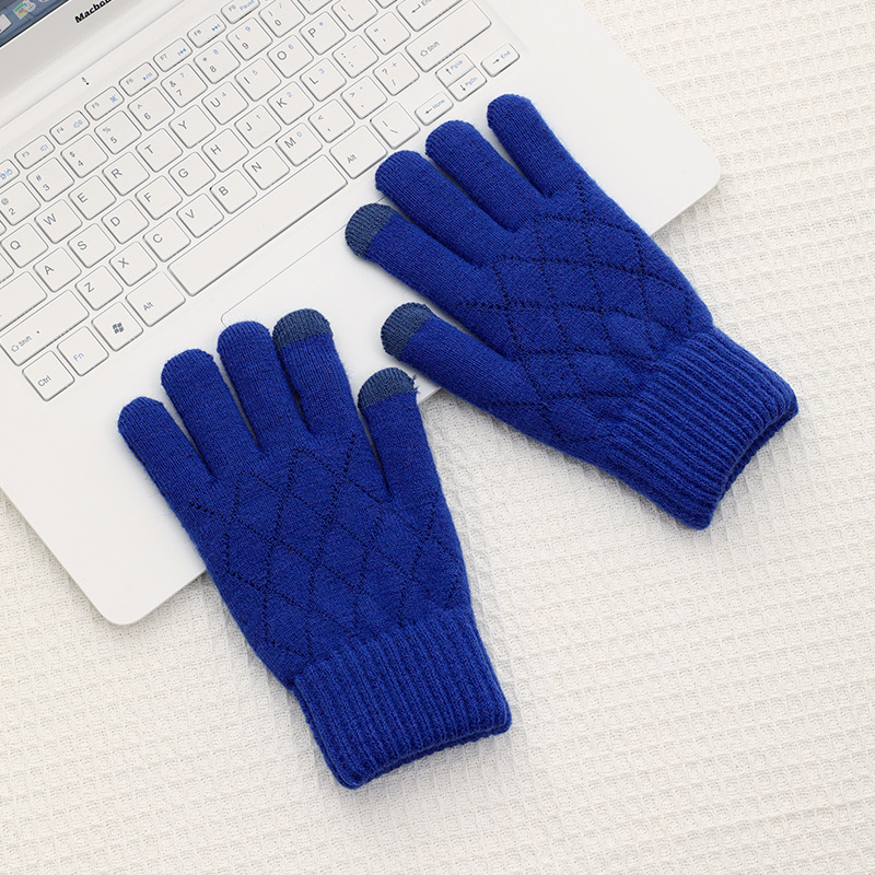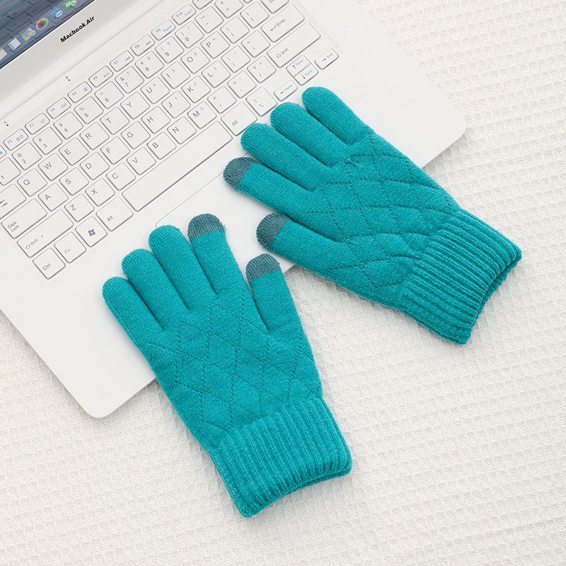 겨울 따뜻한 플러스 벨벳 두꺼운 더블 레이어 자카드 중공 다이아몬드 격자 무늬 솔리드 컬러 유행 여성을위한 한국 스타일 니트 양모 장갑
