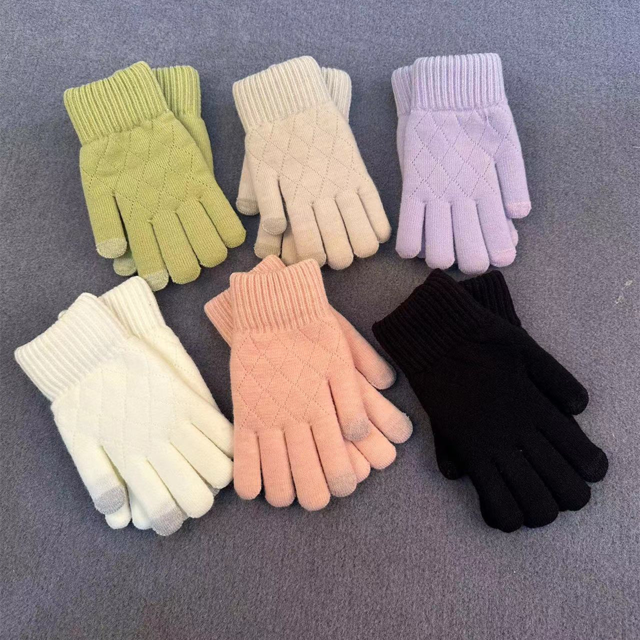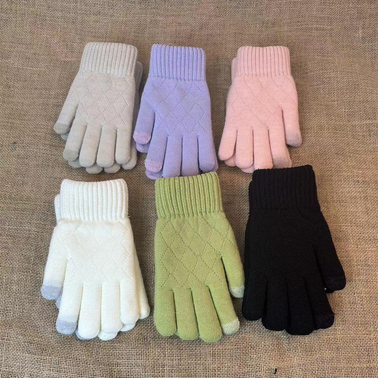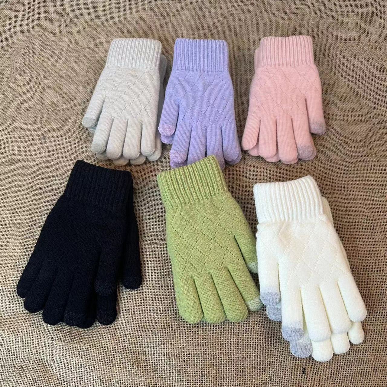 韩版针织毛线手套女冬季保暖加绒加厚双层提花镂空菱形格纹纯色潮 手套为女士均码的 23 长 12厘米宽 双层加厚加绒 触屏针织毛线手套 材质为仿羊绒 戴起来手感软绵 保暖方便! 独立包装简约opp透明袋子双 一包12 双 一件300 双 支持一件代发 默认中通韵达快递大货联系客服备注发实惠物流 代发客户支持7天无理由 运费自己出!