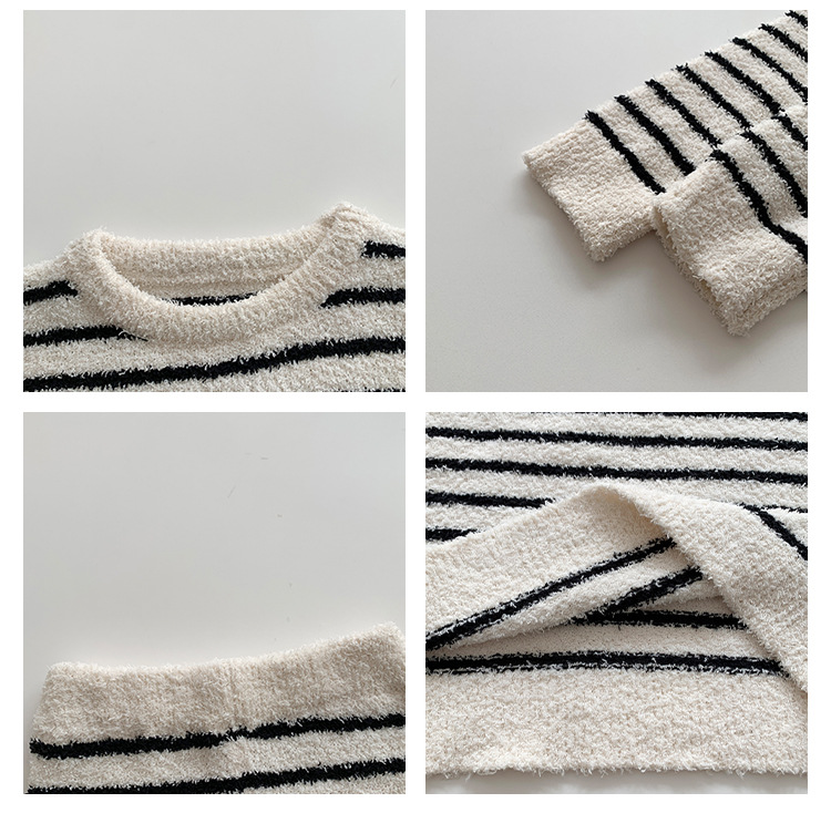 【클리어런스 특가】아동용 겨울 한국 스타일 아기 홈웨어 두꺼운 산호 벨벳 줄무늬 남아 잠옷 세트