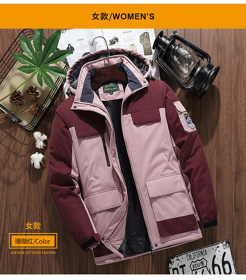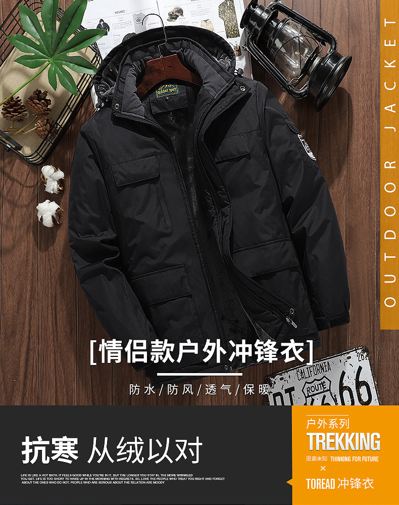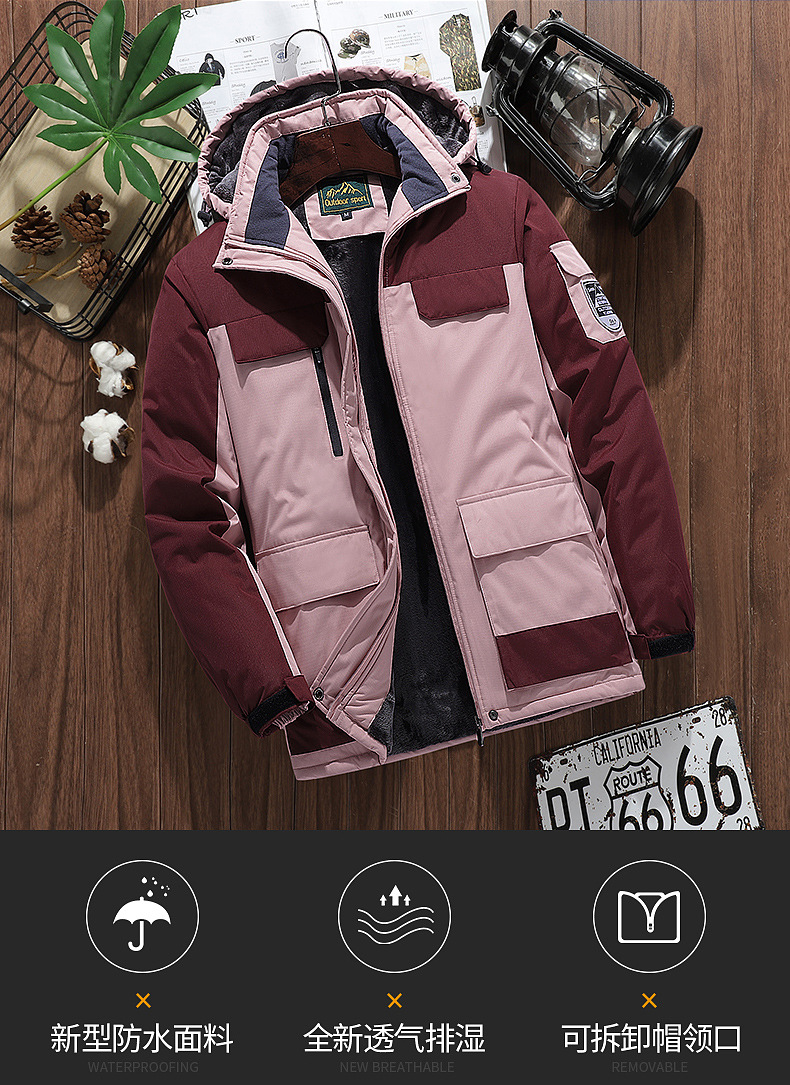 겨울 야외 다용도 포켓 재킷 대형 남성용 야외 낚시복 방풍 방한 플러스 벨벳 커플 등산복