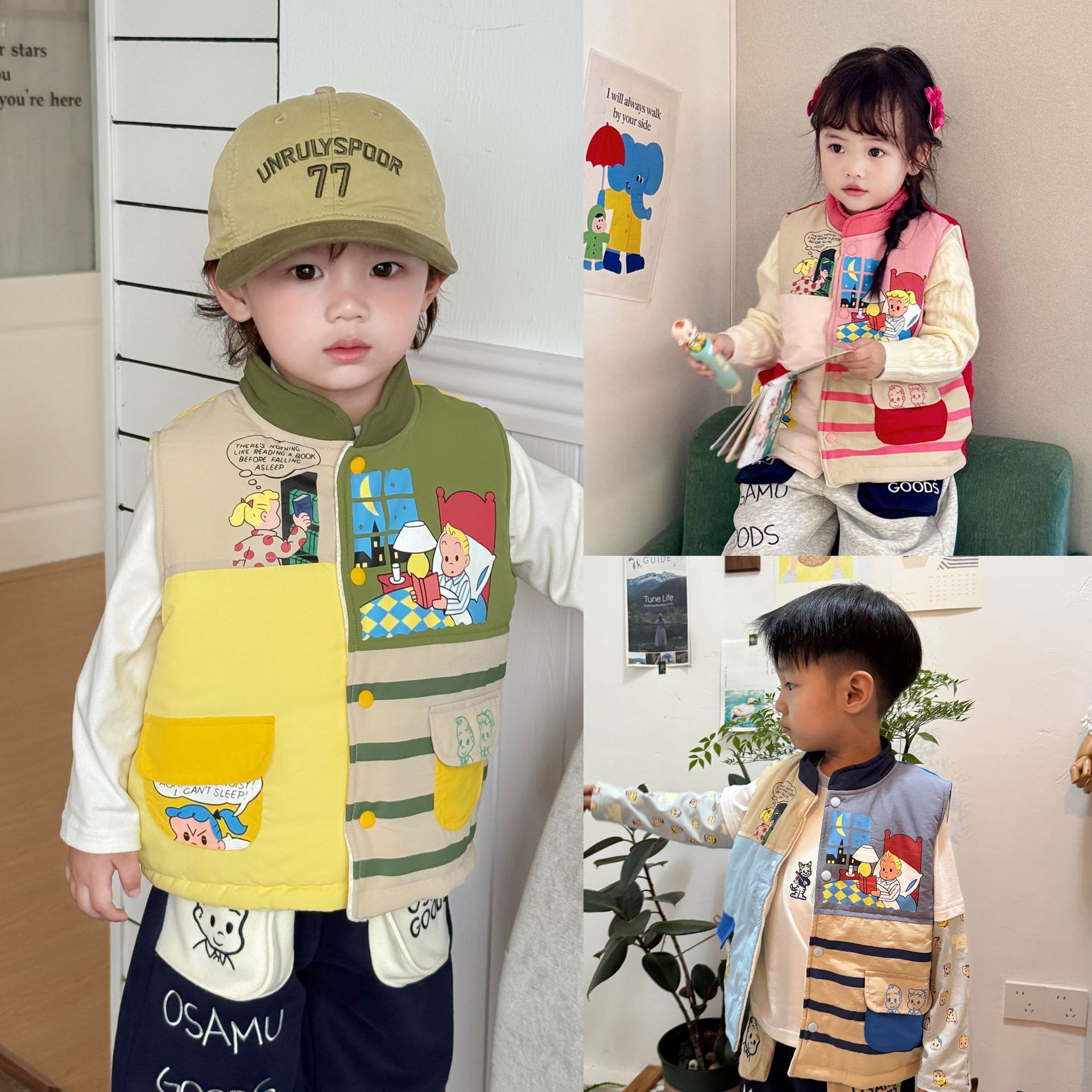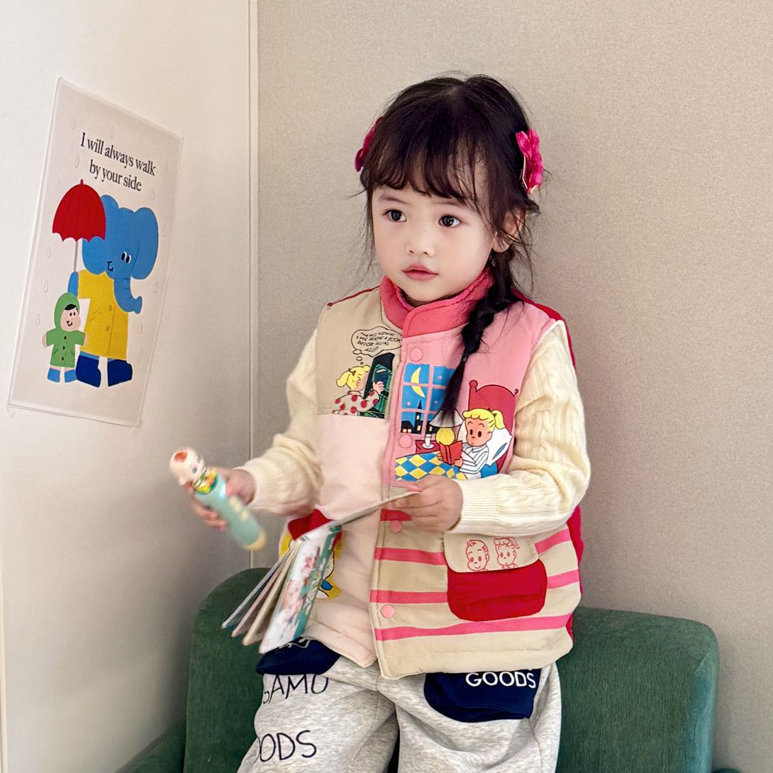 어린이용 면 조끼 2025 겨울 남녀 아동용 보온 면 플러스 벨벳 두꺼운 조끼 아기 외출용 방한 조끼스토어 가기