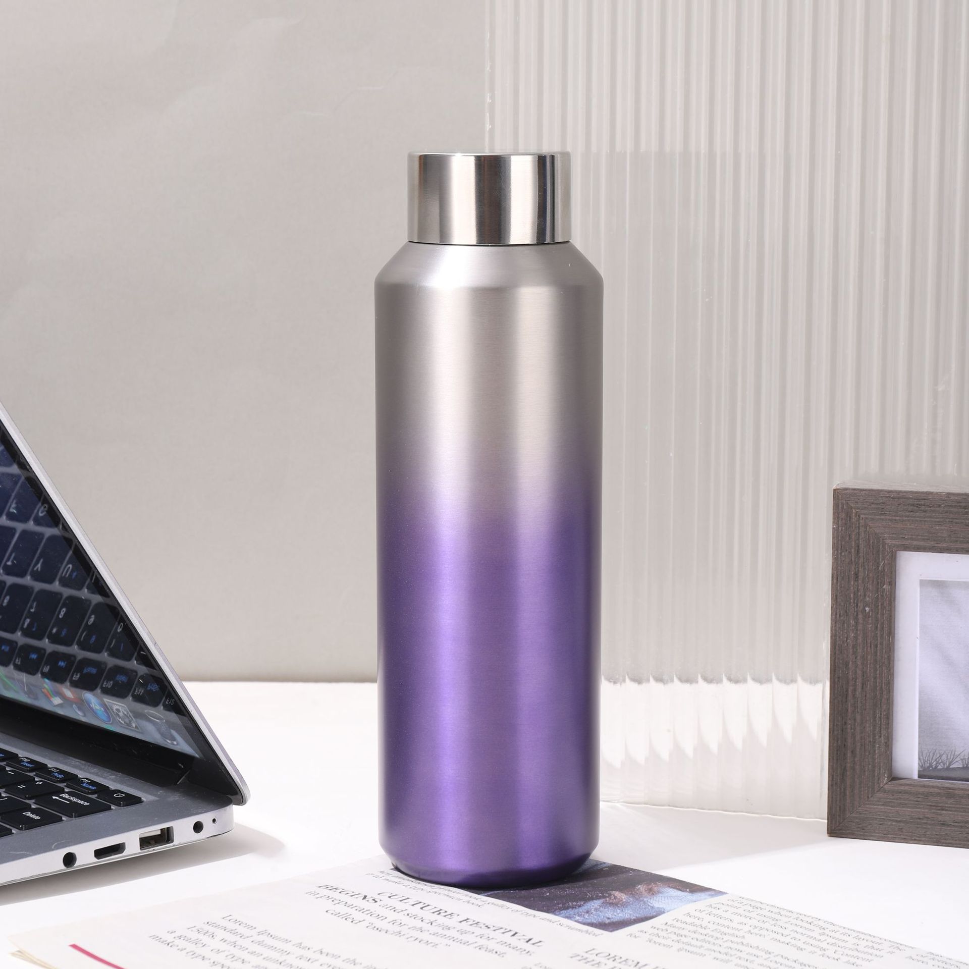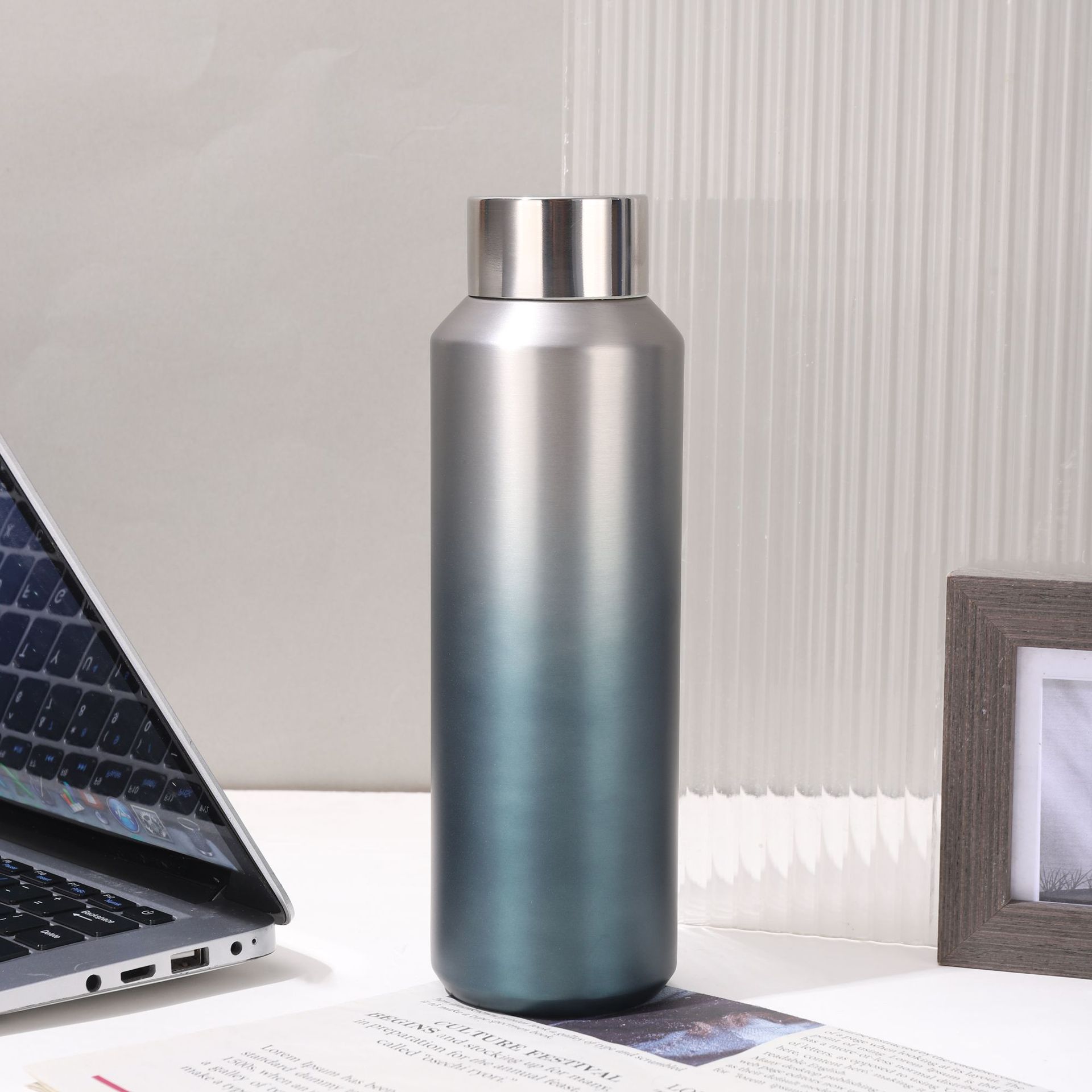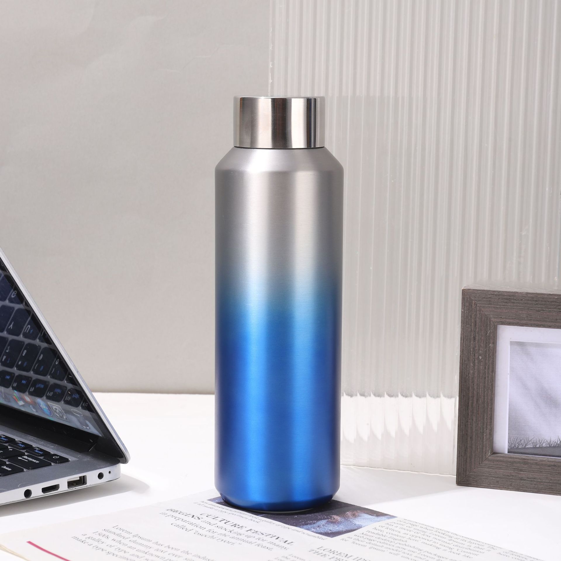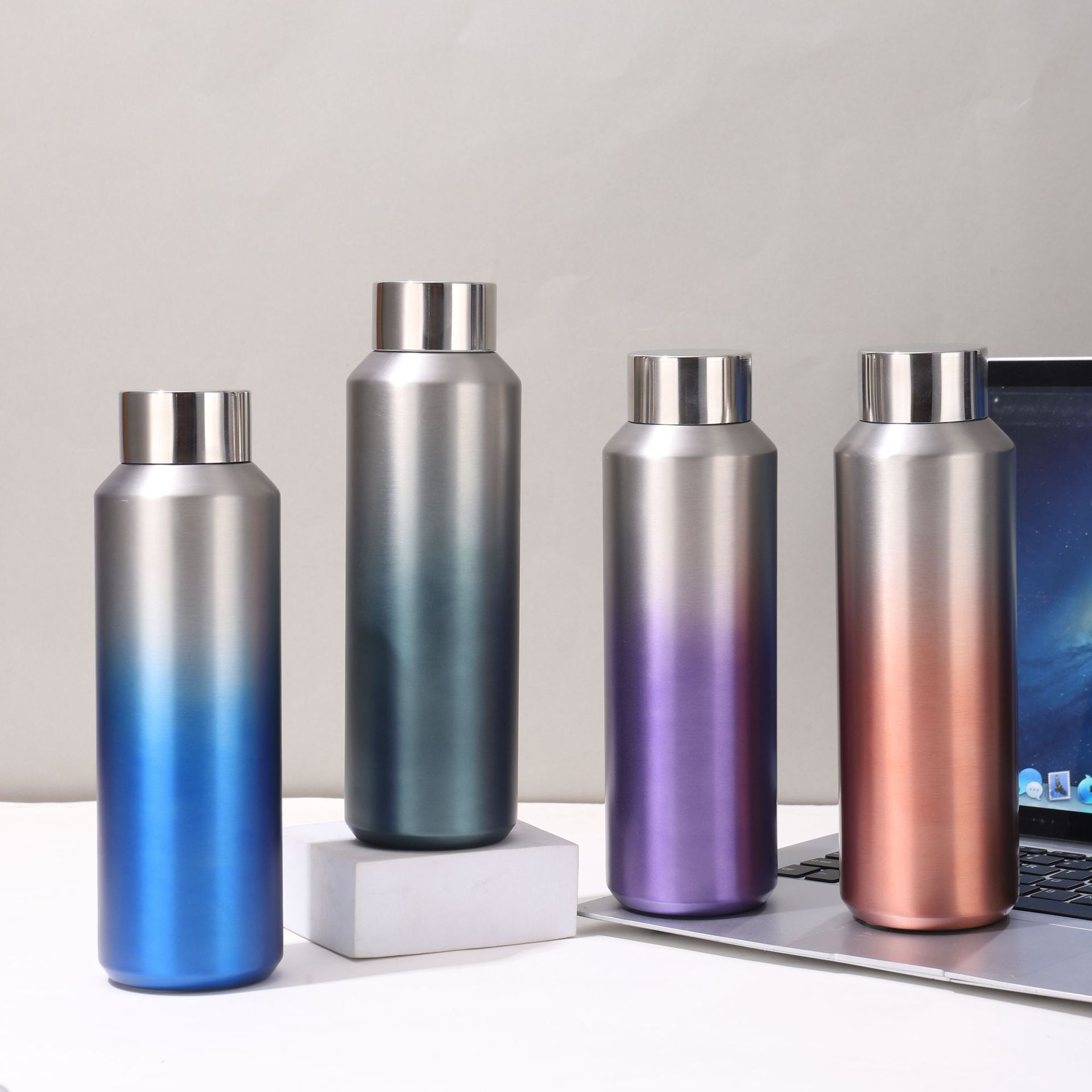 도매 미국의 작은 입 병 그라디언트 컬러 스테인레스 스틸 진공 컵 야외 휴대용 등반 냄비 대용량 스포츠 주전자