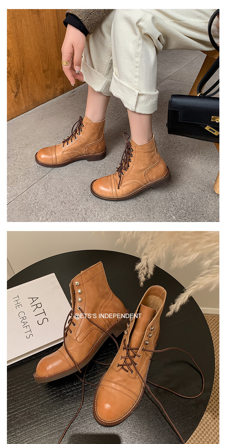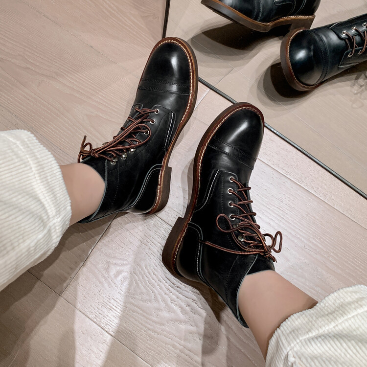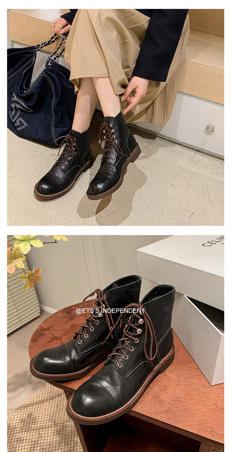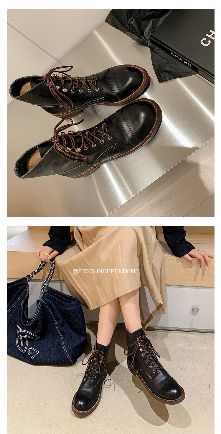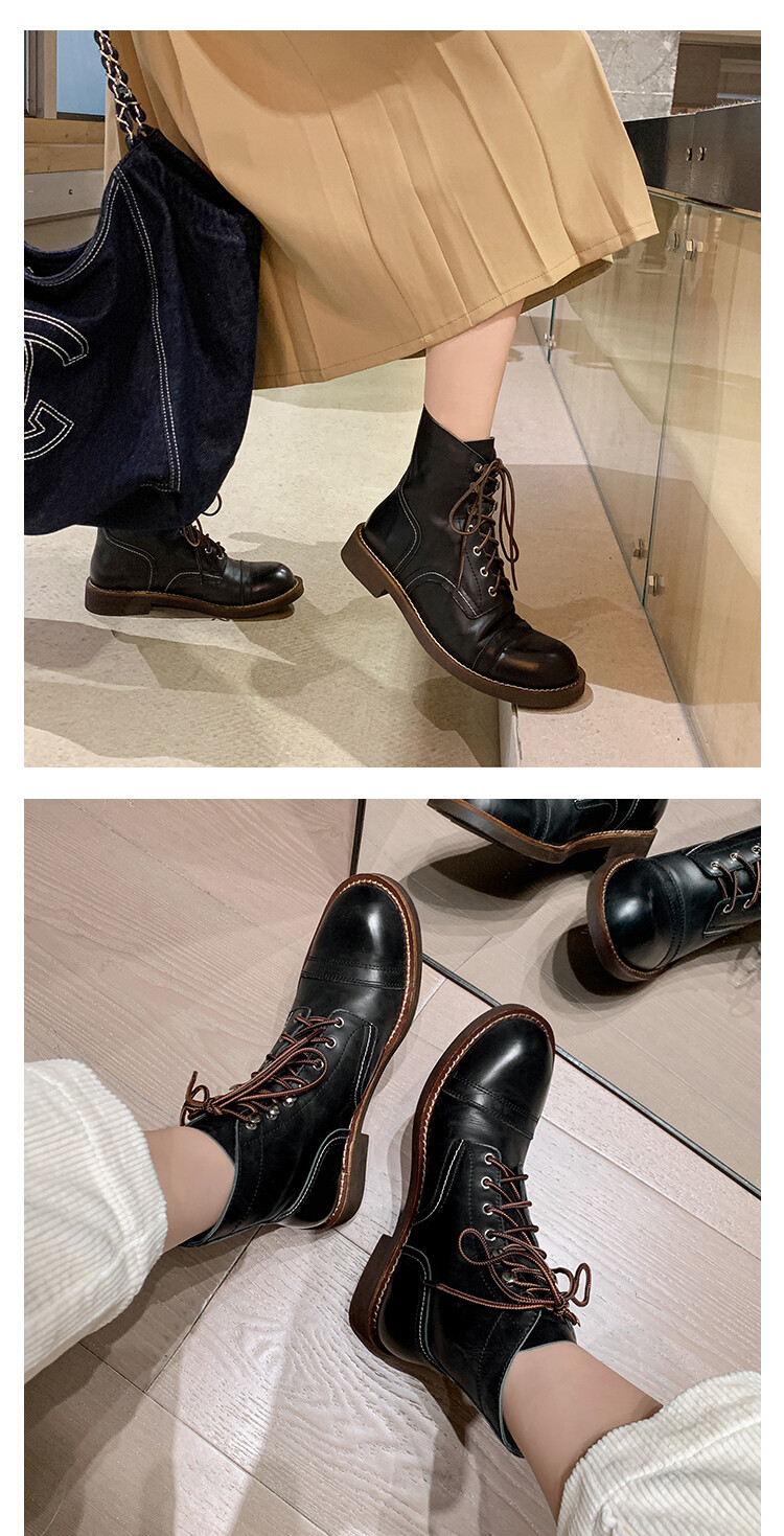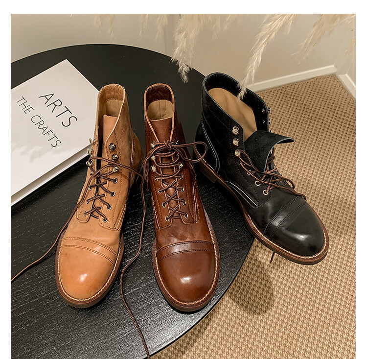야외 빈티지 마틴 부츠 영국 스타일 첼시 로우 부츠 가을과 겨울 새로운 레이스 업 하이탑 신발 여성용 가죽 신발스토어 가기