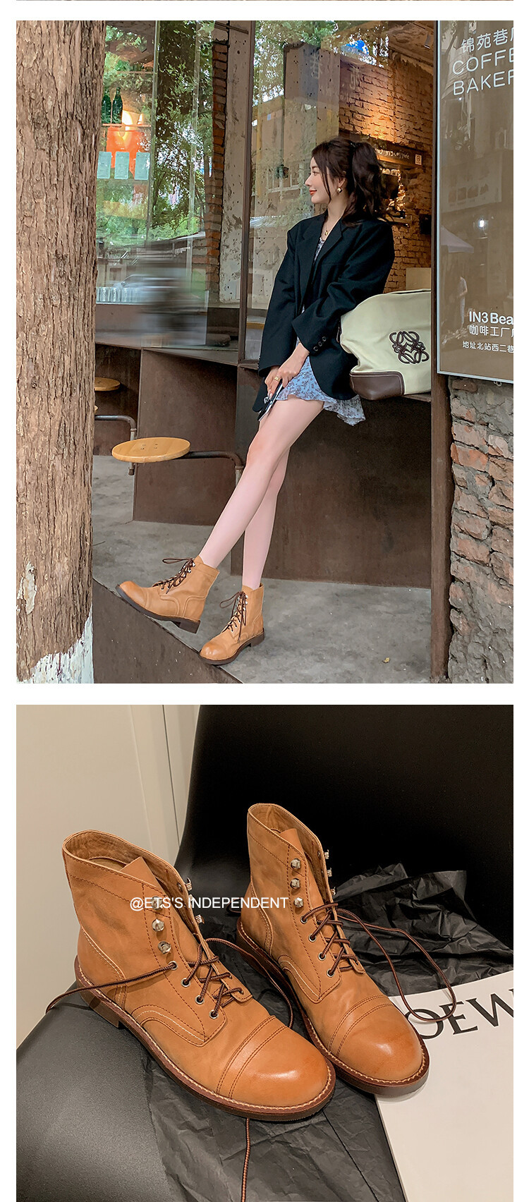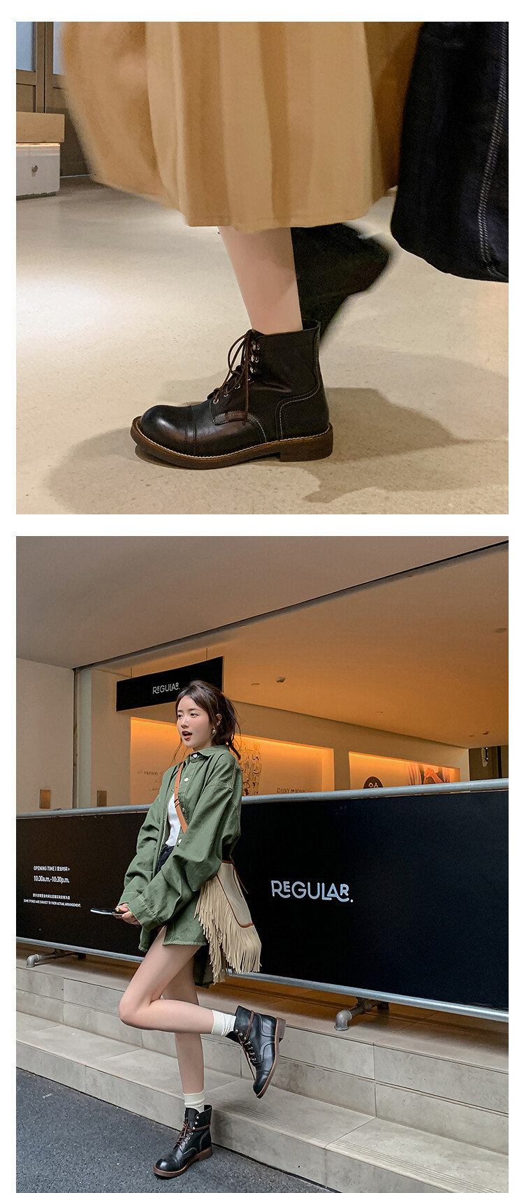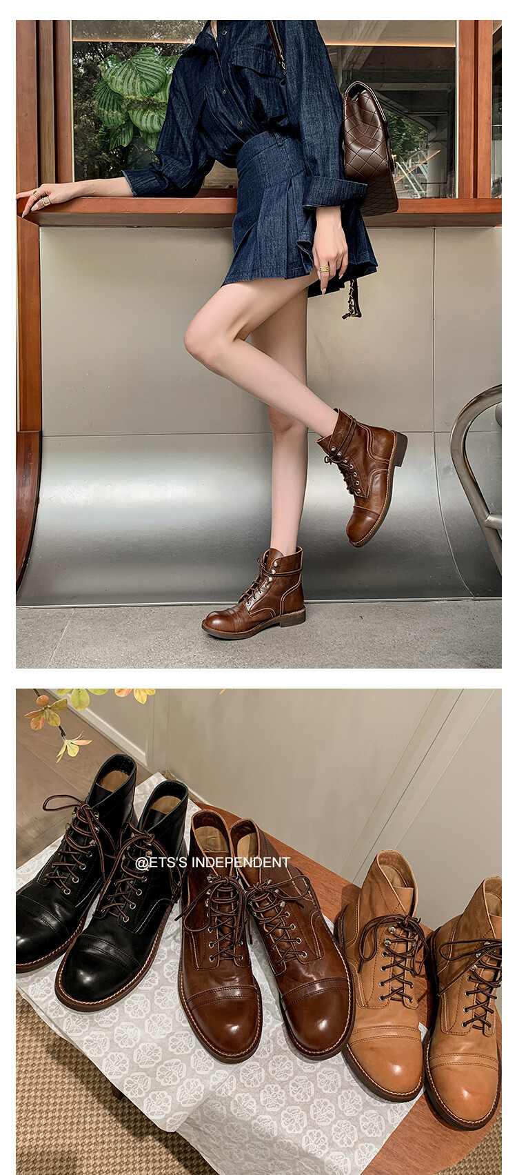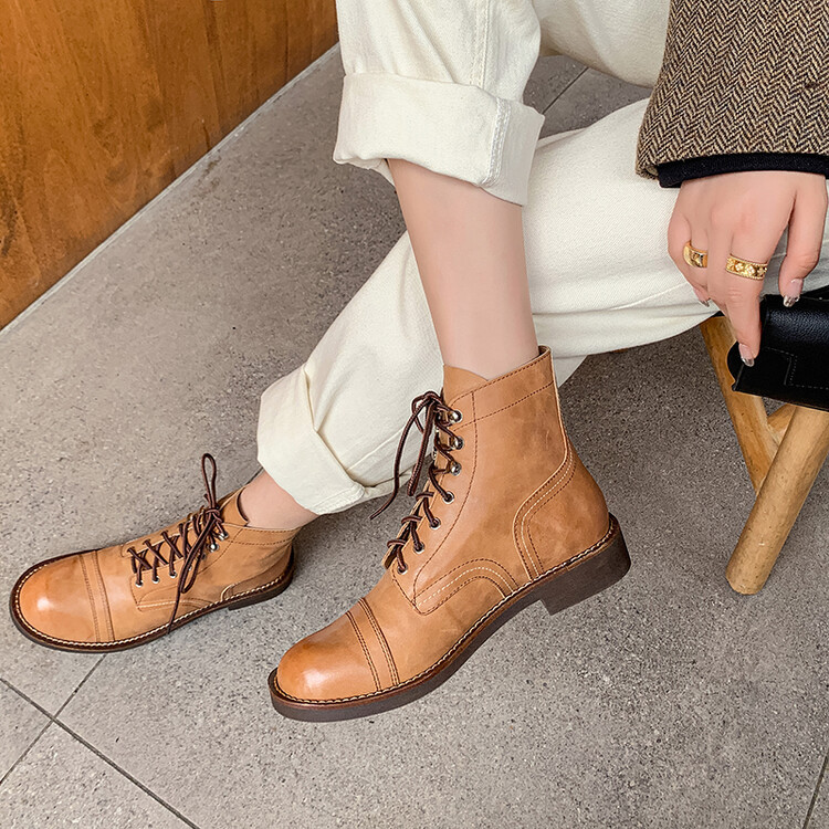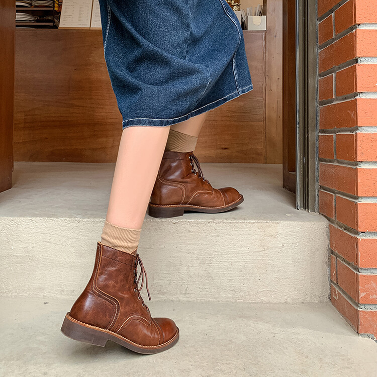 야외 빈티지 마틴 부츠 영국 스타일 첼시 로우 부츠 가을과 겨울 새로운 레이스 업 하이탑 신발 여성용 가죽 신발스토어 가기