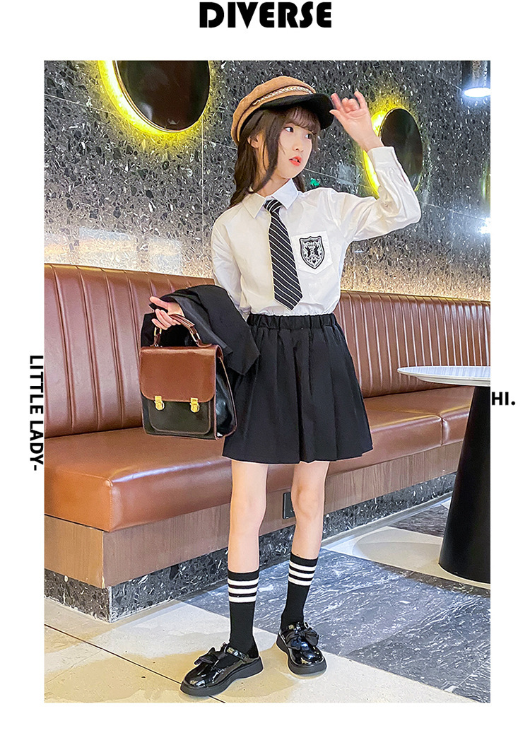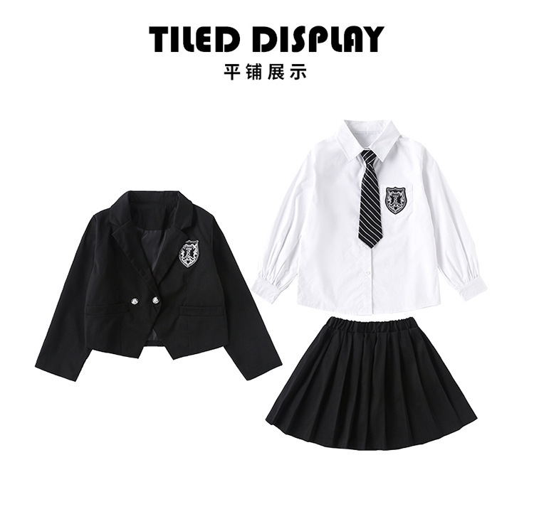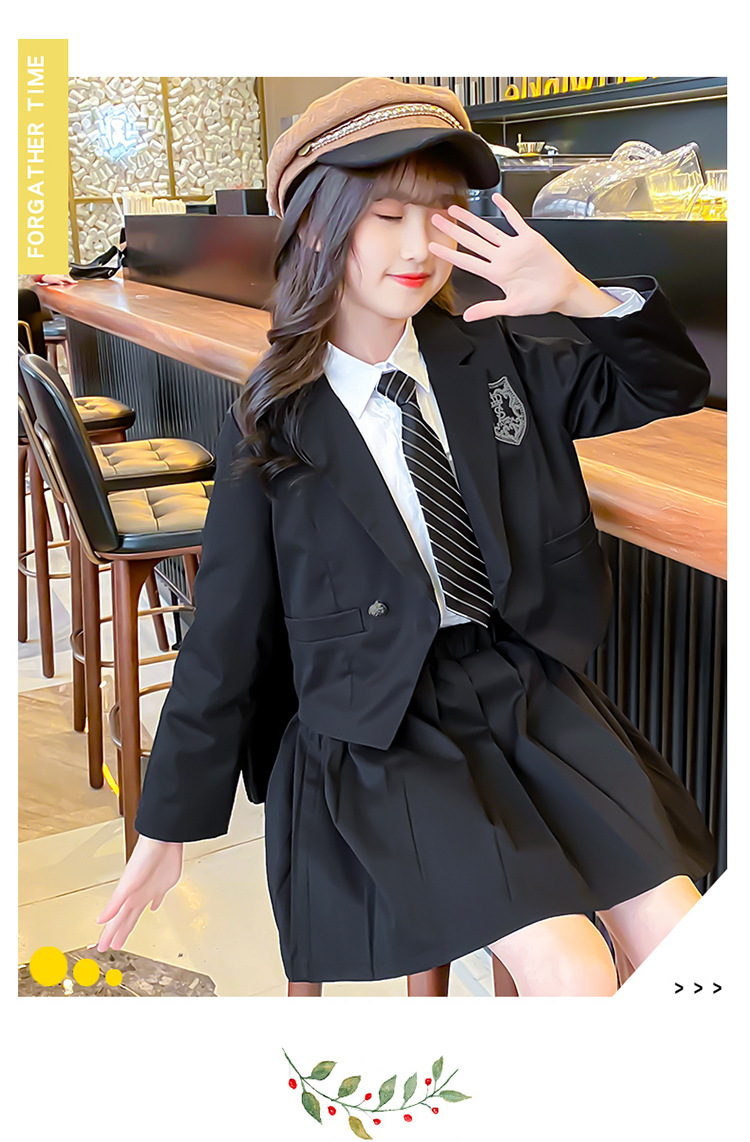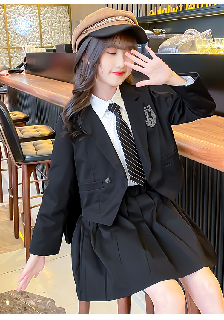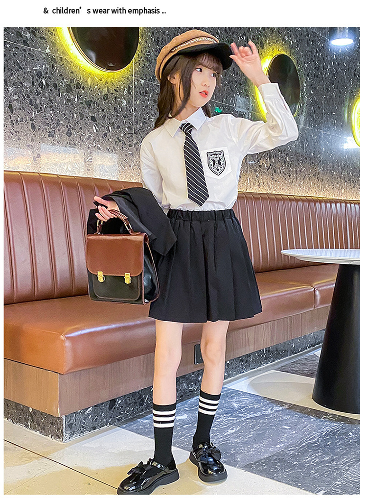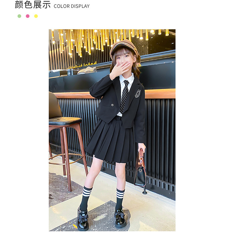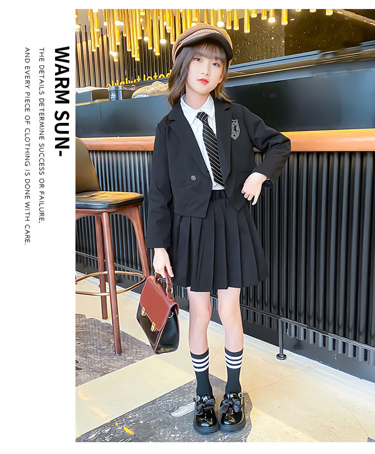 소녀의 jk 유니폼 스커트 세트 2023 새로운 스타일 소녀의 서양식 가을 옷 큰 어린이 세트 작은 세트 대학 스타일 학생스토어 가기