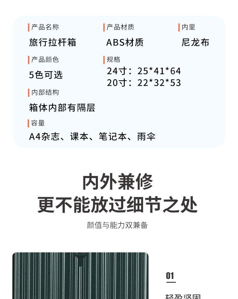 20 인치 가방 대용량 야외 여행 가방 비즈니스 스트라이프 트롤리 케이스 멀티 스타일 탑승 상자 제조 업체 도매