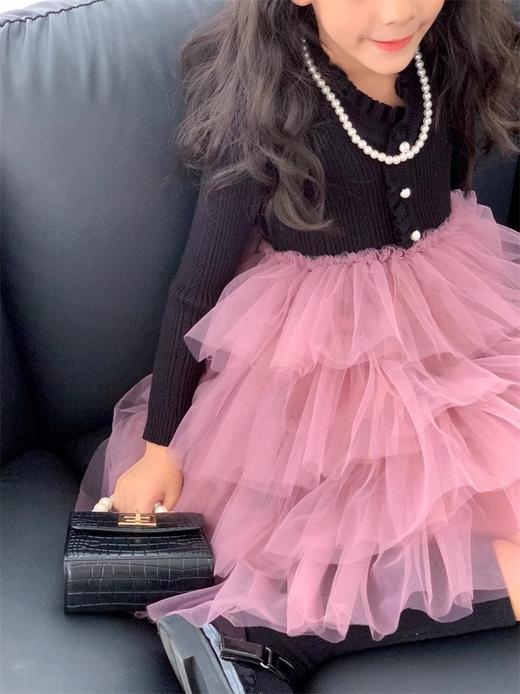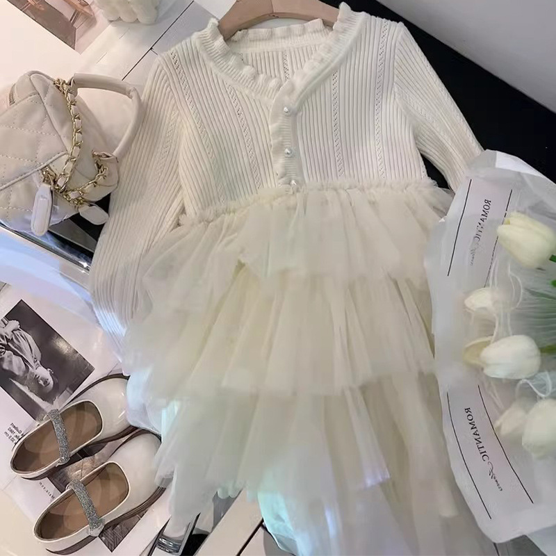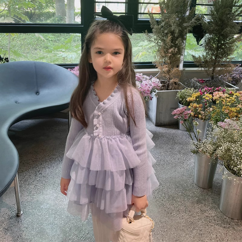 어린이 패션 프랑스 긴팔 원피스 2023 가을과 겨울 새로운 한국 스타일 우아한 모든 매치 니트 케이크 스커트 유행스토어 가기
