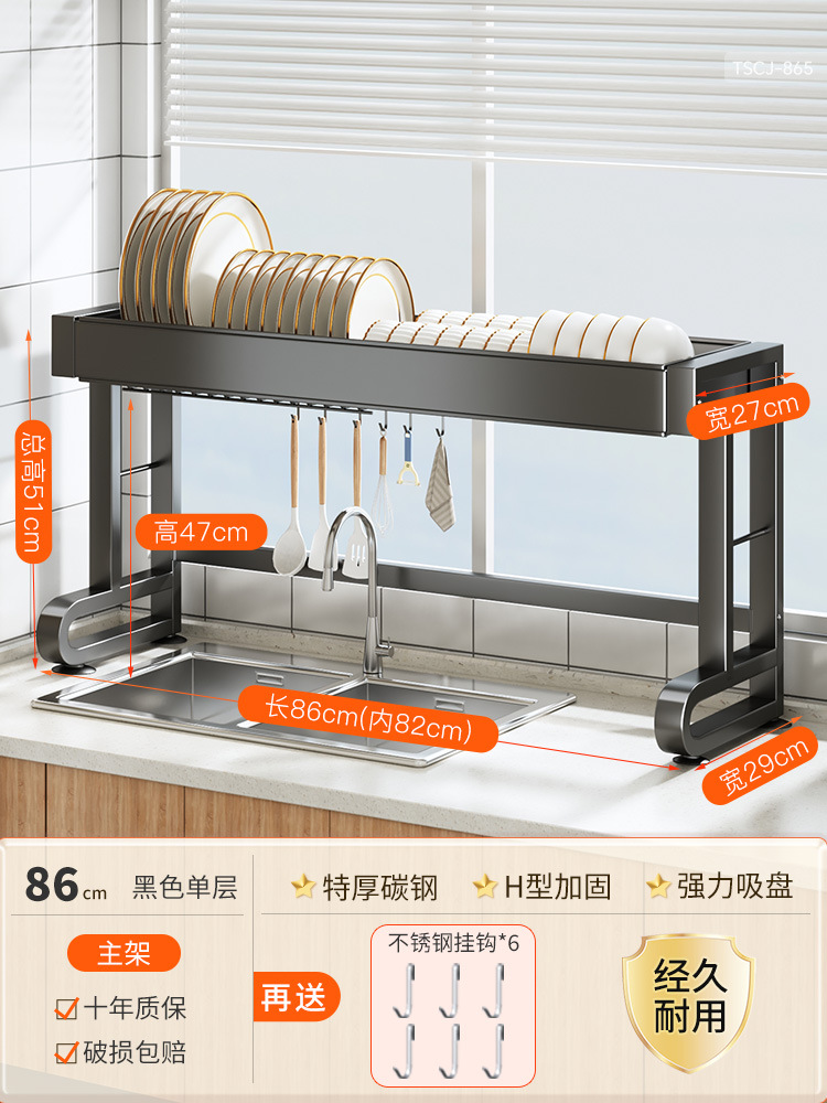 • [싱글 레이어 86cm 블랙] 디럭스 에디션 메인 랙 + 나이프 랙 + 젓가락 홀더 + 도마 랙 + 위생 용품 랙