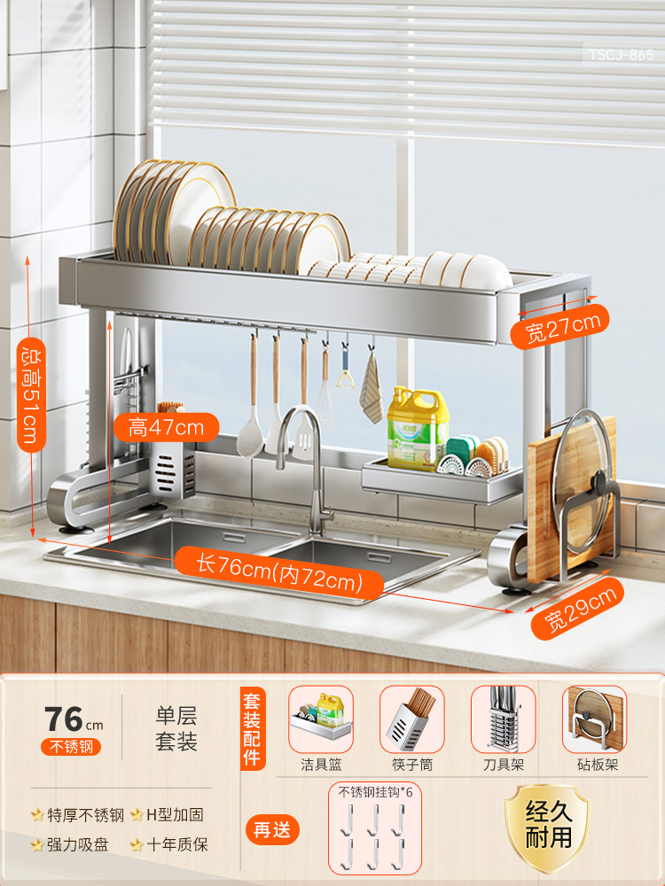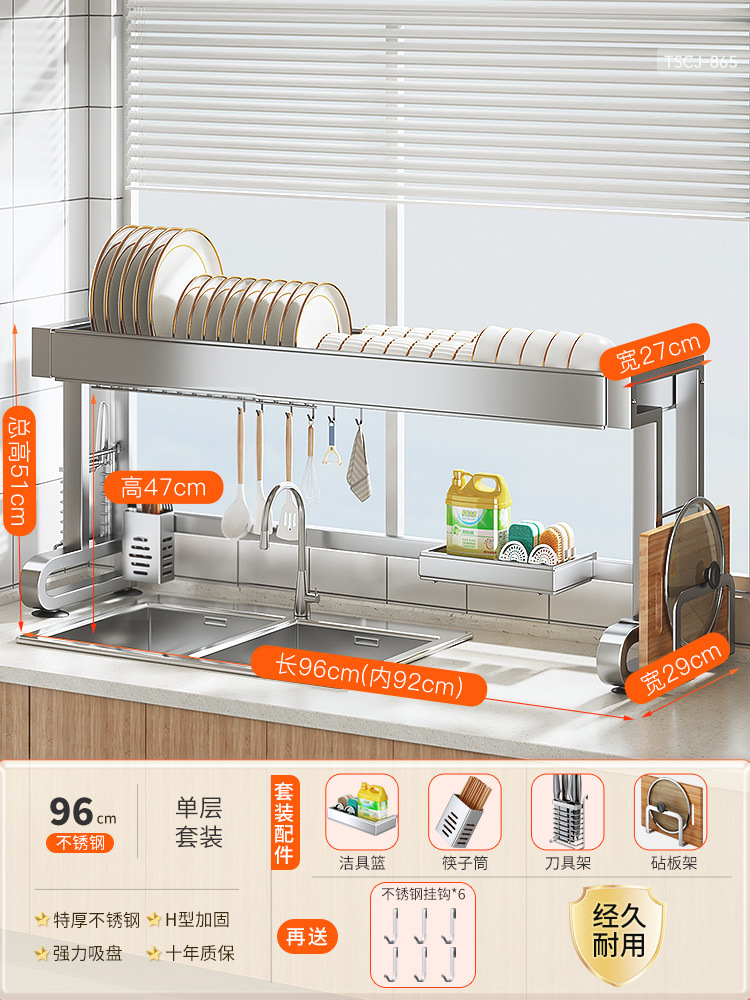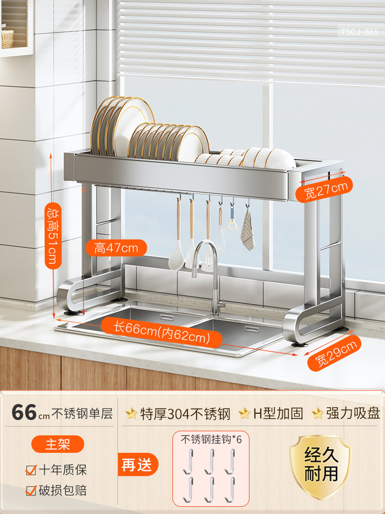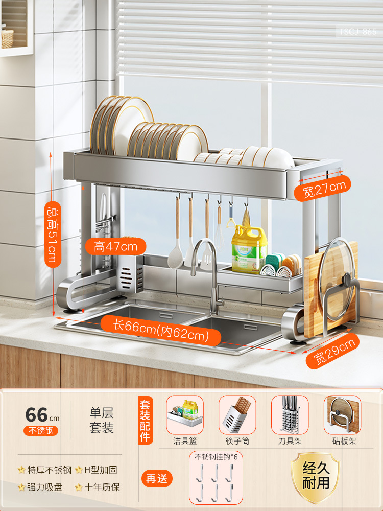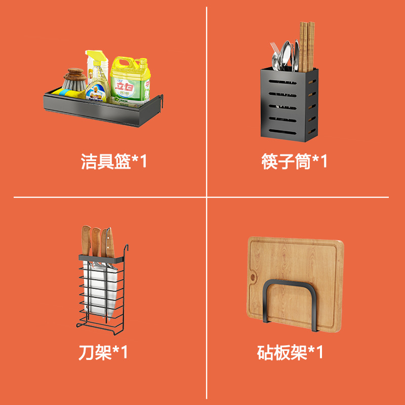 • [싱글 레이어 66cm] 304 스테인리스 럭셔리 패키지 메인 프레임 + 나이프 홀더 + 젓가락 홀더 + 도마 홀더 + 위생 용품 홀더