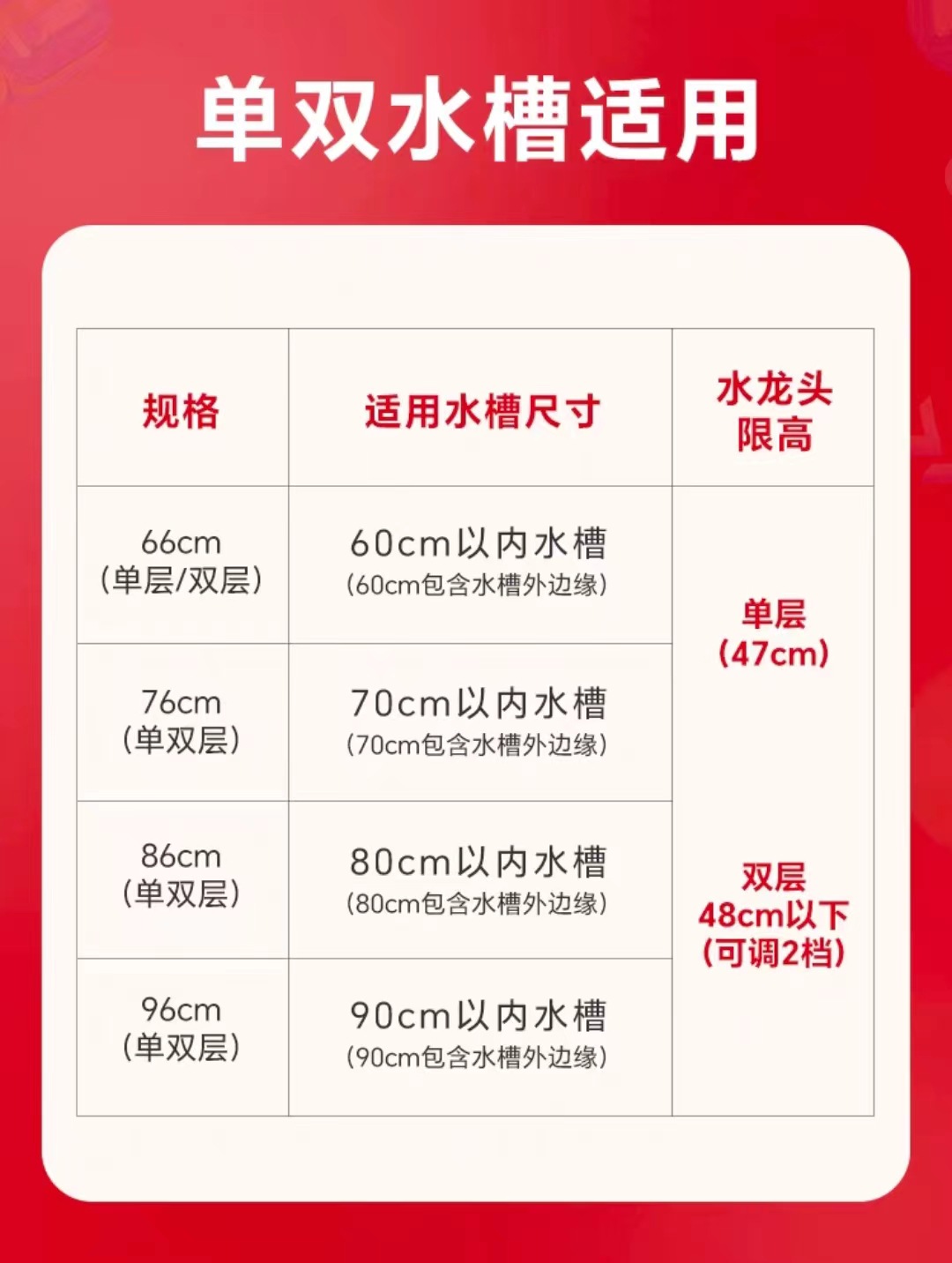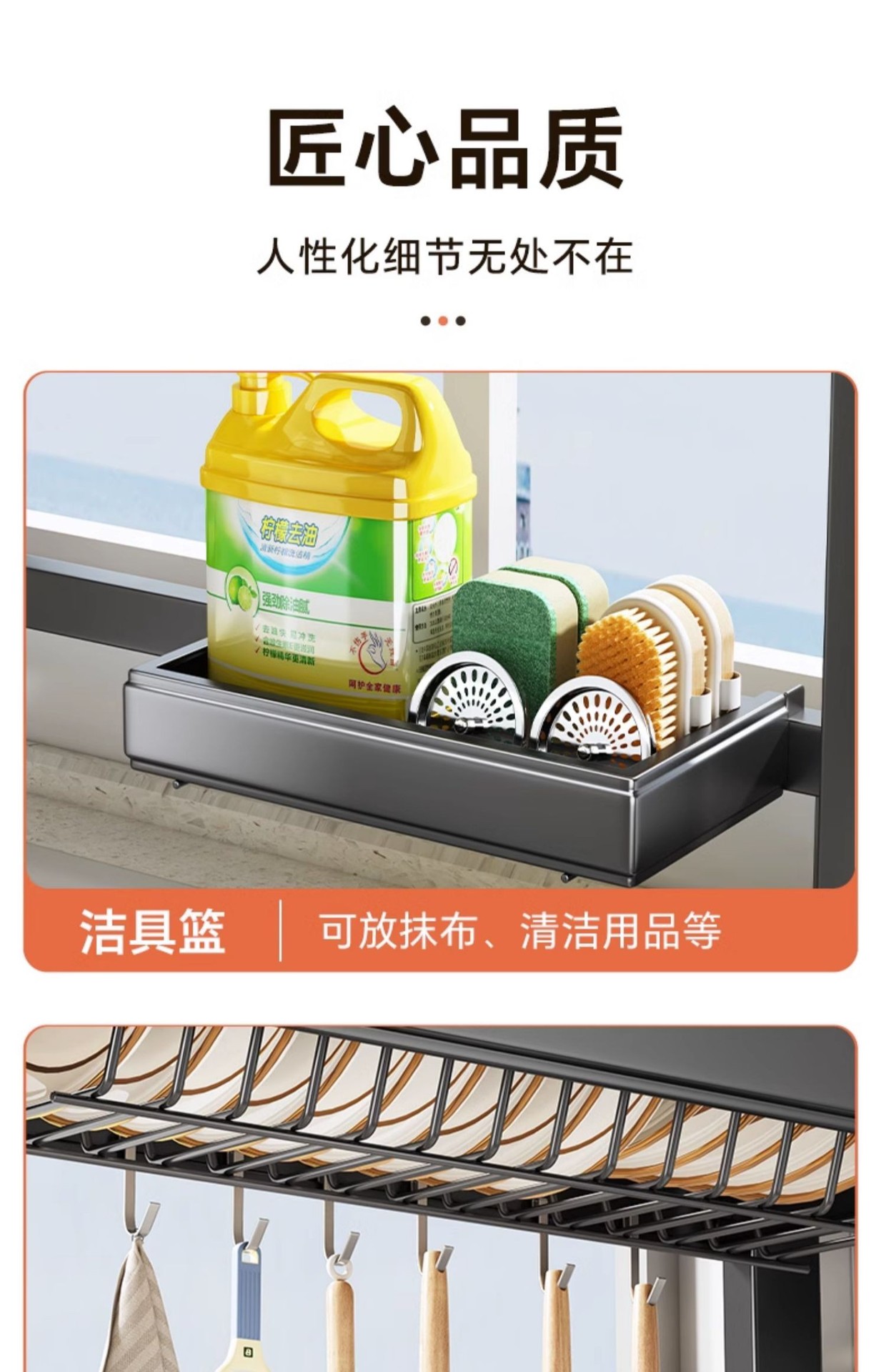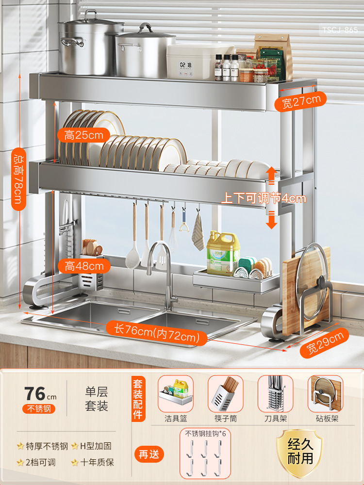 • [싱글 레이어 66cm] 304 스테인리스 럭셔리 패키지 메인 프레임 + 나이프 홀더 + 젓가락 홀더 + 도마 홀더 + 위생 용품 홀더