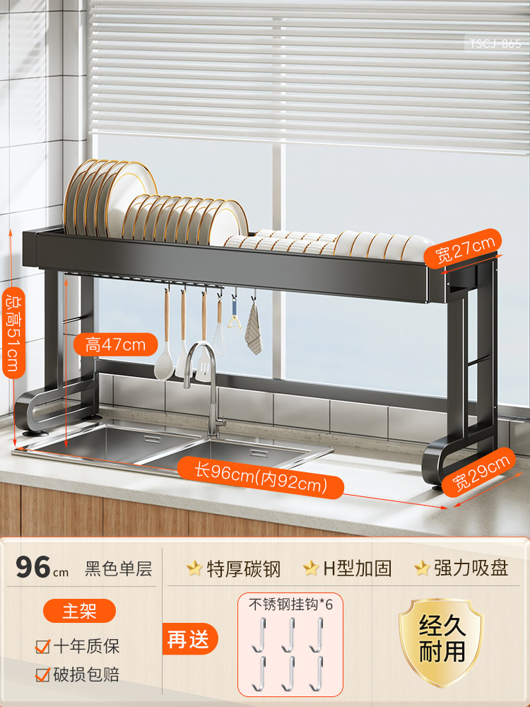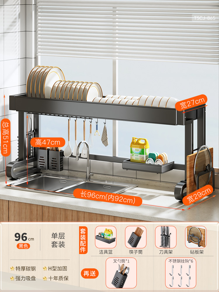 • [싱글 레이어 96cm 블랙] 디럭스 에디션 메인 랙 + 나이프 랙 + 젓가락 홀더 + 도마 랙 + 위생 용품 랙