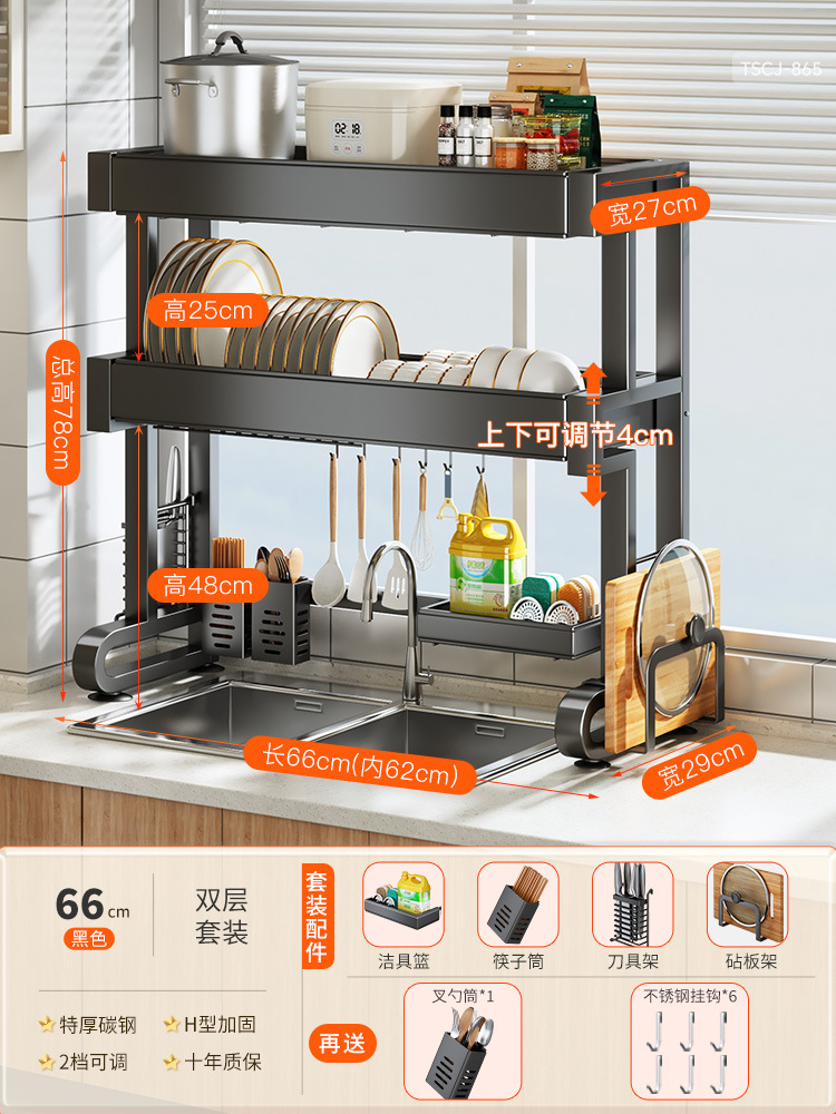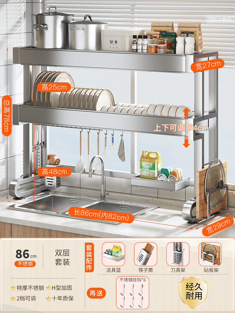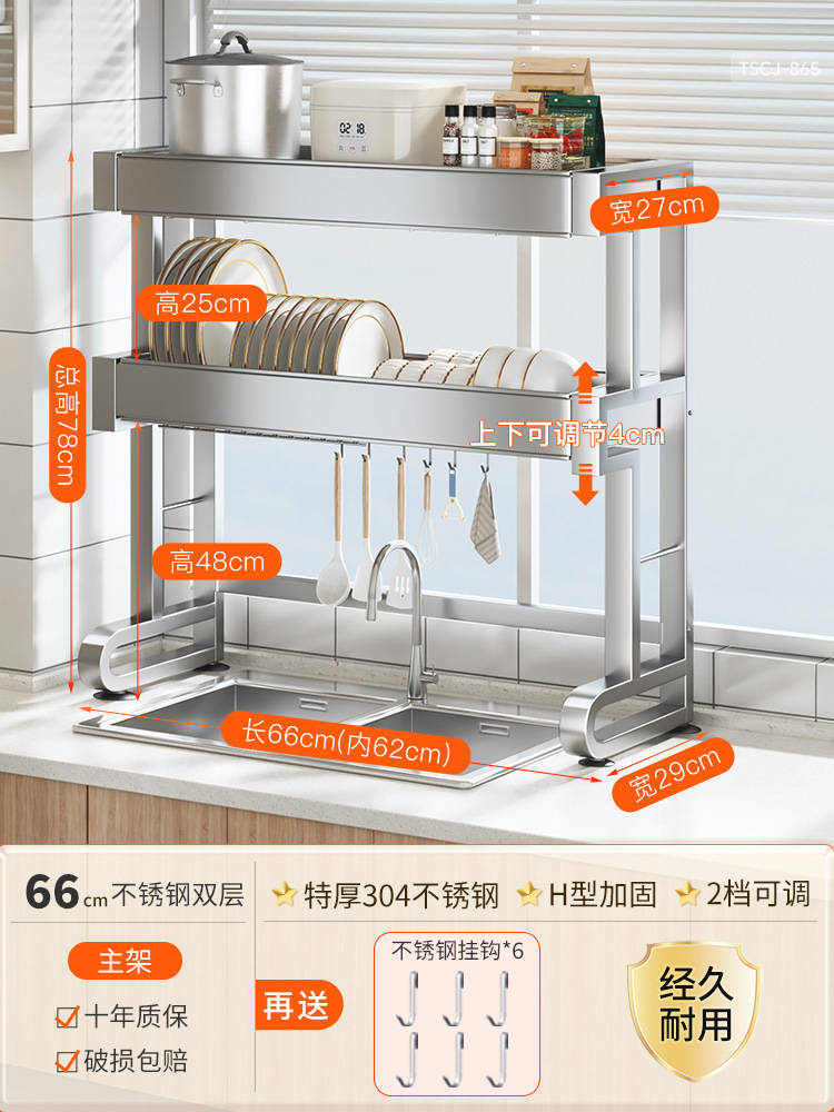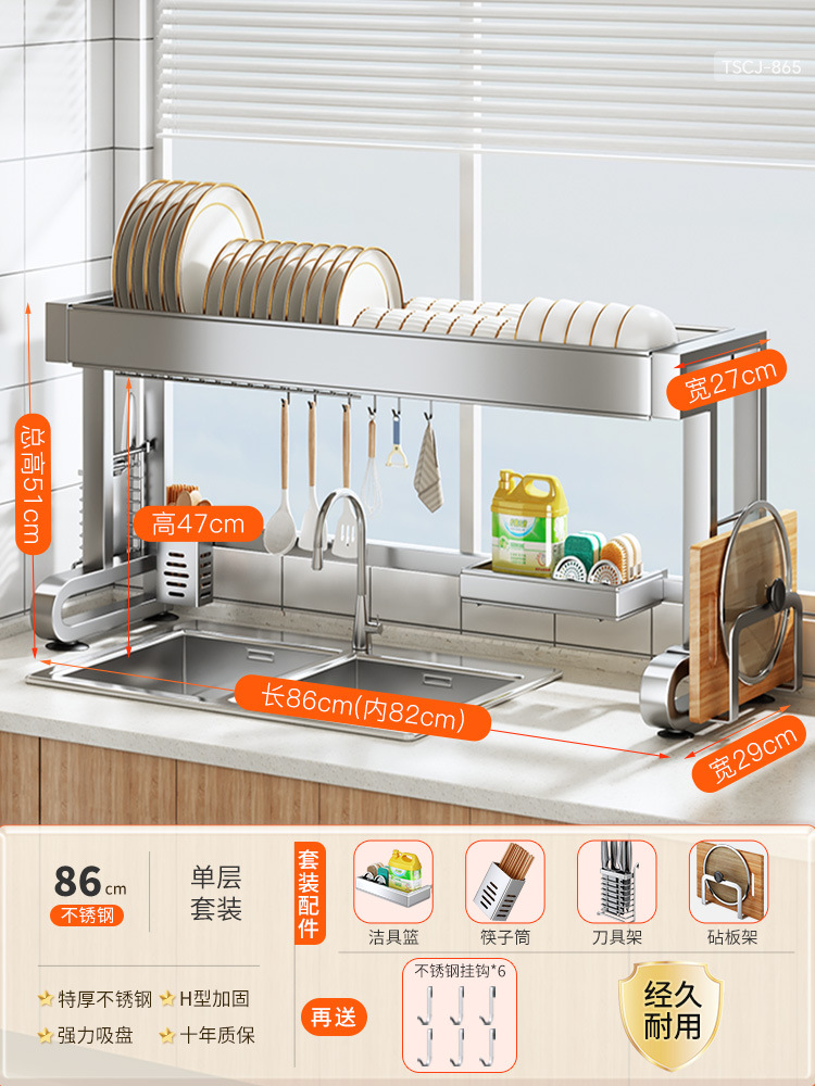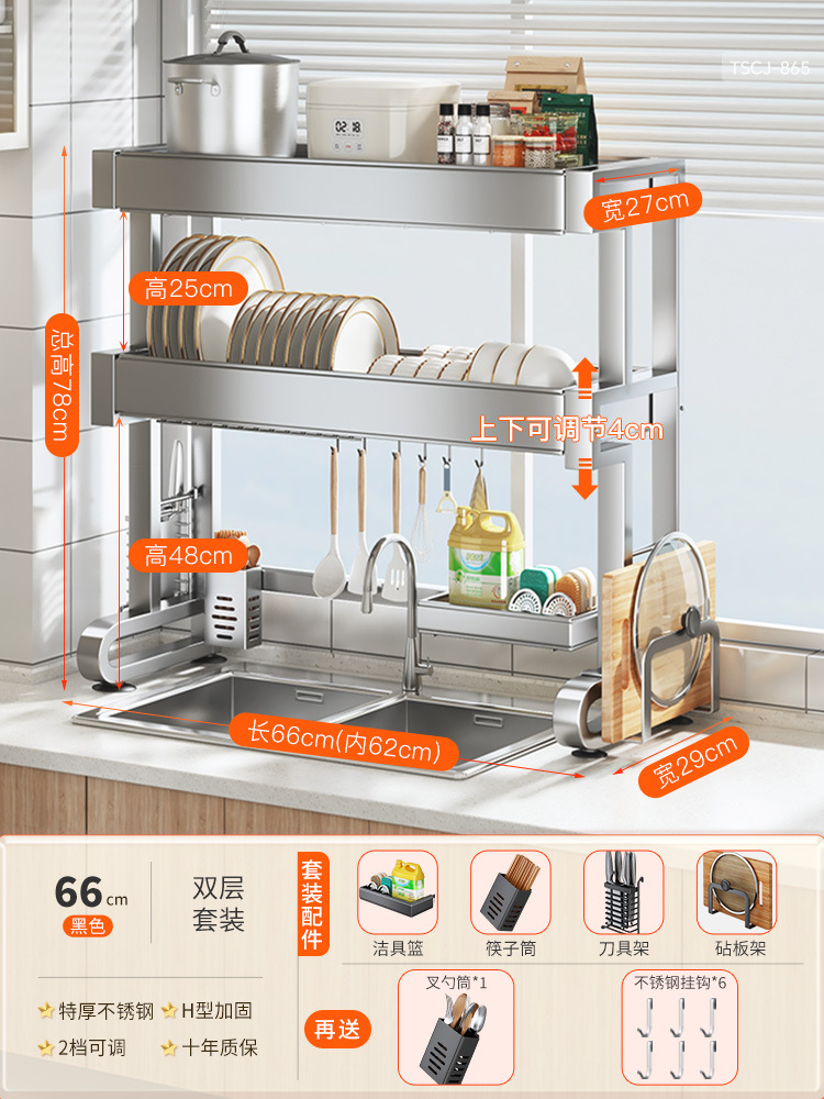 • [더블 레이어 66cm] 304 스테인리스 럭셔리 패키지 메인 프레임 + 나이프 홀더 + 젓가락 홀더 + 도마 홀더 + 위생 용품 홀더