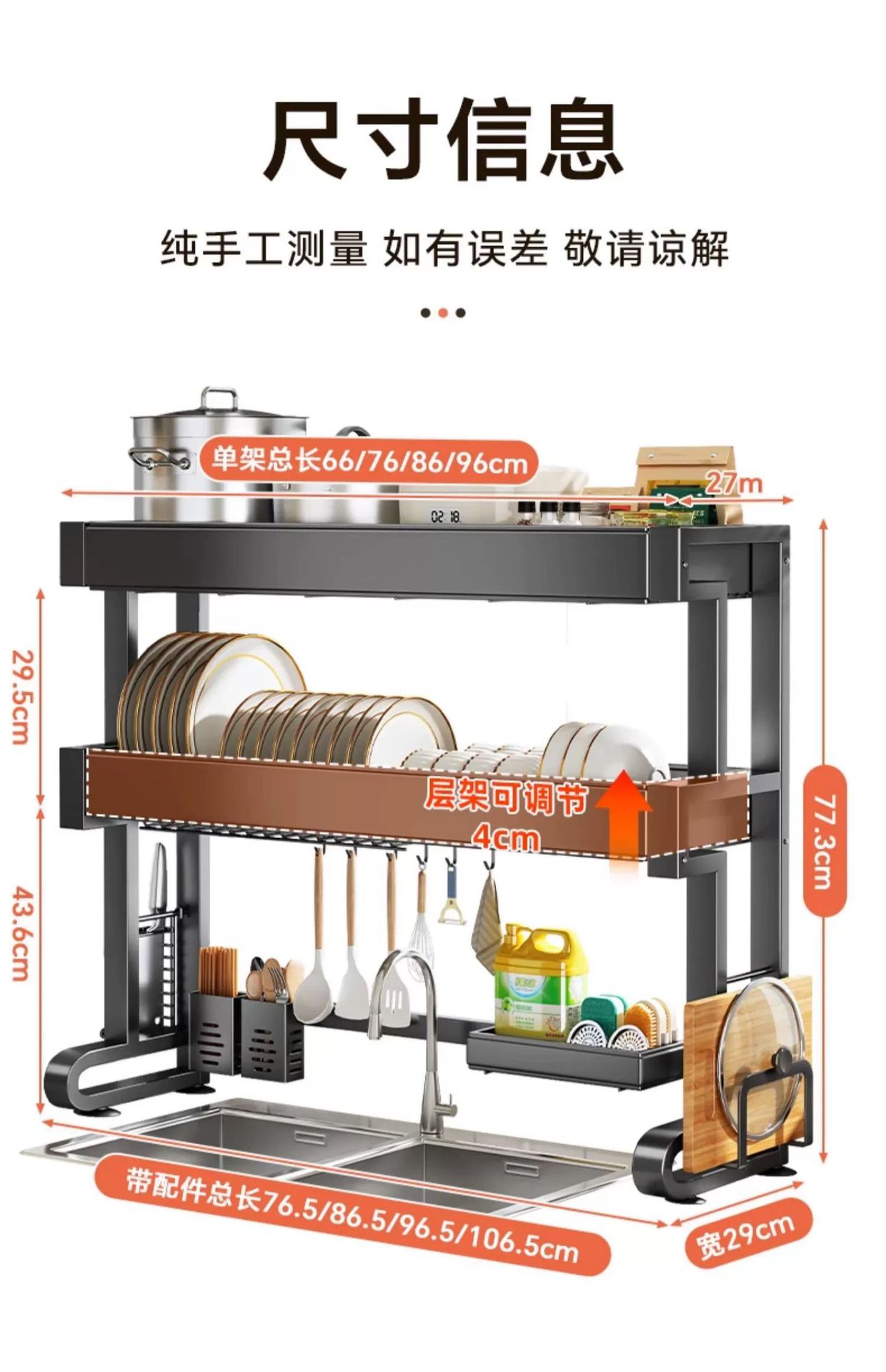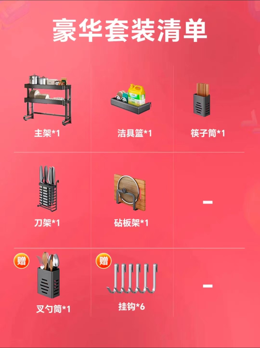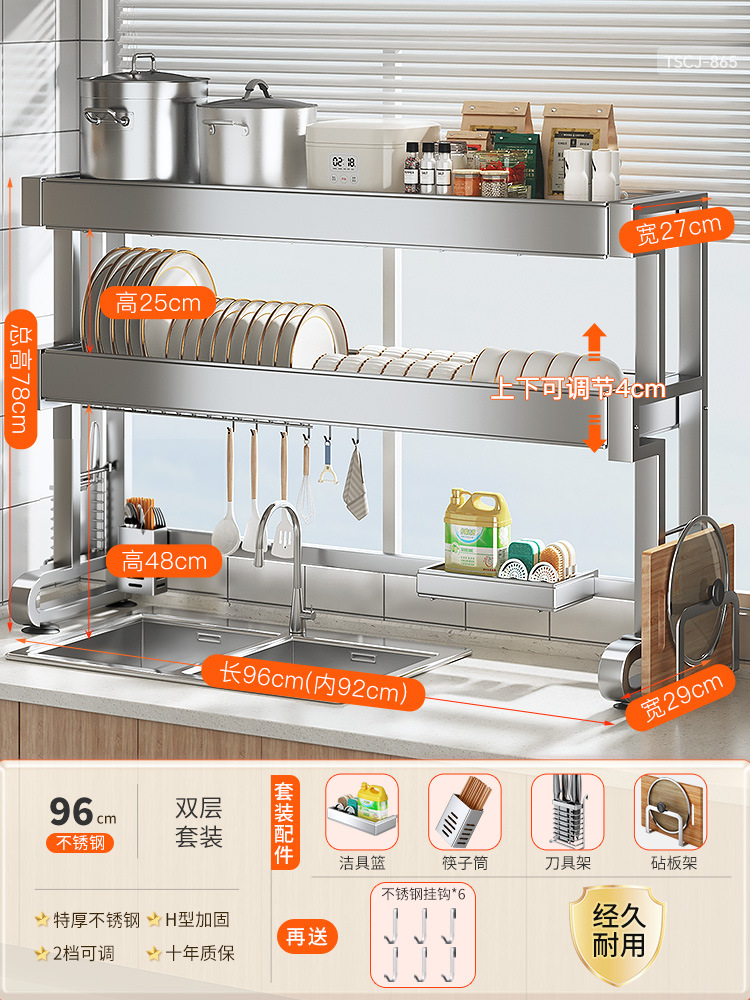 • [더블 레이어 66cm] 304 스테인리스 럭셔리 패키지 메인 프레임 + 나이프 홀더 + 젓가락 홀더 + 도마 홀더 + 위생 용품 홀더