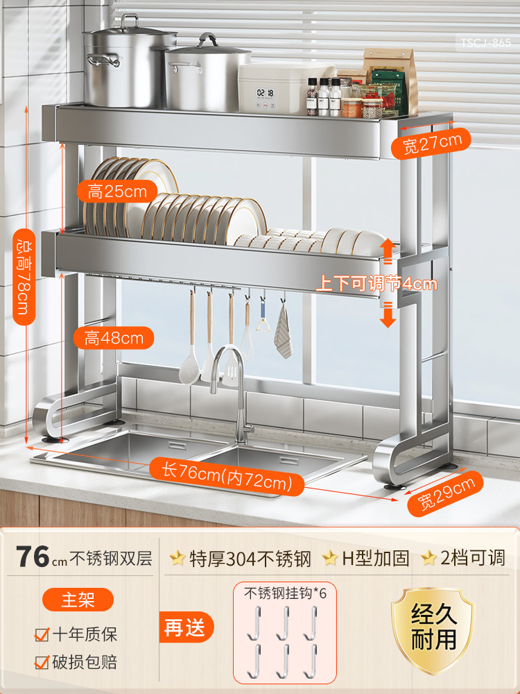 • [더블 레이어 76cm] 304 스테인리스 스틸 메인 프레임 + 6 후크