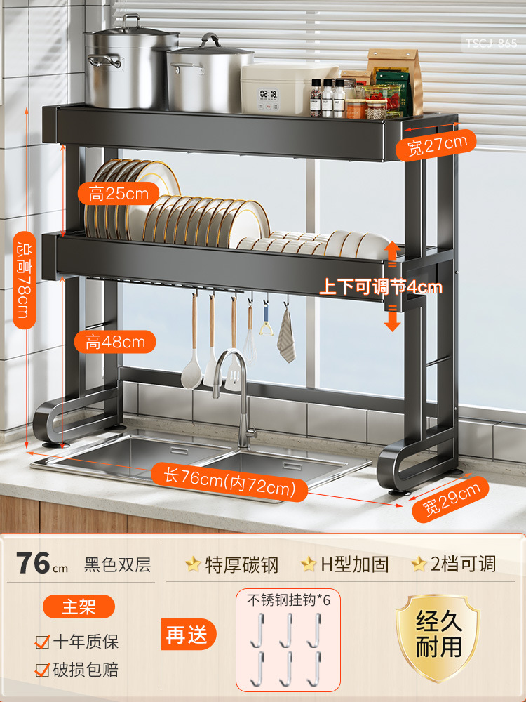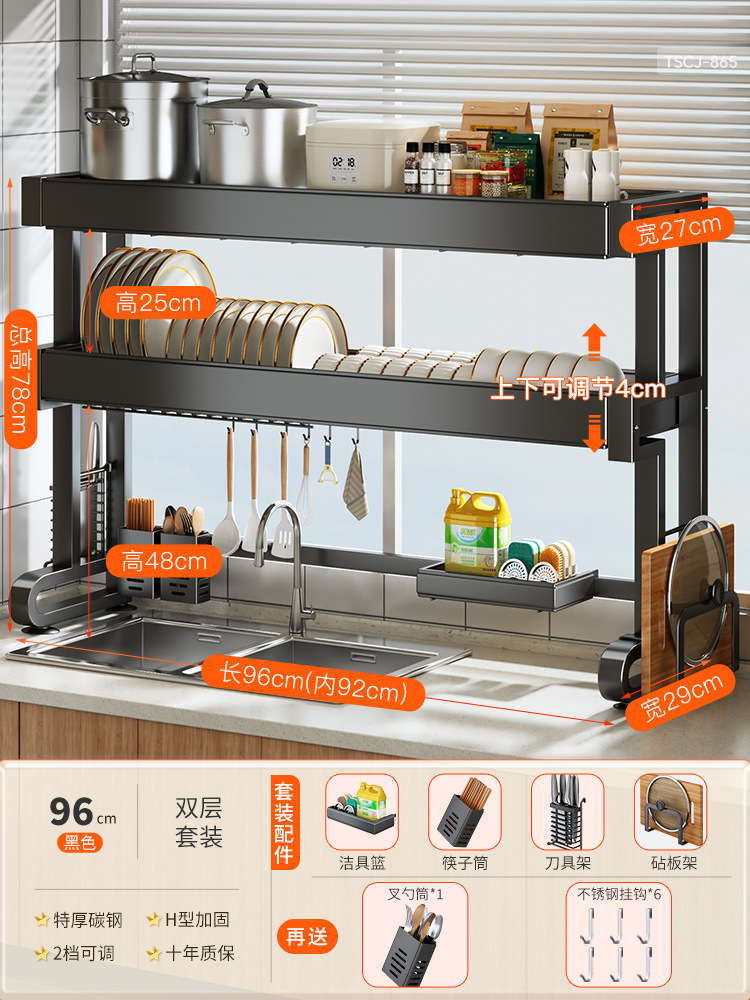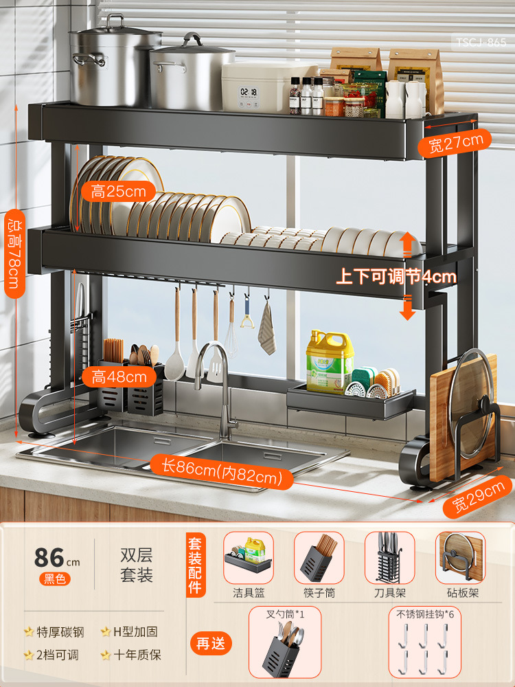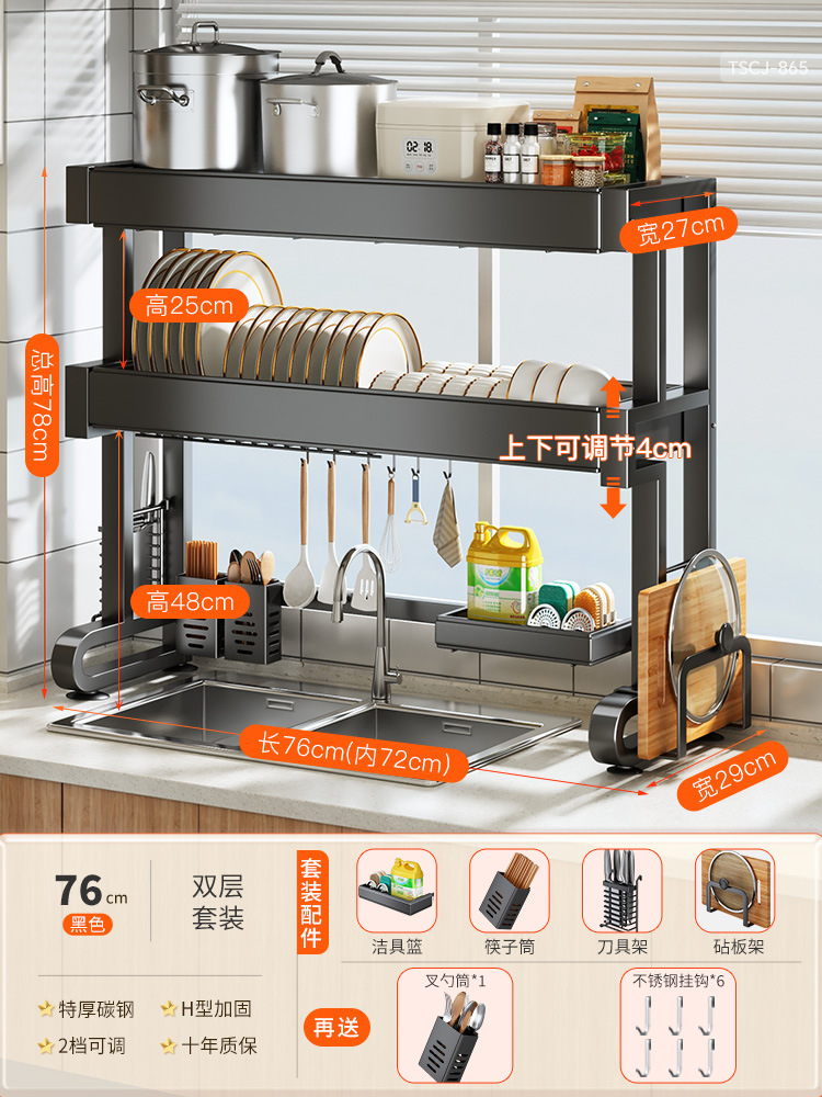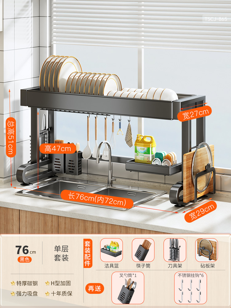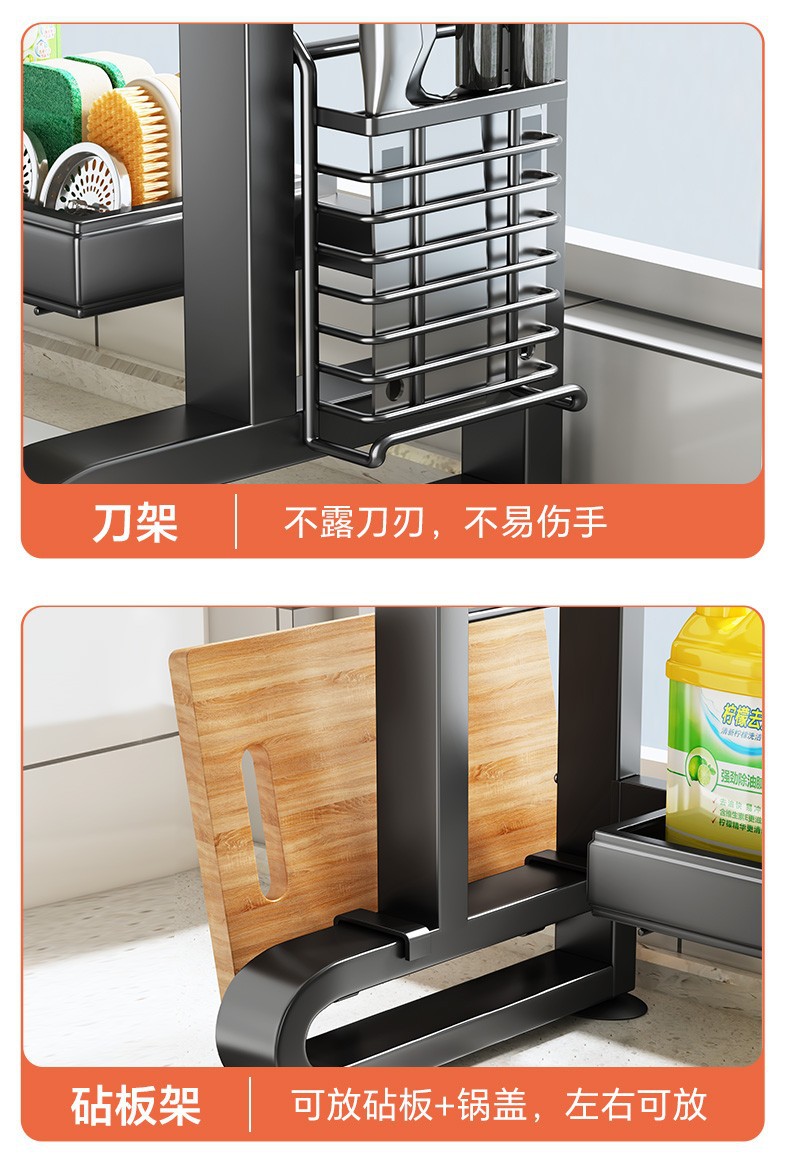 • [더블 레이어 76cm 블랙] 디럭스 에디션 메인 랙 + 나이프 랙 + 젓가락 홀더 + 도마 랙 + 위생 용품 랙