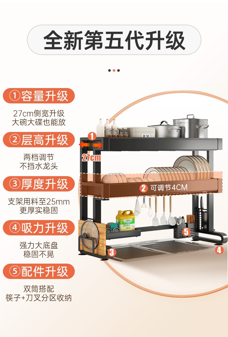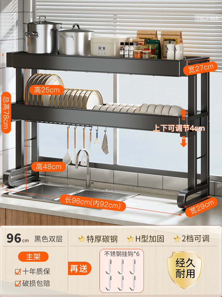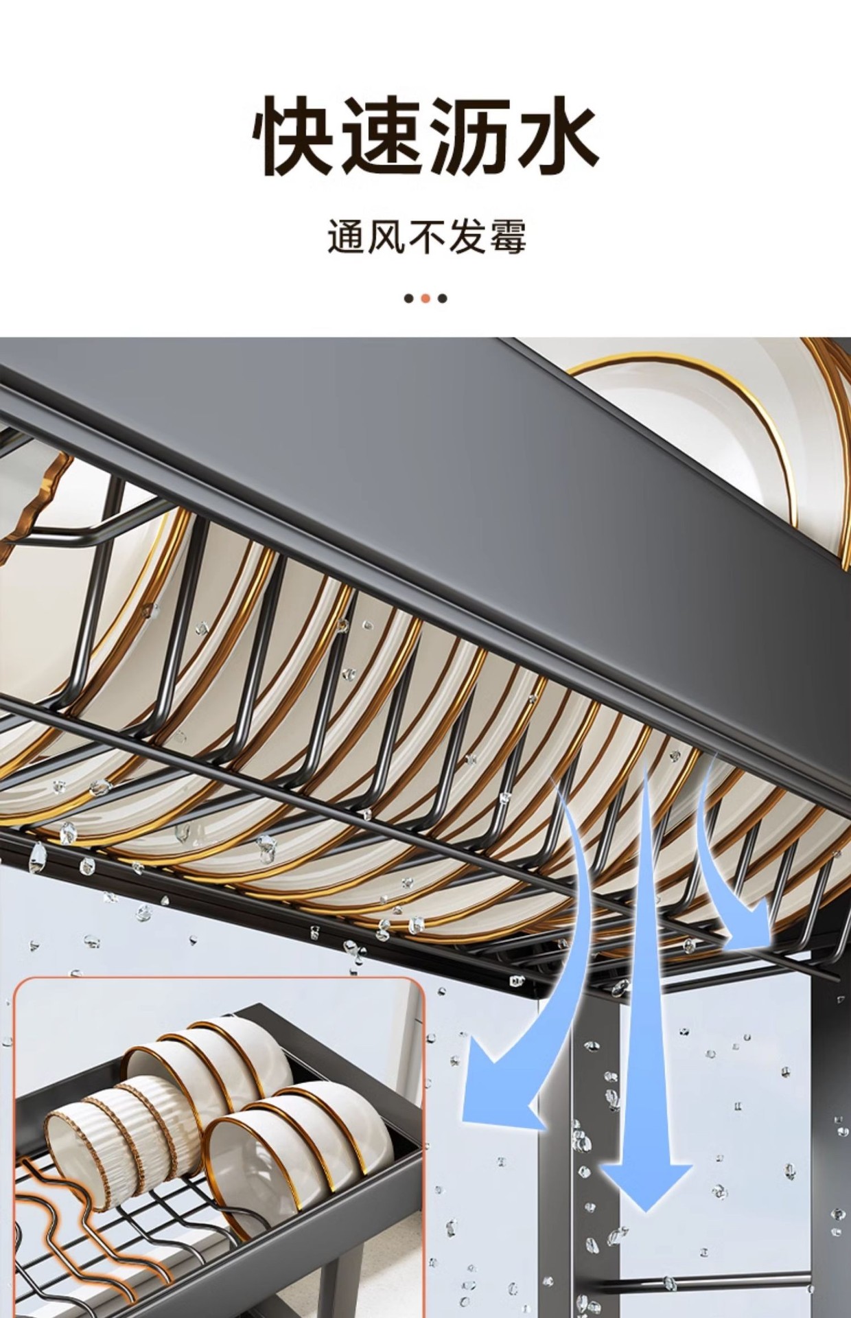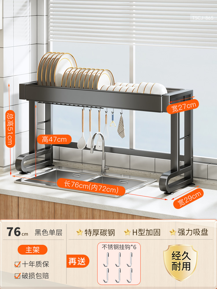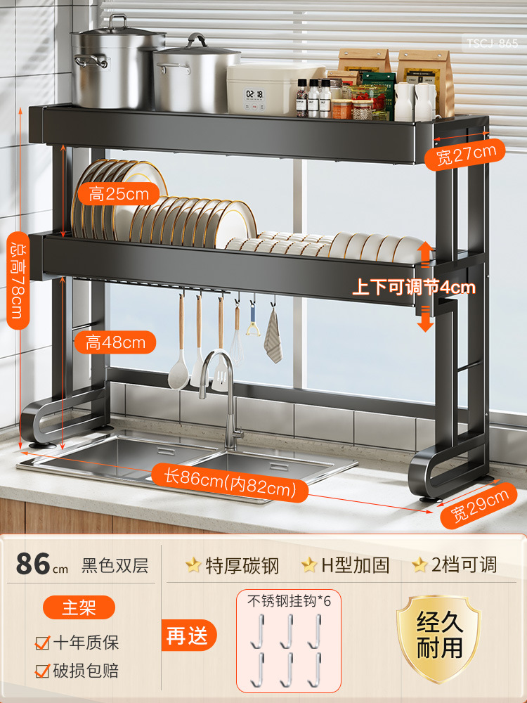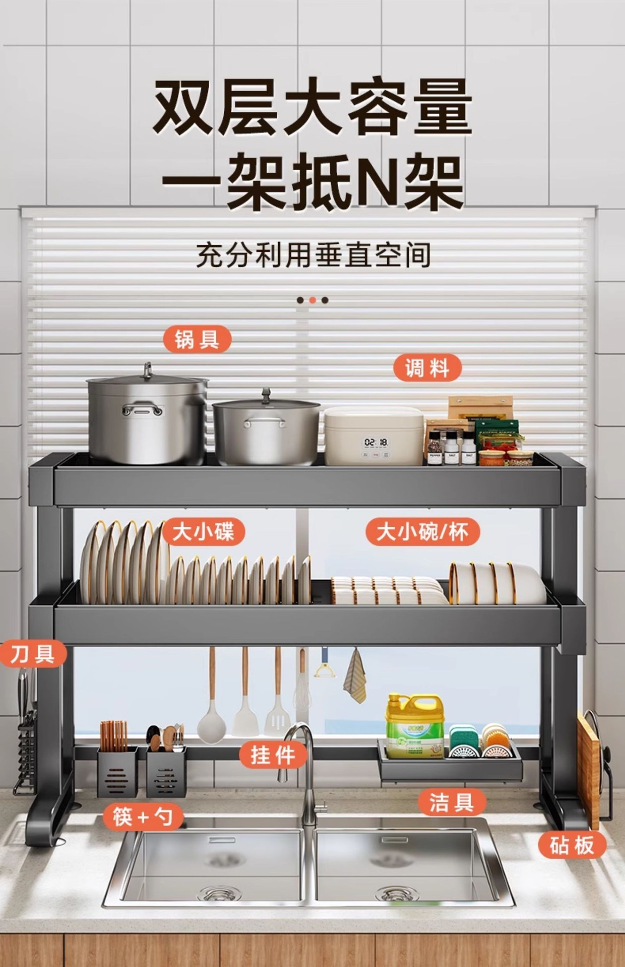 • [더블 레이어 76cm 블랙] 디럭스 에디션 메인 랙 + 나이프 랙 + 젓가락 홀더 + 도마 랙 + 위생 용품 랙
