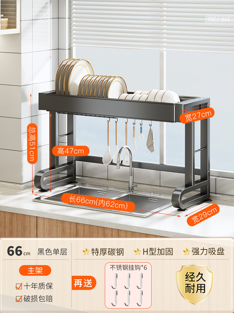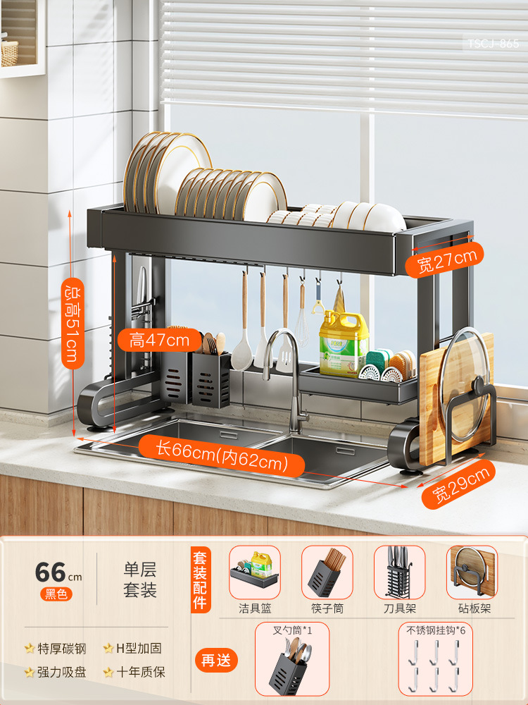 • [싱글 레이어 66cm 블랙] 디럭스 에디션 메인 랙 + 나이프 랙 + 젓가락 홀더 + 도마 랙 + 위생 용품 랙