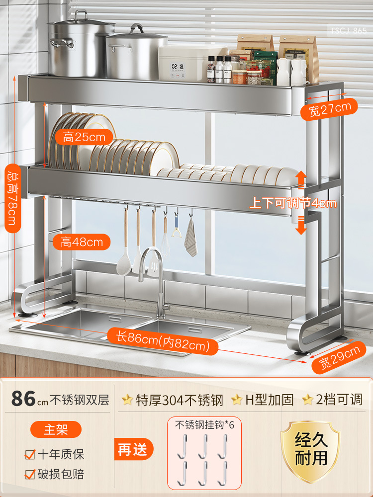 • [더블 레이어 86cm] 304 스테인리스 스틸 메인 프레임 + 6 후크