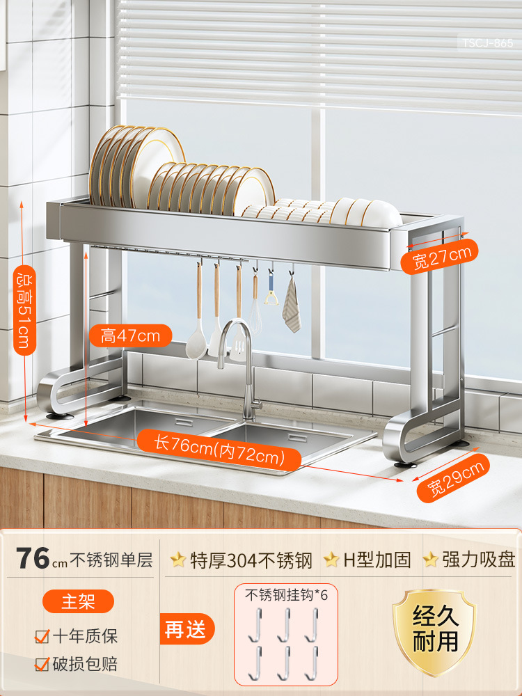 • [싱글 레이어 76cm] 304 스테인리스 스틸 메인 프레임 + 6 후크