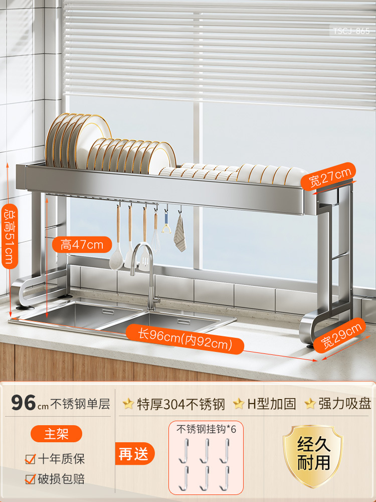 • [싱글 레이어 96cm] 304 스테인리스 스틸 메인 프레임 + 6 후크