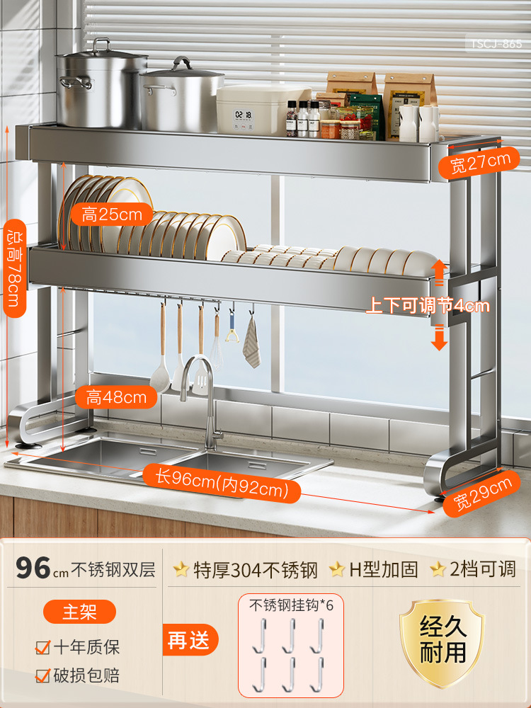 • [더블 레이어 96cm] 304 스테인리스 스틸 메인 프레임 + 6 후크