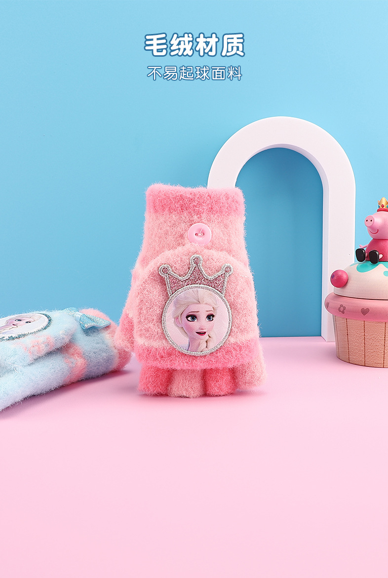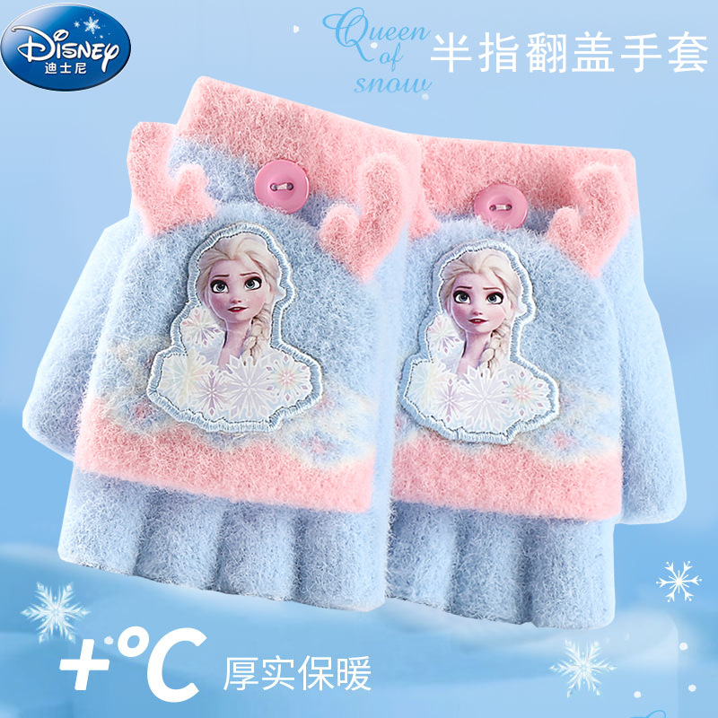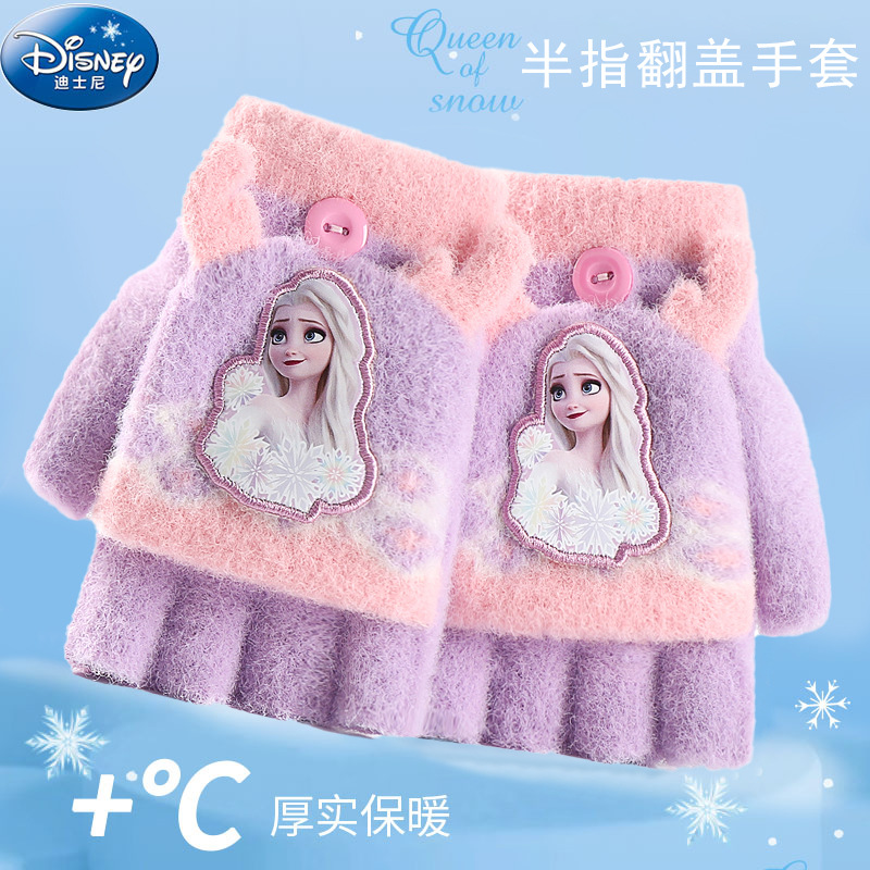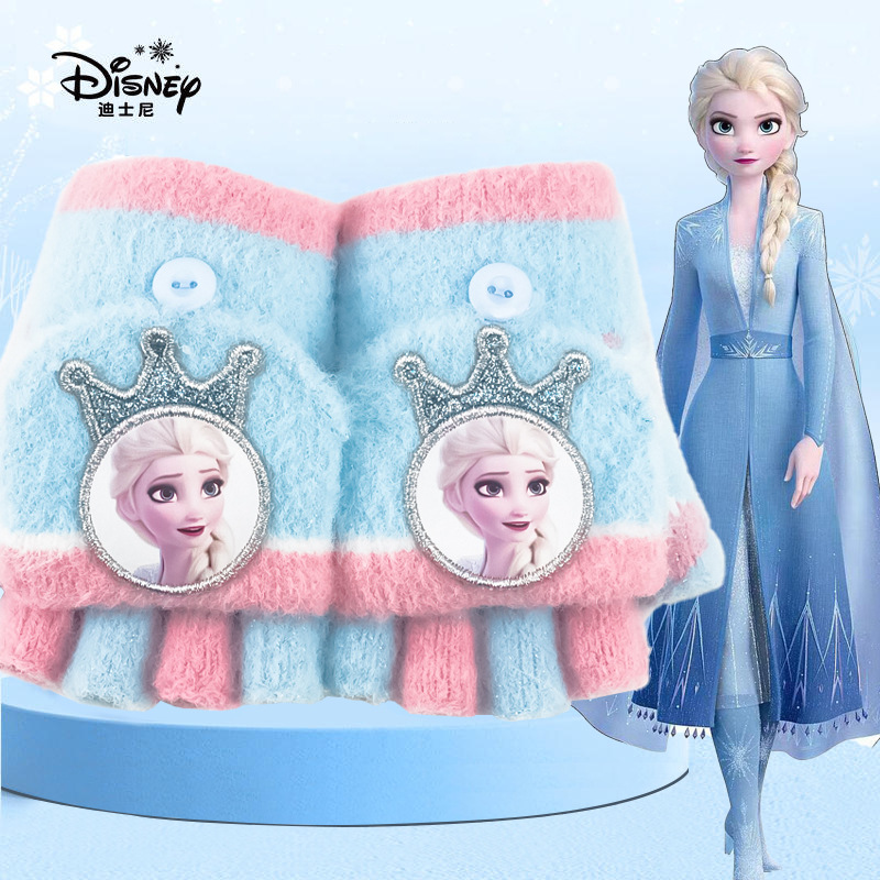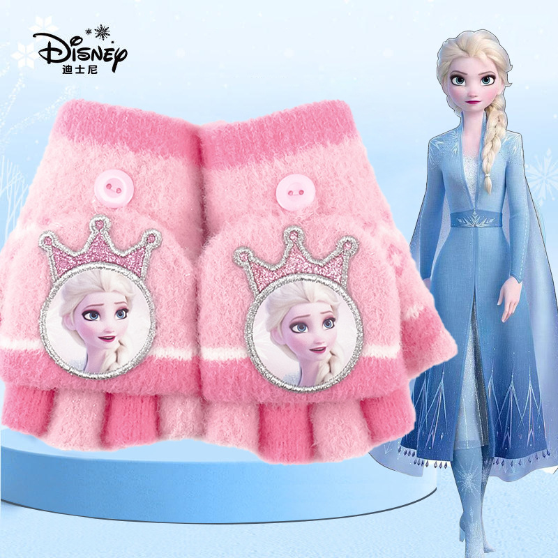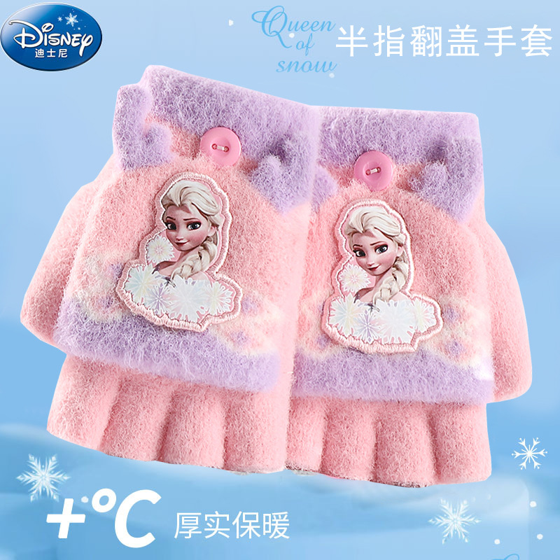 정품 겨울왕국 엘사 공주 반손가락 플립업 장갑, 중소형 어린이용, 겨울용, 매우 두꺼운, 새로운 스타일, 3-10세
