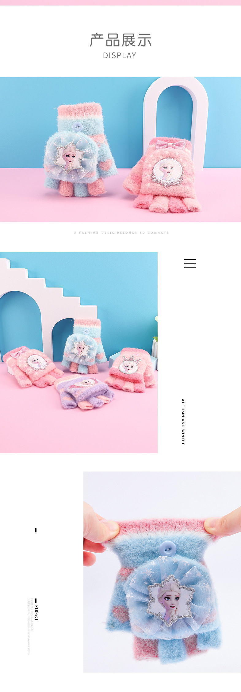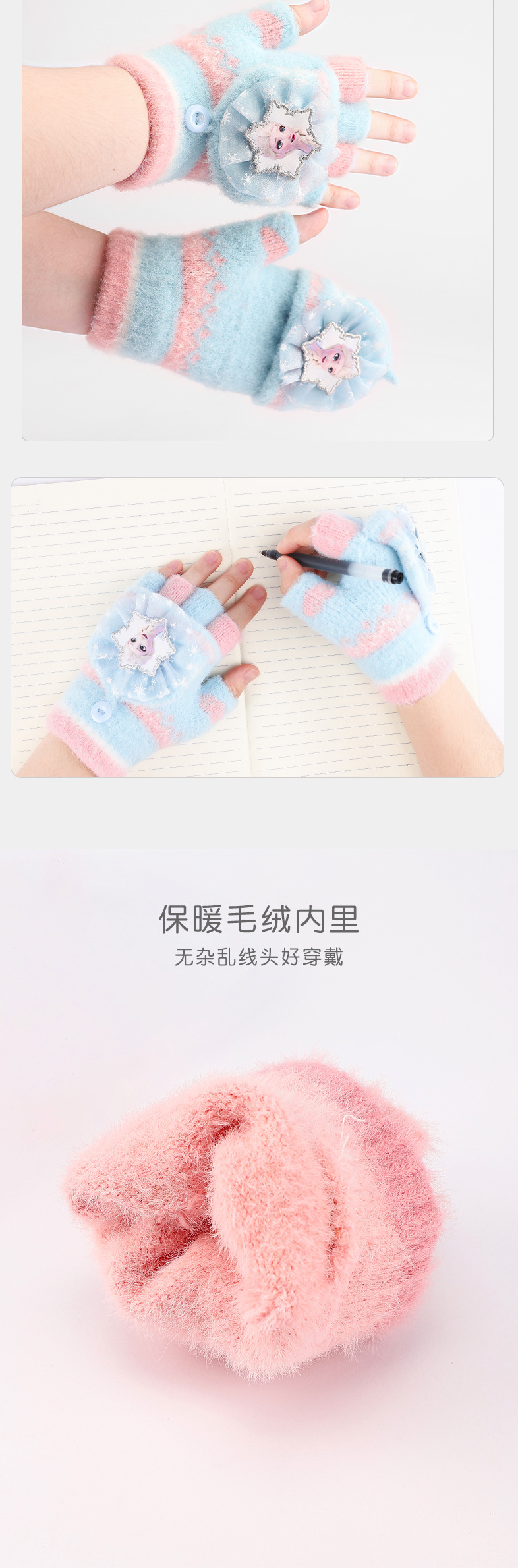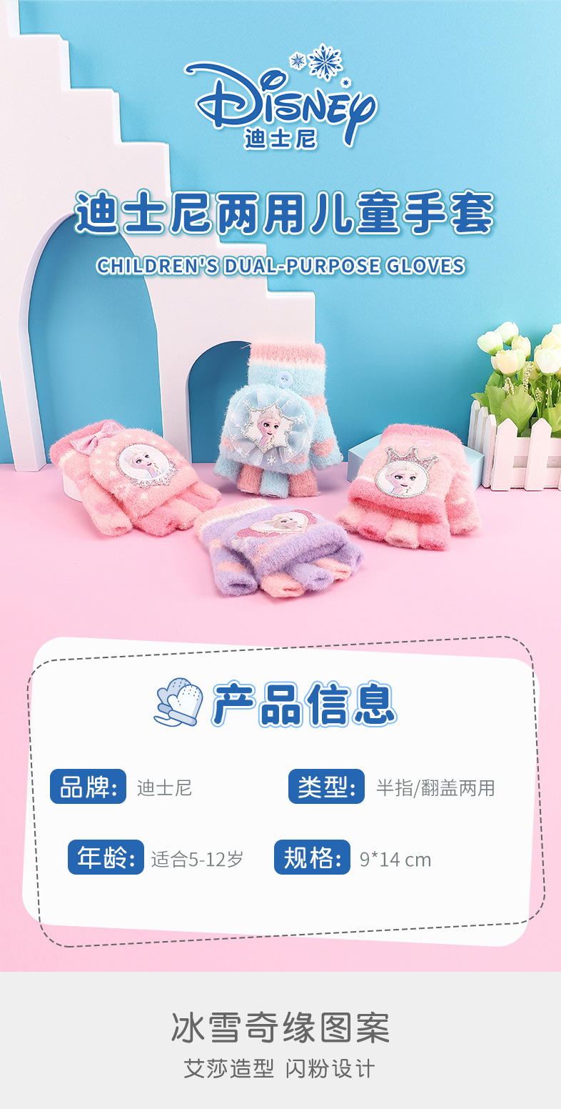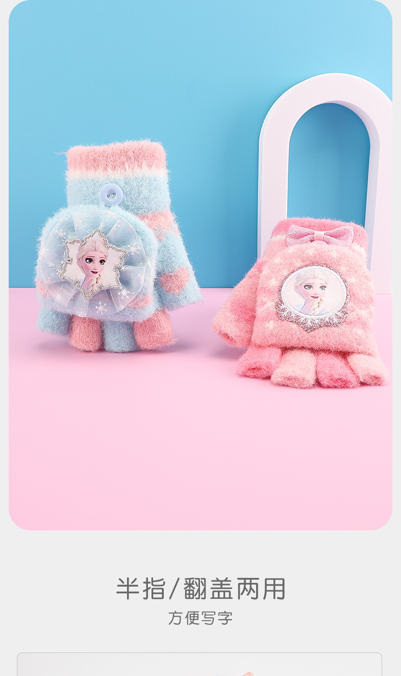 정품 겨울왕국 엘사 공주 반손가락 플립업 장갑, 중소형 어린이용, 겨울용, 매우 두꺼운, 새로운 스타일, 3-10세스토어 가기
