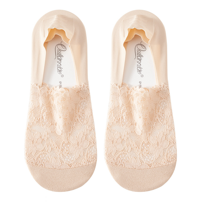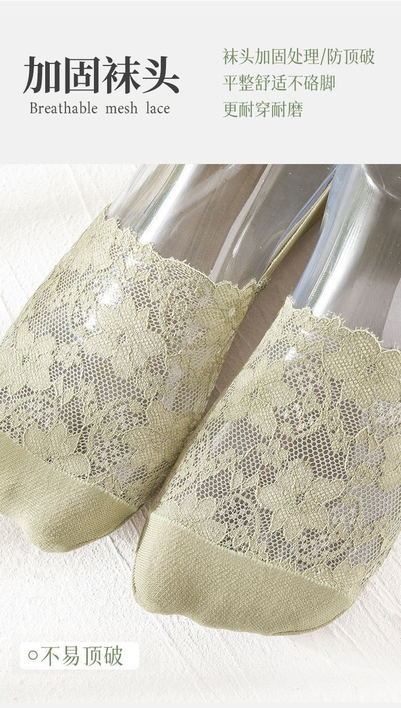 얕은 입 보이지 않는 양말 여성의 얇은 통기성 레이스 보트 양말 미끄럼 방지 실리콘 보이지 않는 발 뒤꿈치 면 양말 바닥 양말
