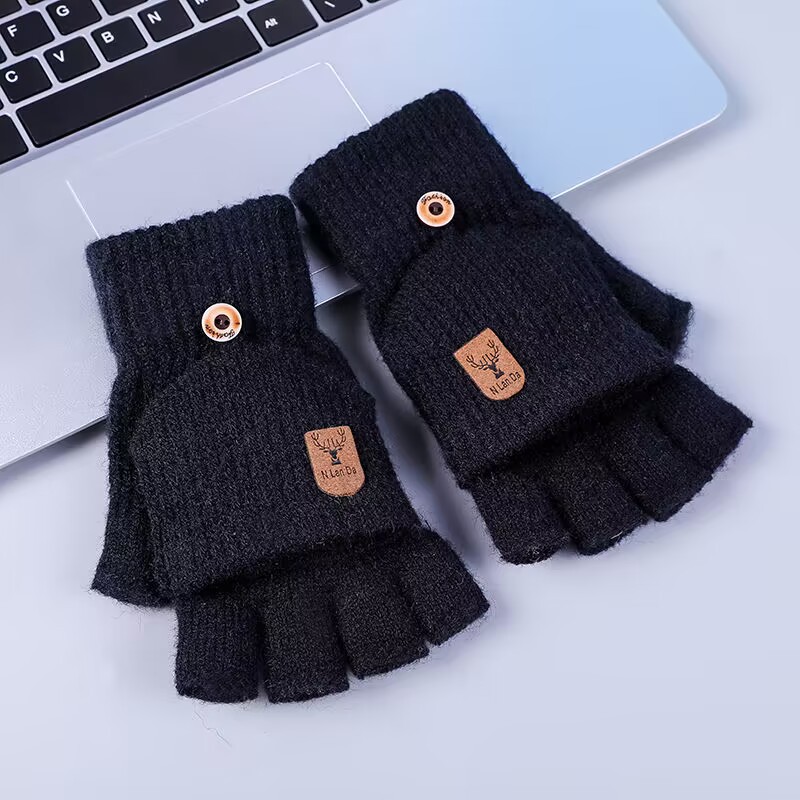 남녀 가을과 겨울 범용 기모 두꺼운 학생 손가락 누출 플립 패션 야외 따뜻한 방한 작업 공부 장갑