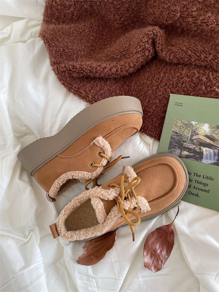 진 미 다크 브라운 따뜻한 기모 플랫폼 면 신발 여자의 2023 새로운 겨울 복장 복고풍 라운드 발가락 조커 신발스토어 가기