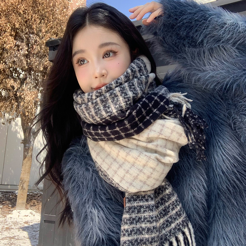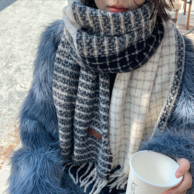 인터넷 연예인 패션 개인화 된 격자 무늬 색상 일치 겨울 방한 목 통기성 스카프 캐주얼 술 편안한 따뜻한 스카프