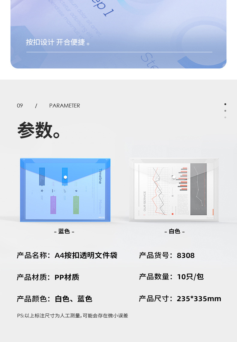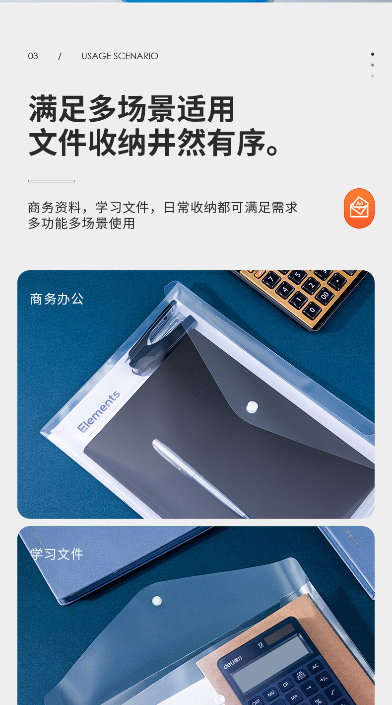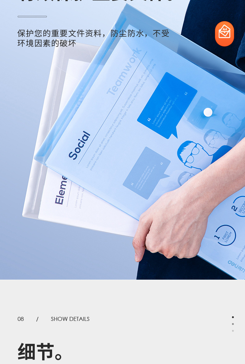델리 5505 버튼 백 문서 보관 가방 투명 스냅 버튼 서류 가방 A4 정보 가방 문서 가방 학생 가방스토어 가기