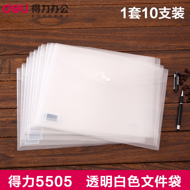 델리 5505 버튼 백 문서 보관 가방 투명 스냅 버튼 서류 가방 A4 정보 가방 문서 가방 학생 가방